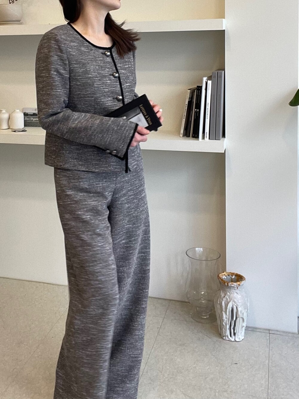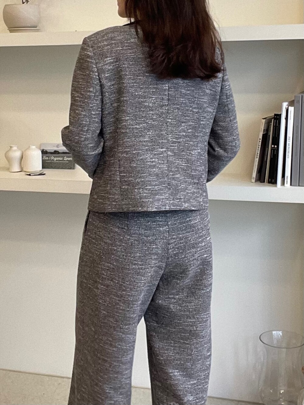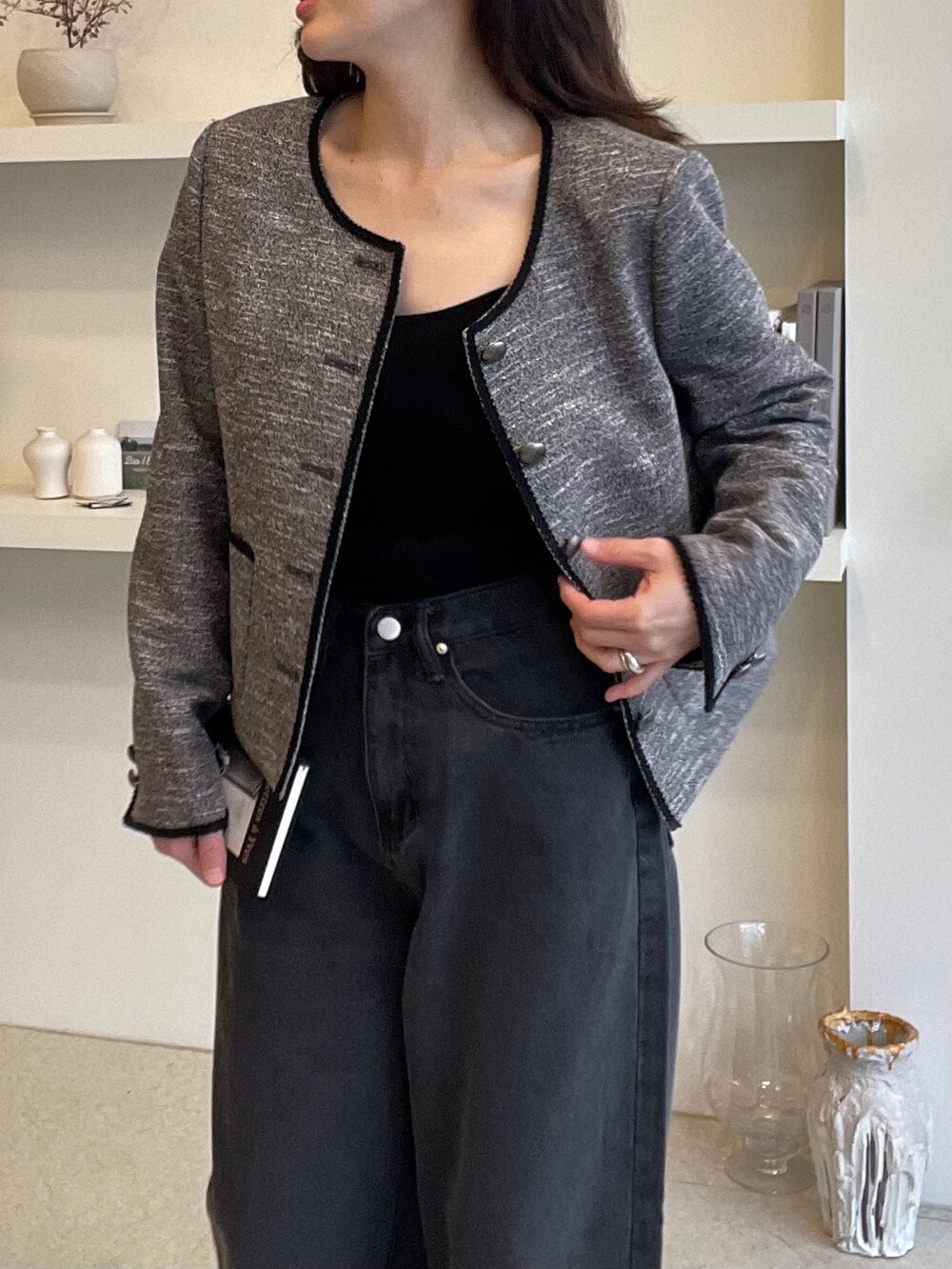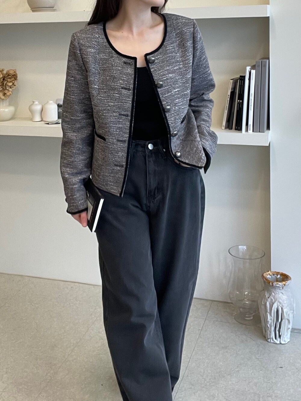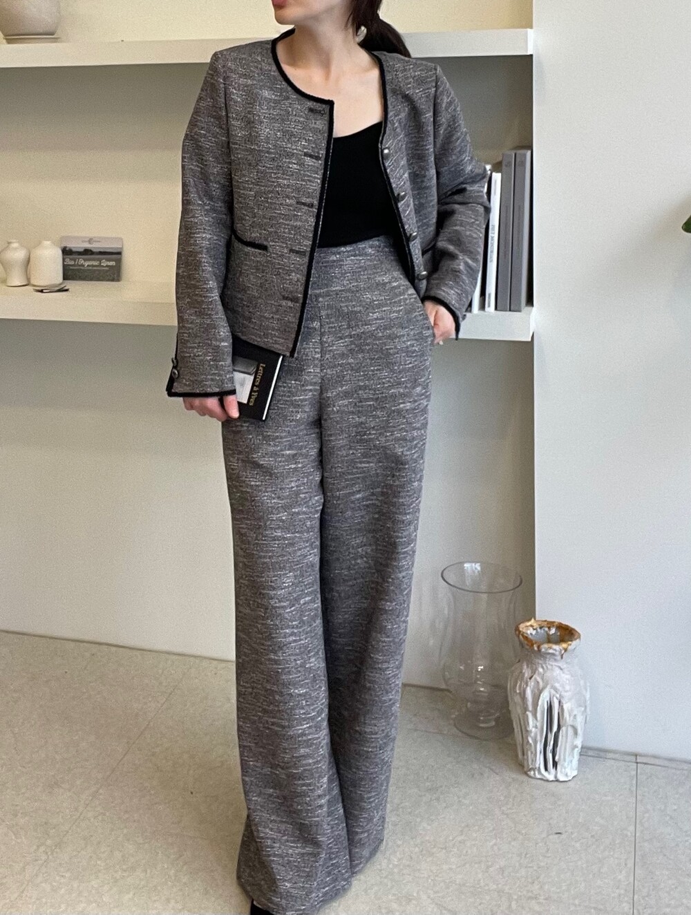 가볍고 시원하게 입을 수 있는 트위드 소재라서 제안되는 코디 외에도 반바지등 여름까지 폭 넓게 활용해 주세요.