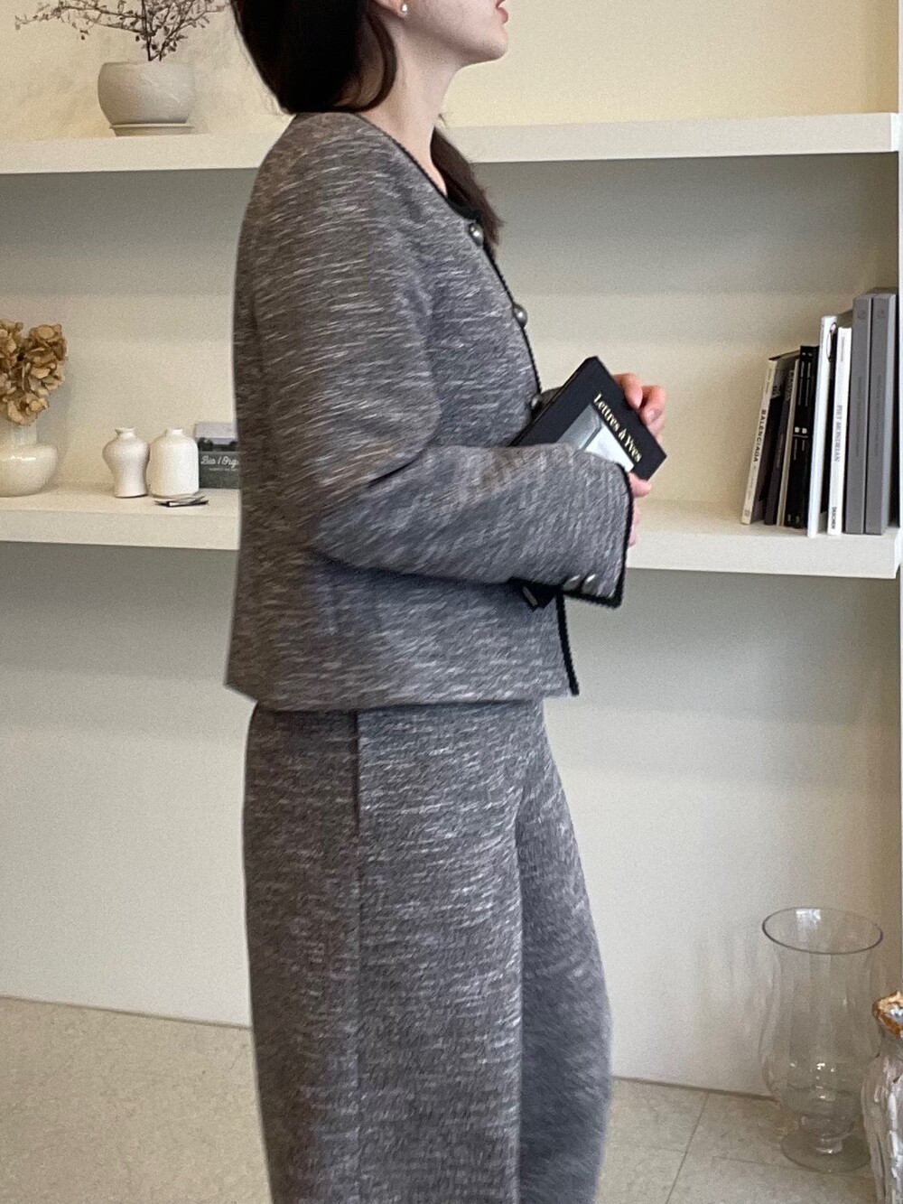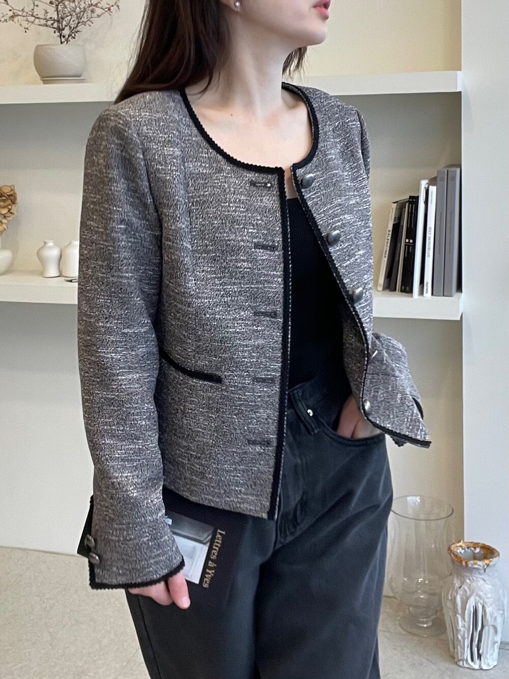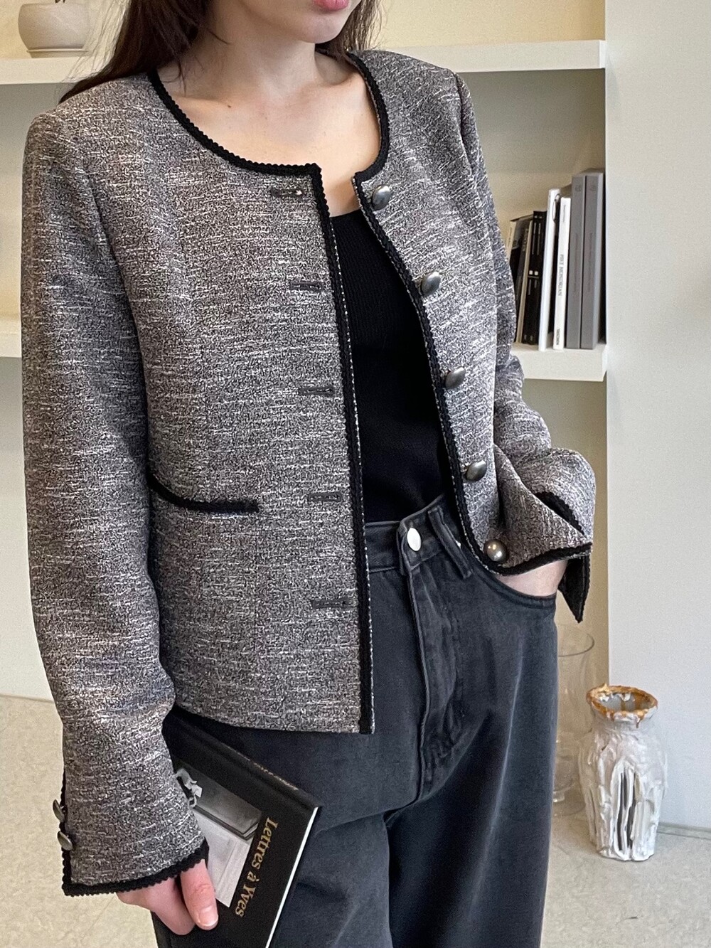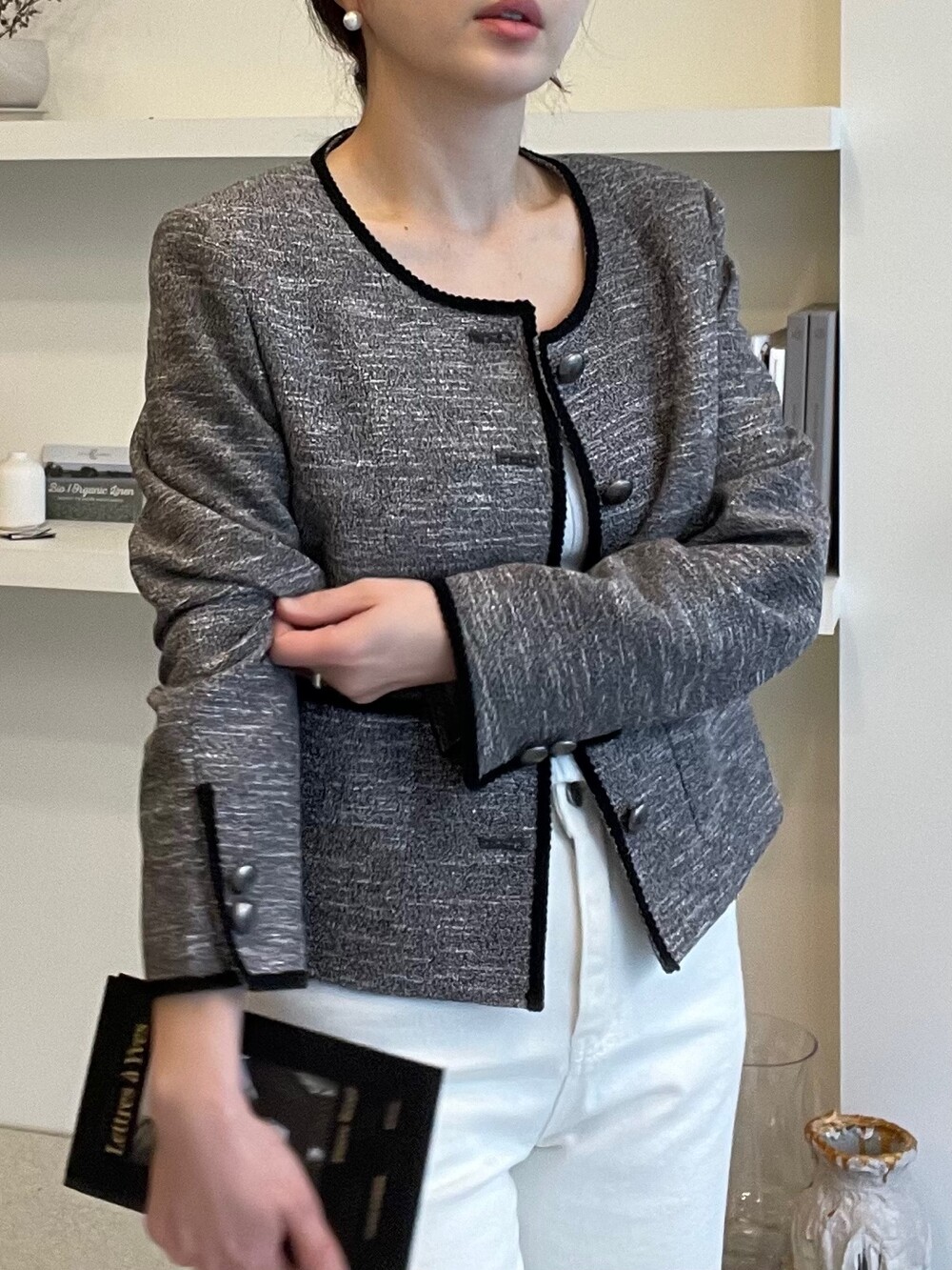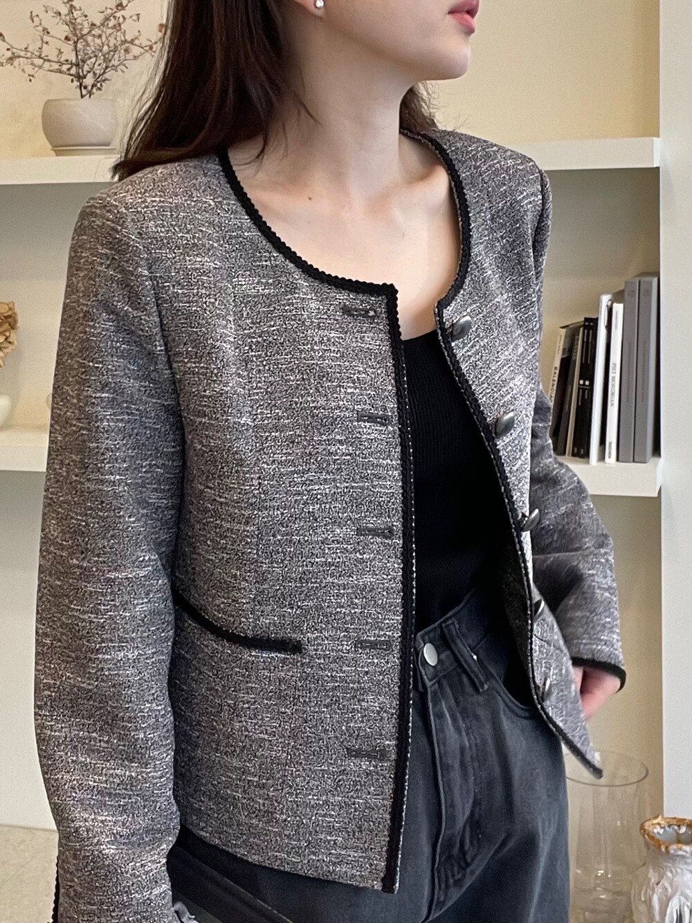 여유있고 경쾌하게 재해석된 그레이스제이만의 NEW 라운드넥 자켓은 다소 깊게 굴려진 라운드넥이 답답하지 않고 목선이 길어보이도록 연출됩니다.