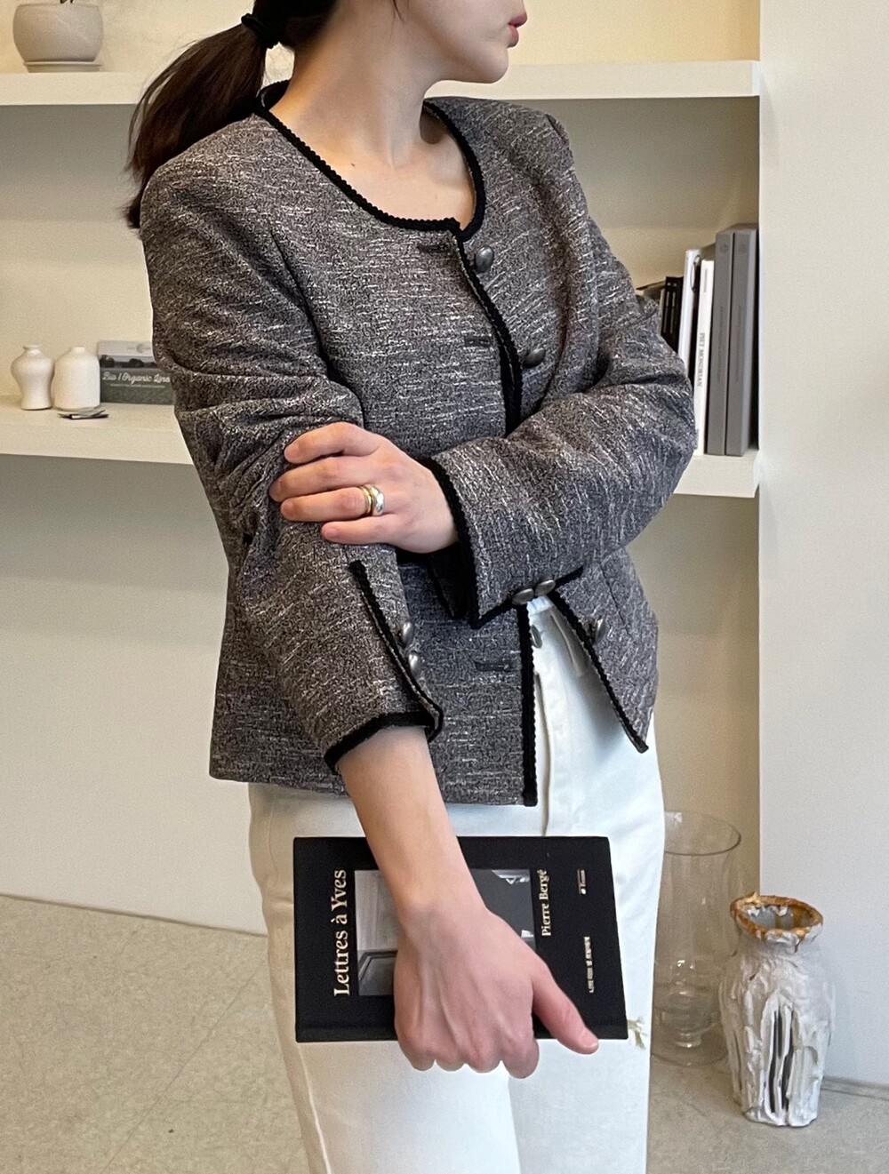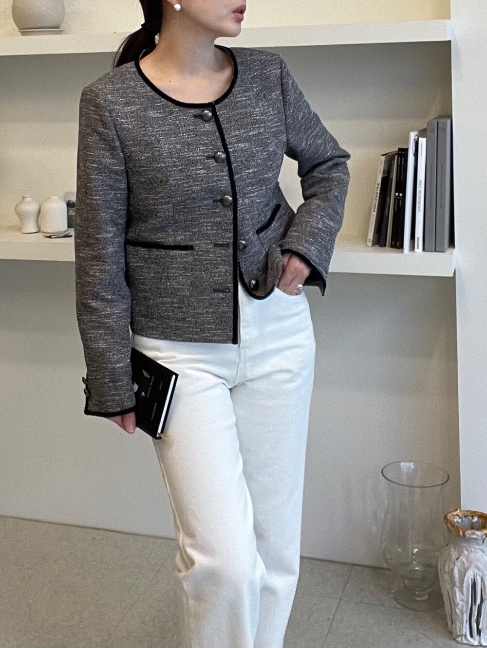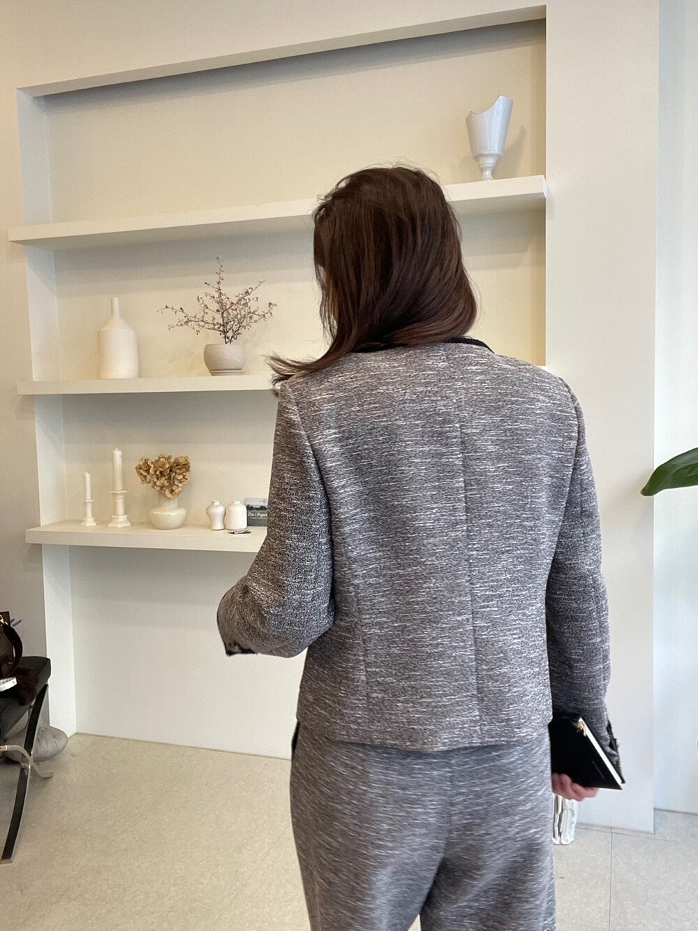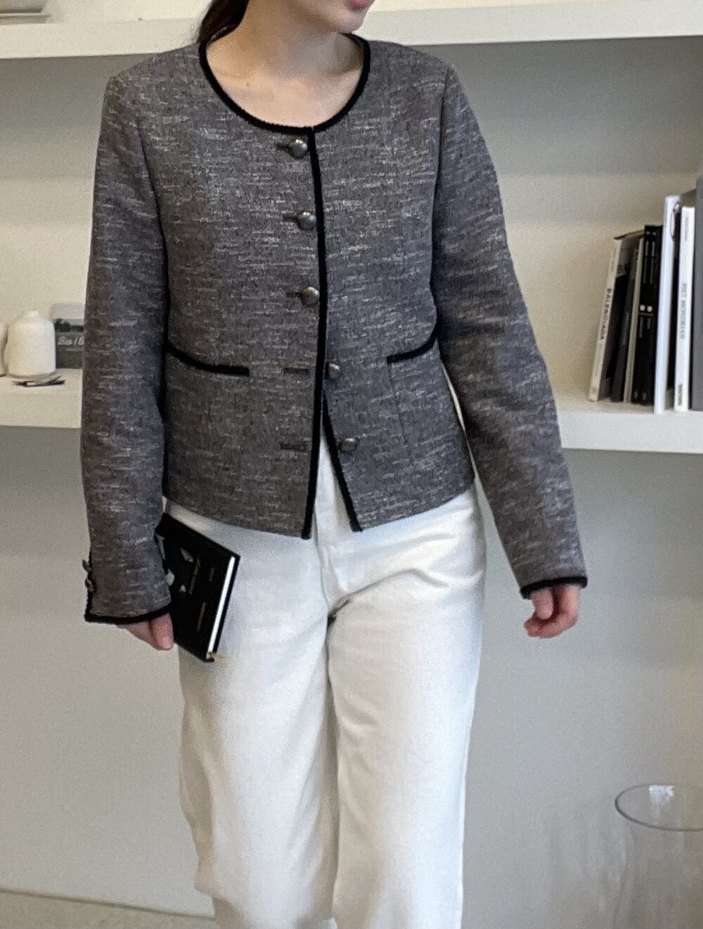 - 가벼운 중량을 느낄 수 있는 트위드 혼방사