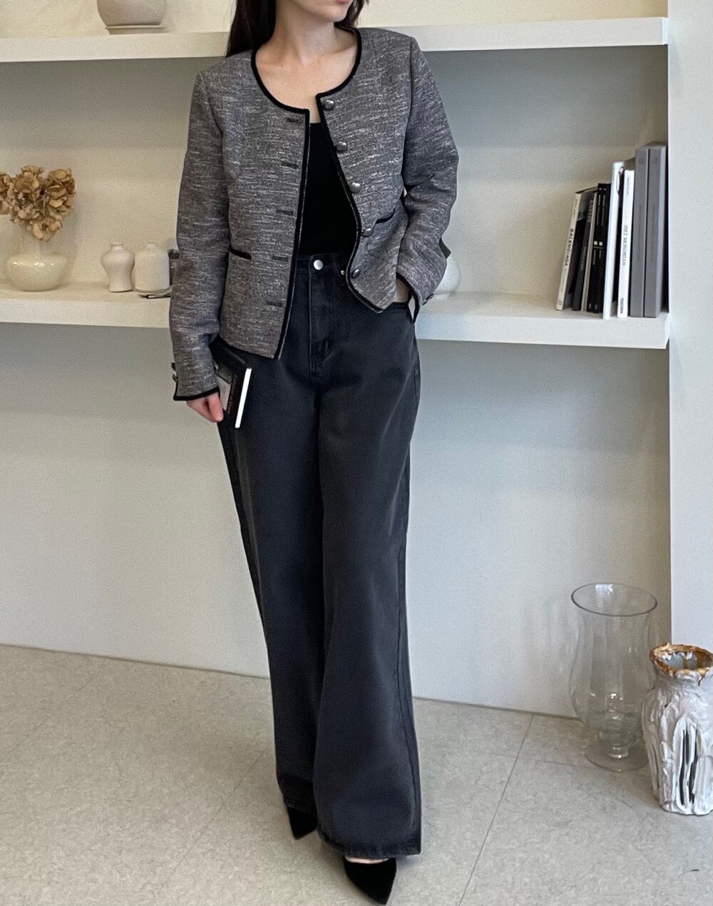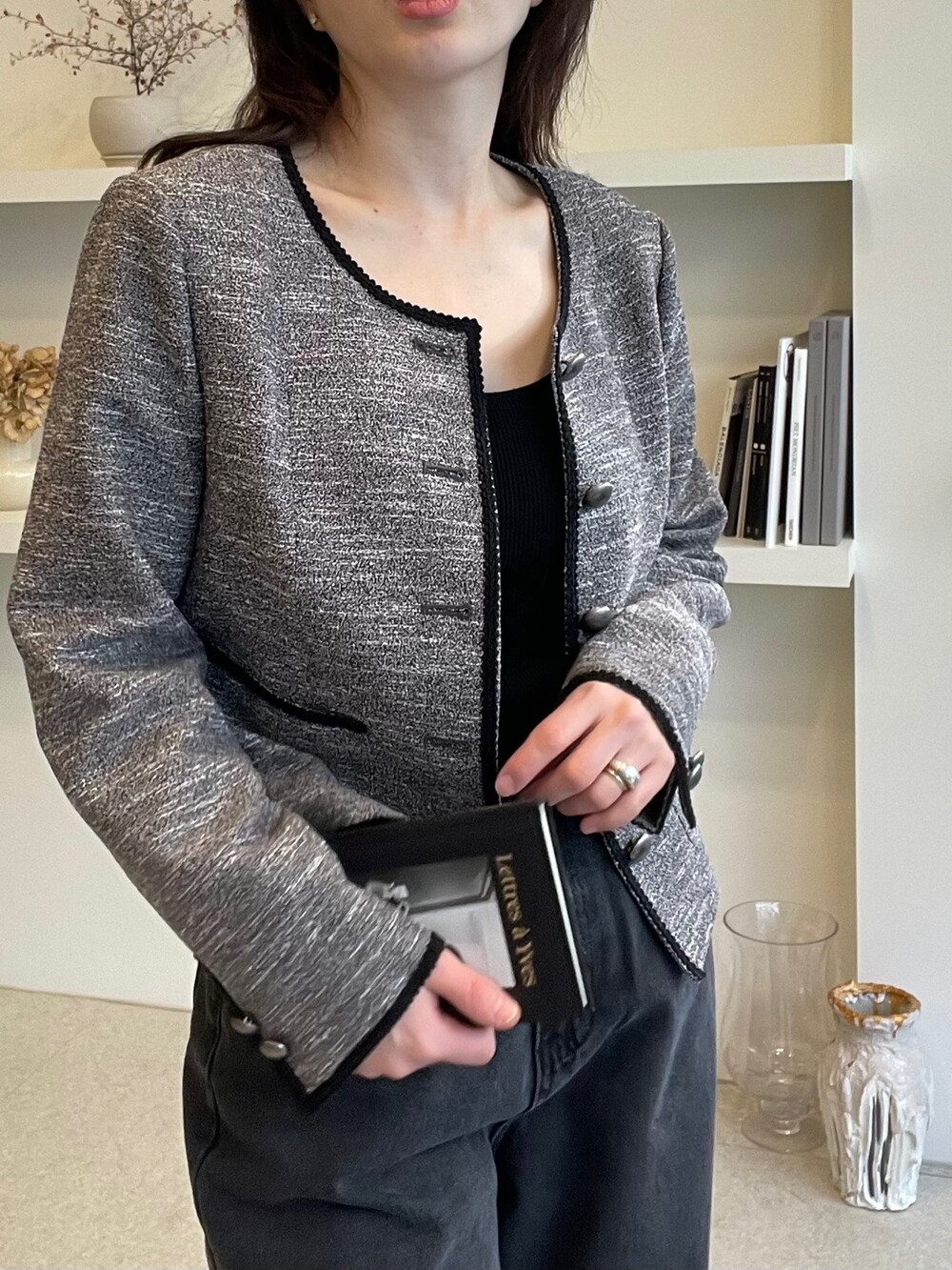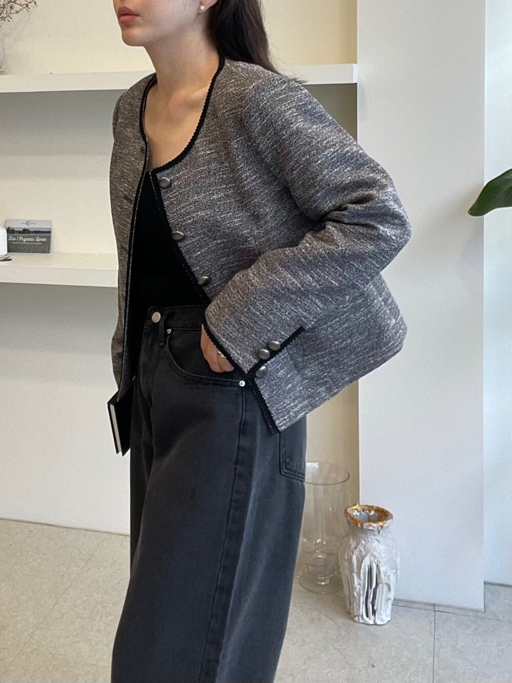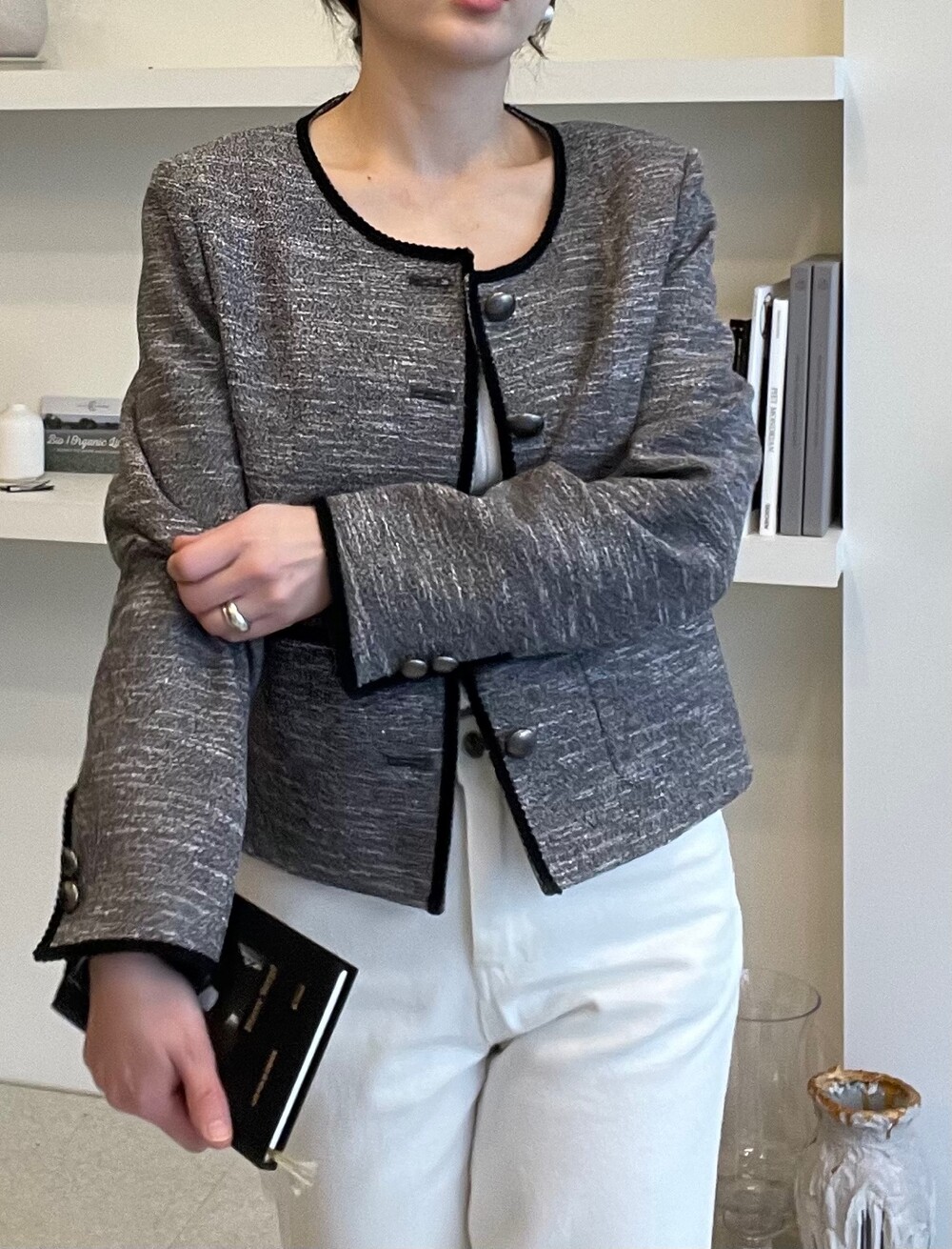 - 가벼운 중량을 느낄 수 있는 트위드 혼방사