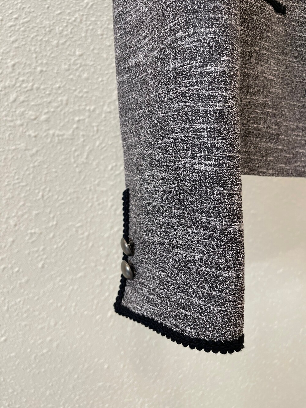 매우 가벼운 타소재 혼방의 섬세한 트위드 조직이 돋보이는 소재 입니다.
