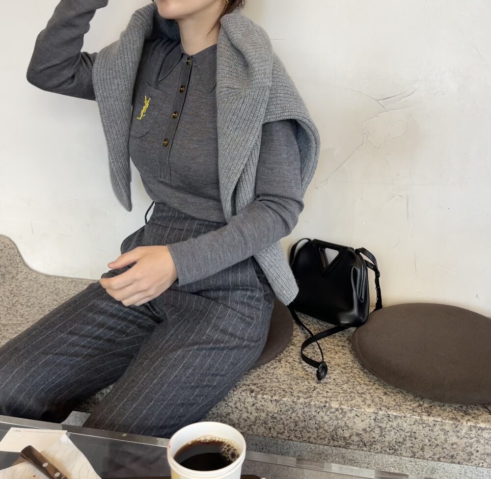 특히 컬러는 미듐톤의 멜란지 그레이로 피부톤에 큰 구애가 없으며, 평소 모노톤을 즐겨입으신다면 더할 나위 없이 든든하게 입어지실거에요.