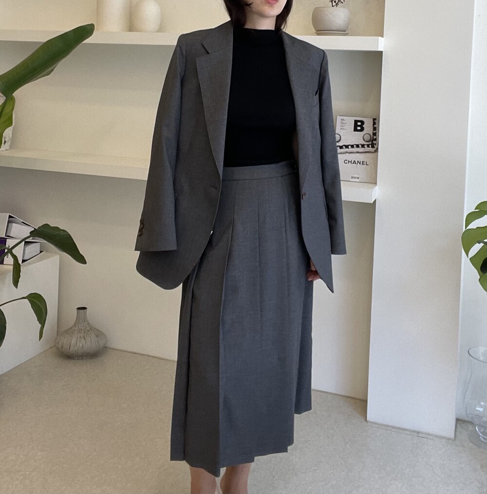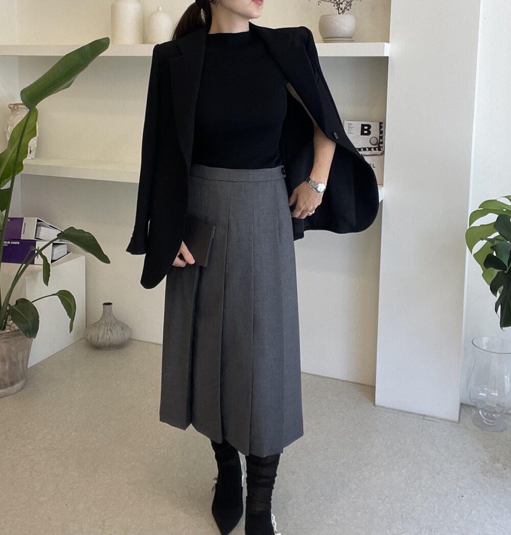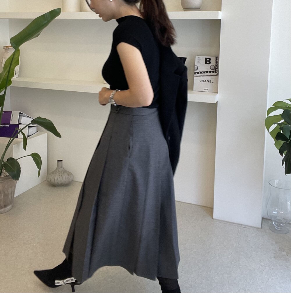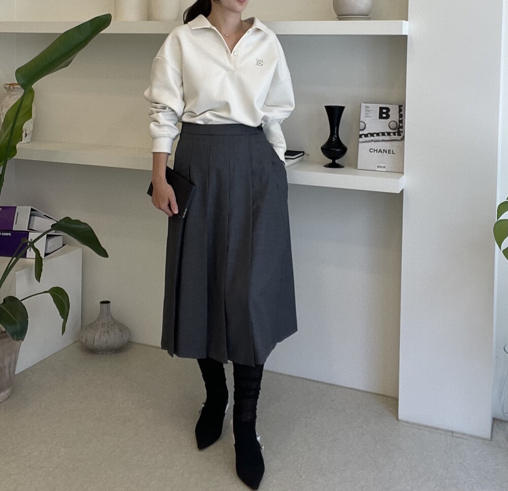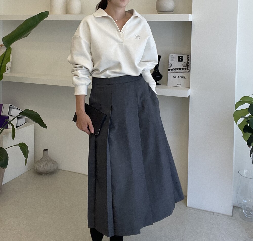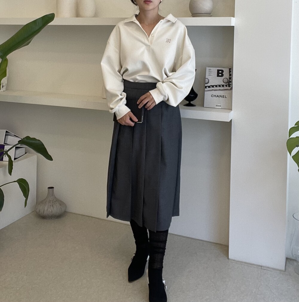 미디움 길이의 wrap 주름 스커트로 자켓과 함께 하는 스타일링 외에도 캐쥬얼하게 즐겨보세요.