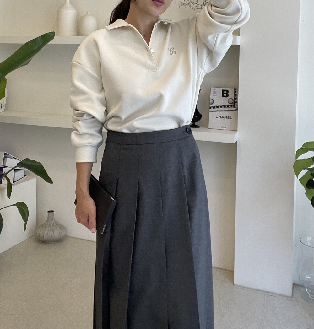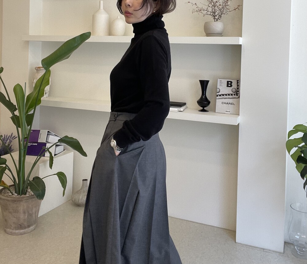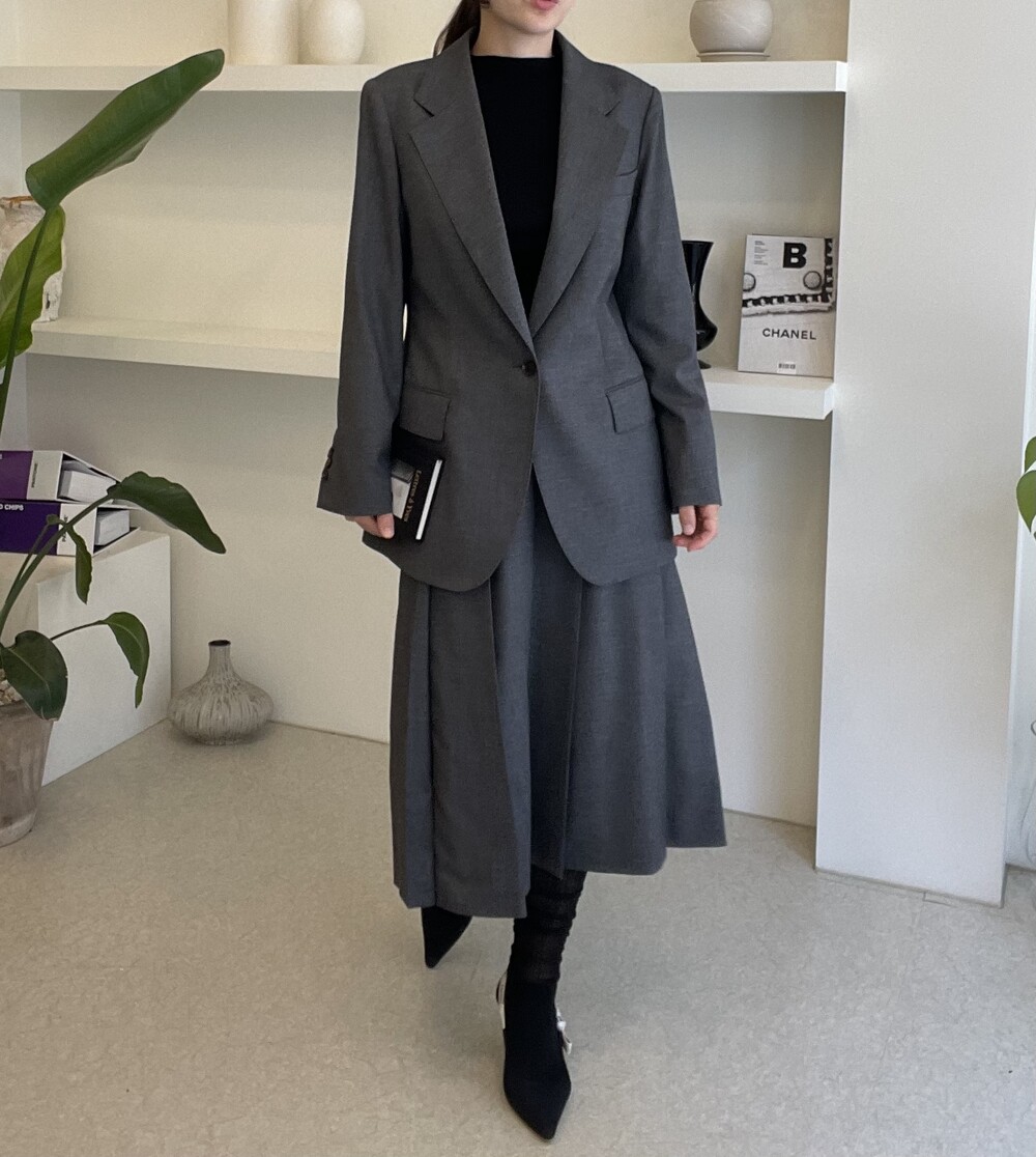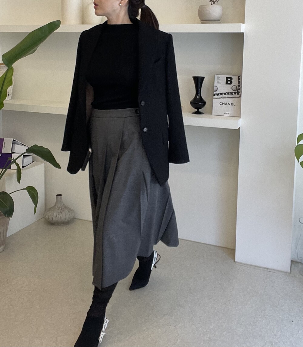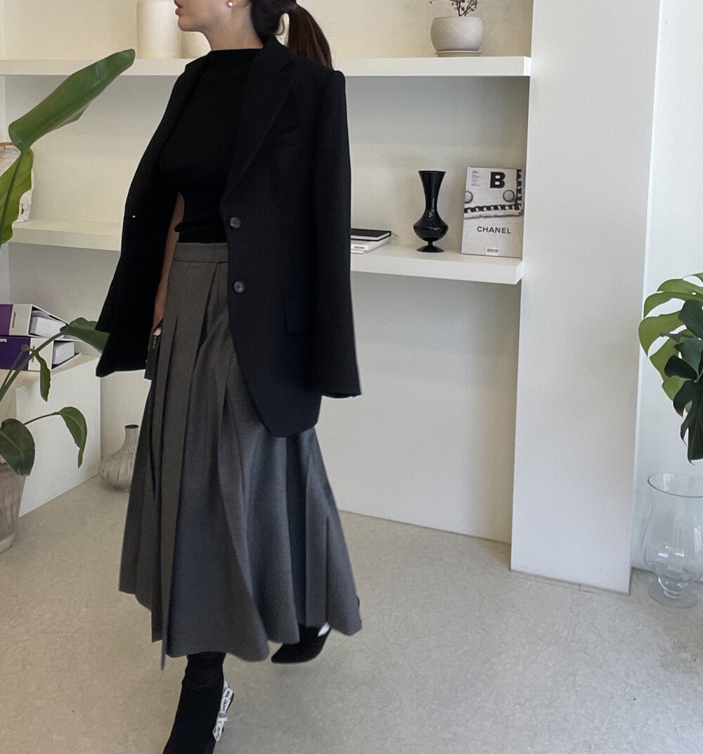 미디움 길이의 wrap 주름 스커트로 자켓과 함께 하는 스타일링 외에도 캐쥬얼하게 즐겨보세요.