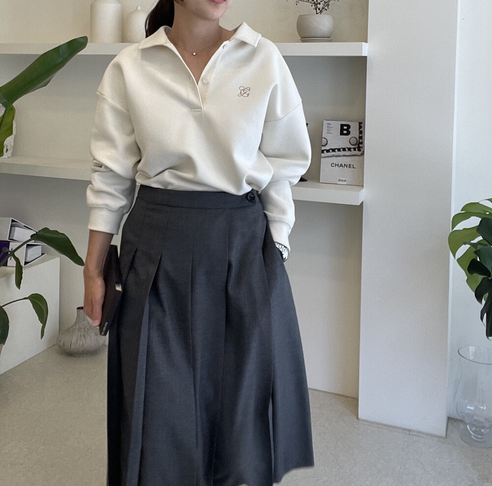 ※ 사이즈별 진행되지만 단추 이동으로 조금 더 내 허리에 맞게 입으 실수 있는 강점을 가지고 있는wrap 스커트 입니다. 기계 주름이 아닌 손 주름으로 세심하게 완성됩니다.