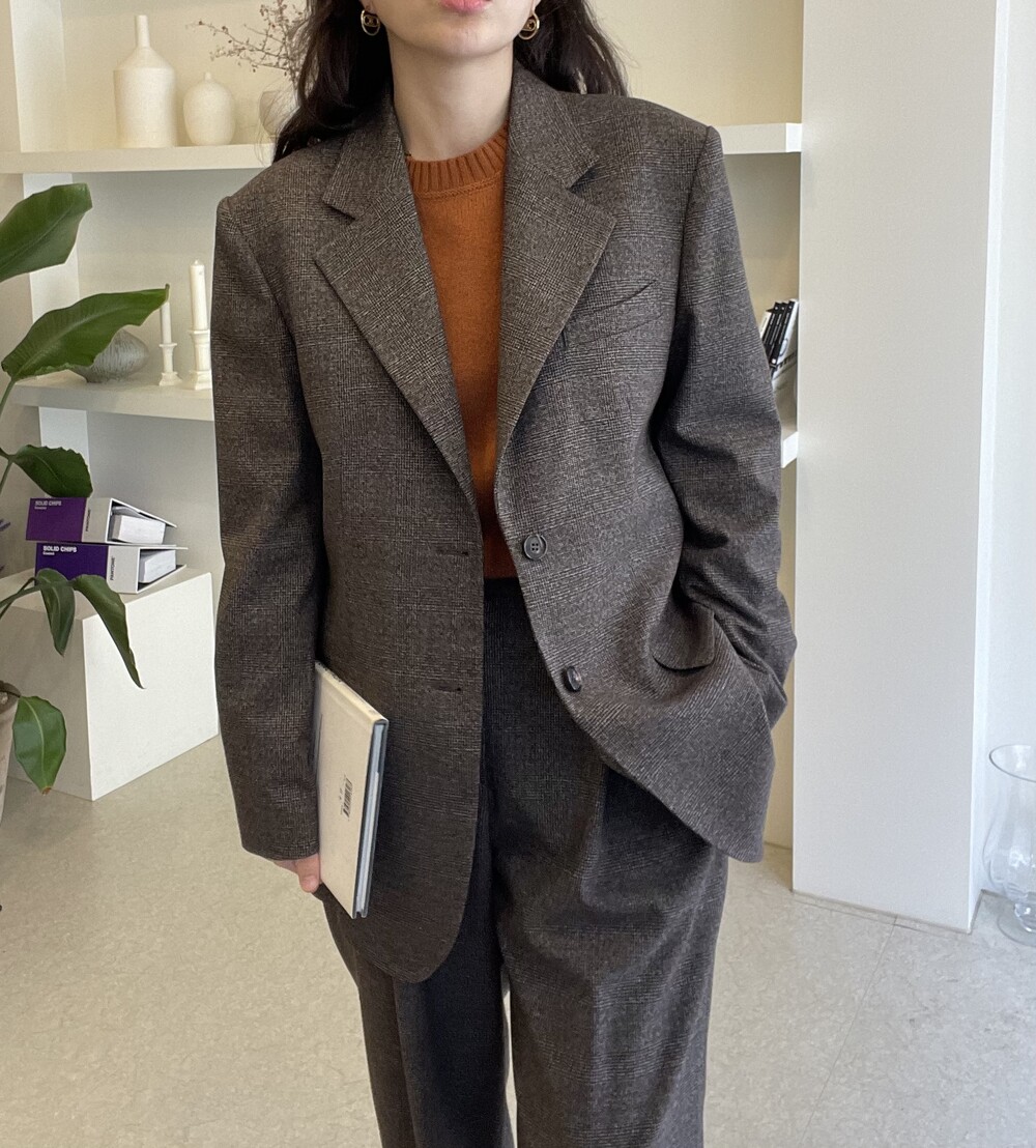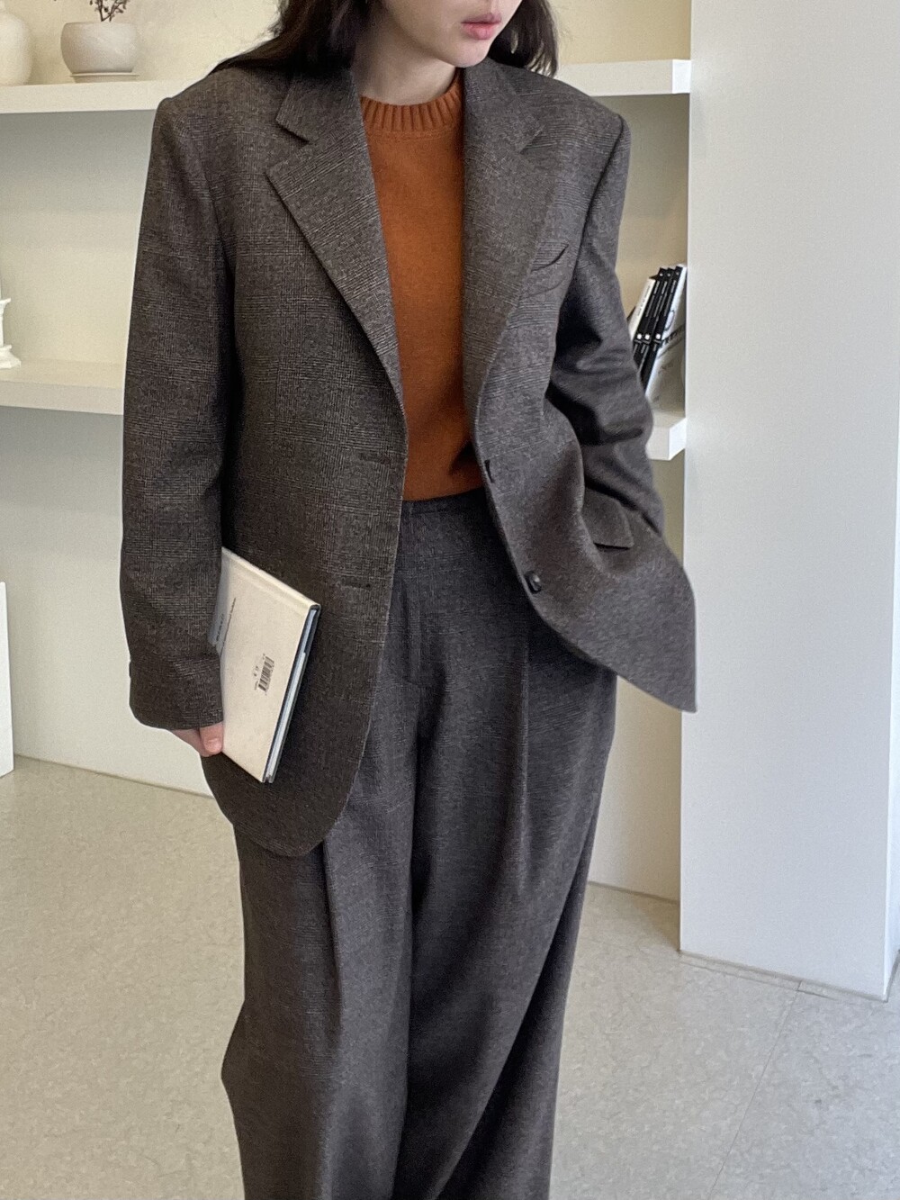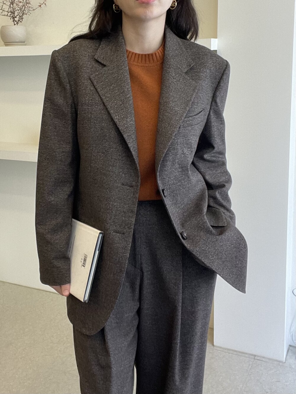 체크무늬를 솔리드 외관처럼 은은한 무드로 입을 수 있는 클래식한 글렌체크가 조용한 위엄을 느끼게 합니다.