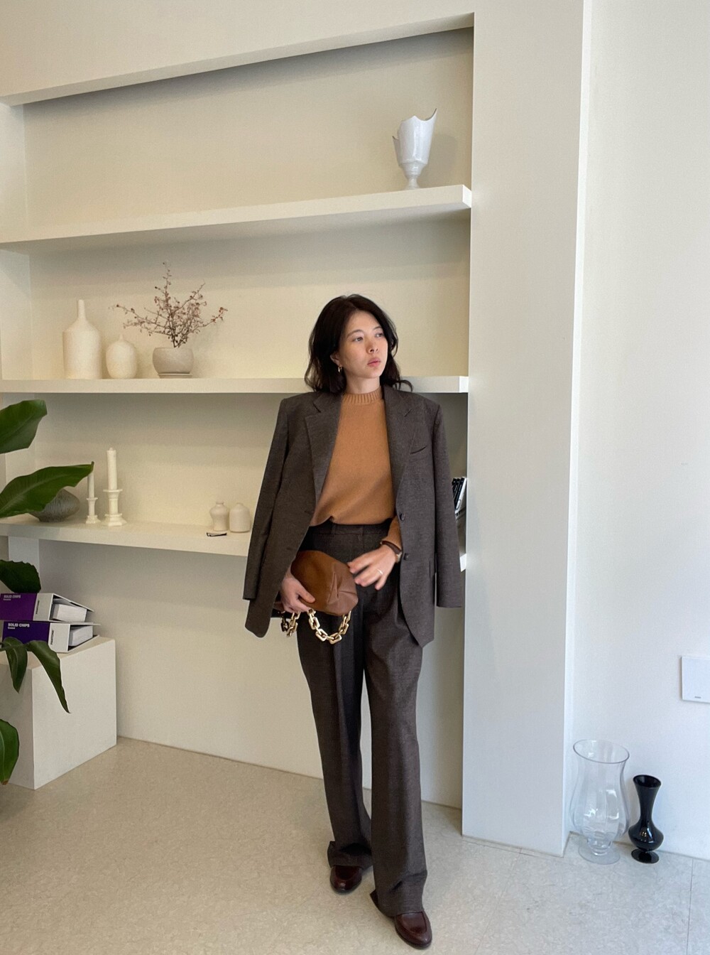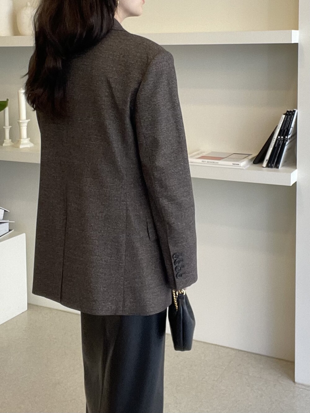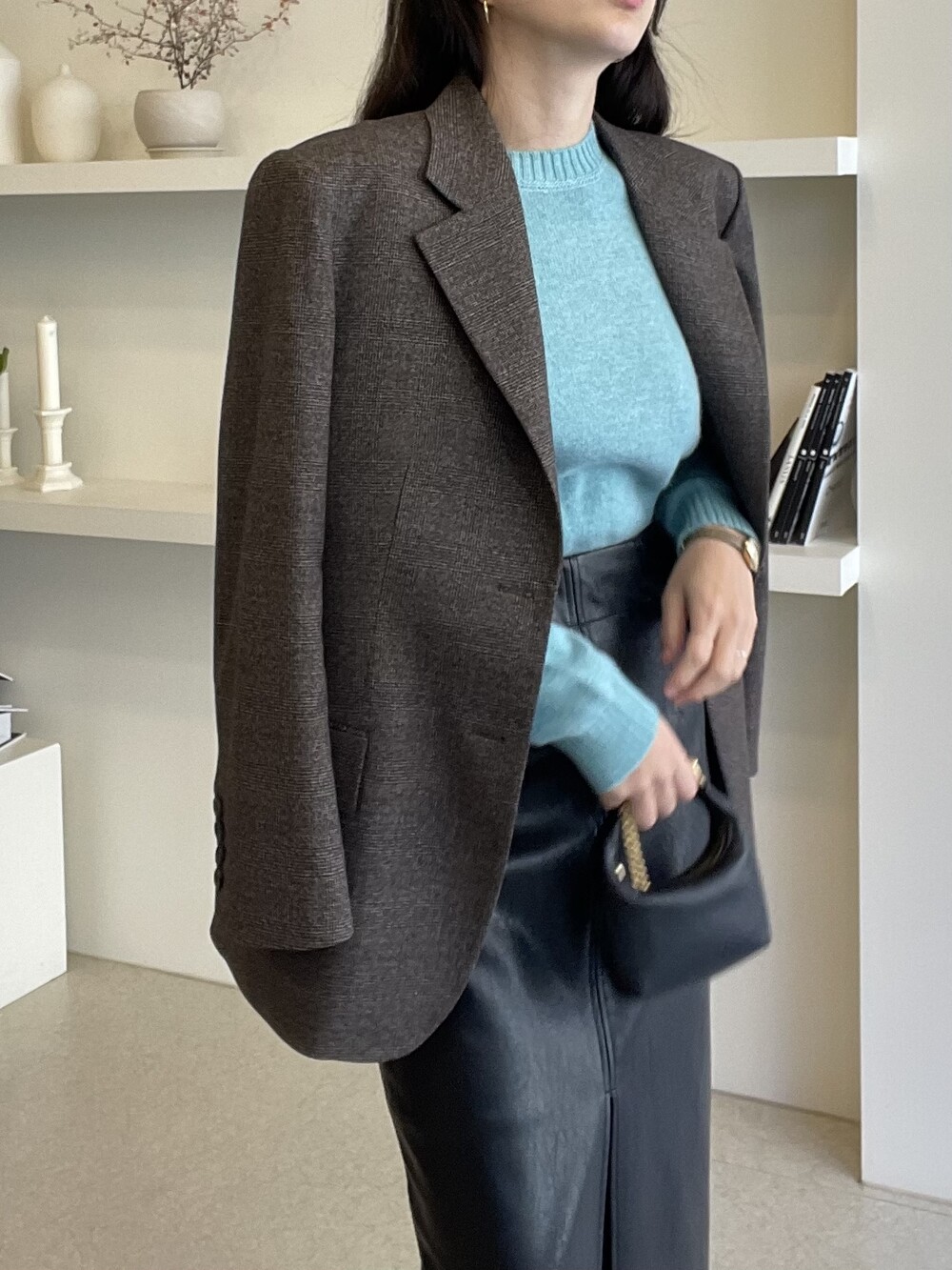 체크무늬를 솔리드 외관처럼 은은한 무드로 입을 수 있는 클래식한 글렌체크가 조용한 위엄을 느끼게 합니다.