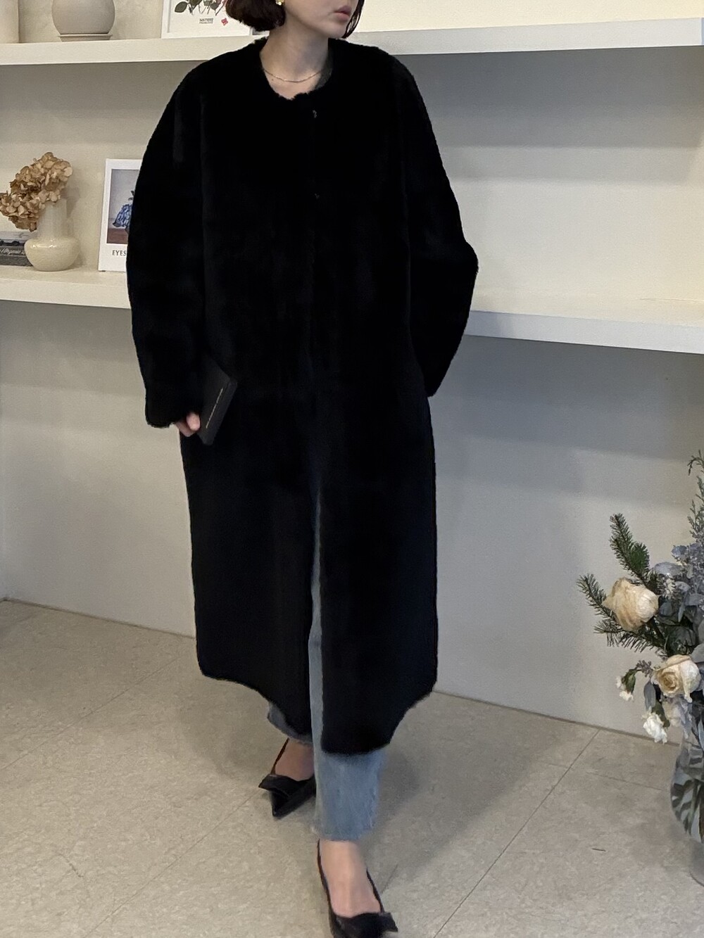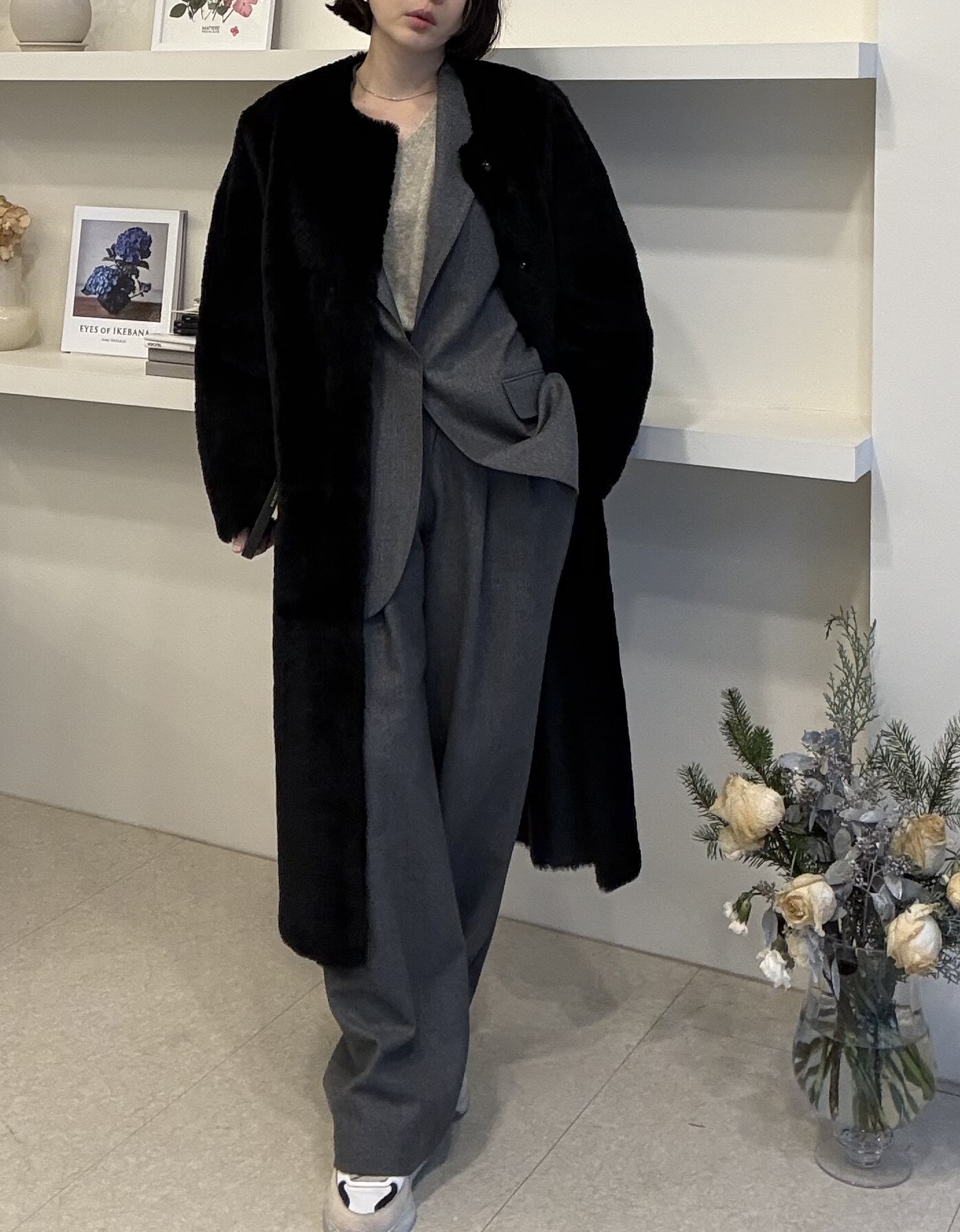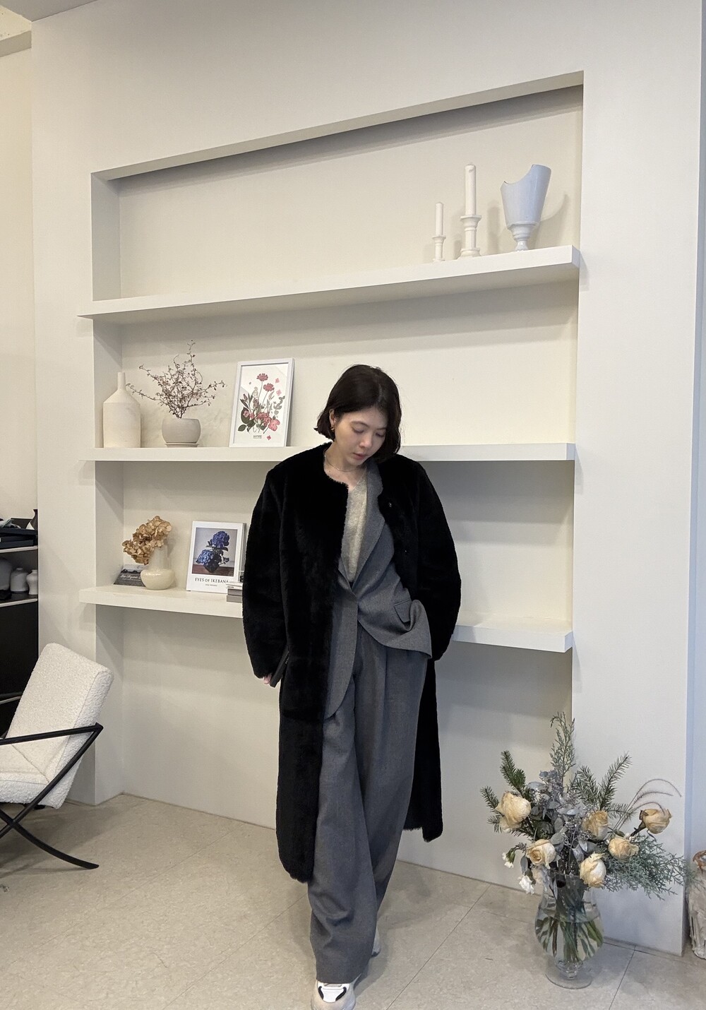 이너를 얇게 입어도 좋고 무엇보다 얇은 아우터와 함께 입어도 좋은 스타일의 특별한 퍼 코트입니다.