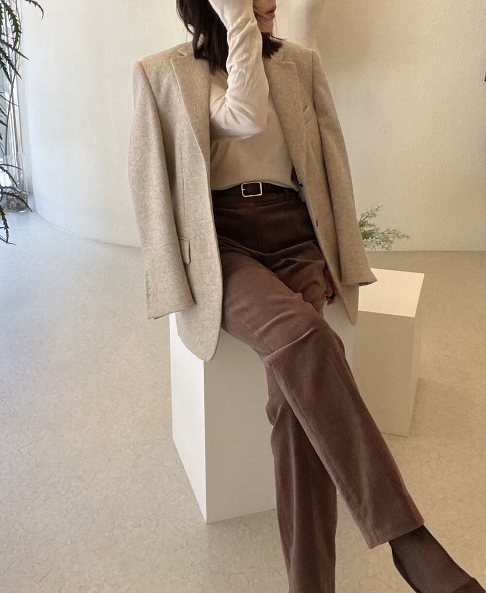 어깨선은 오버핏 느낌까지는 아니지만 살짝 드롭되어 그레이스제이만의 리치하고 여유있는 세련미를 주고,