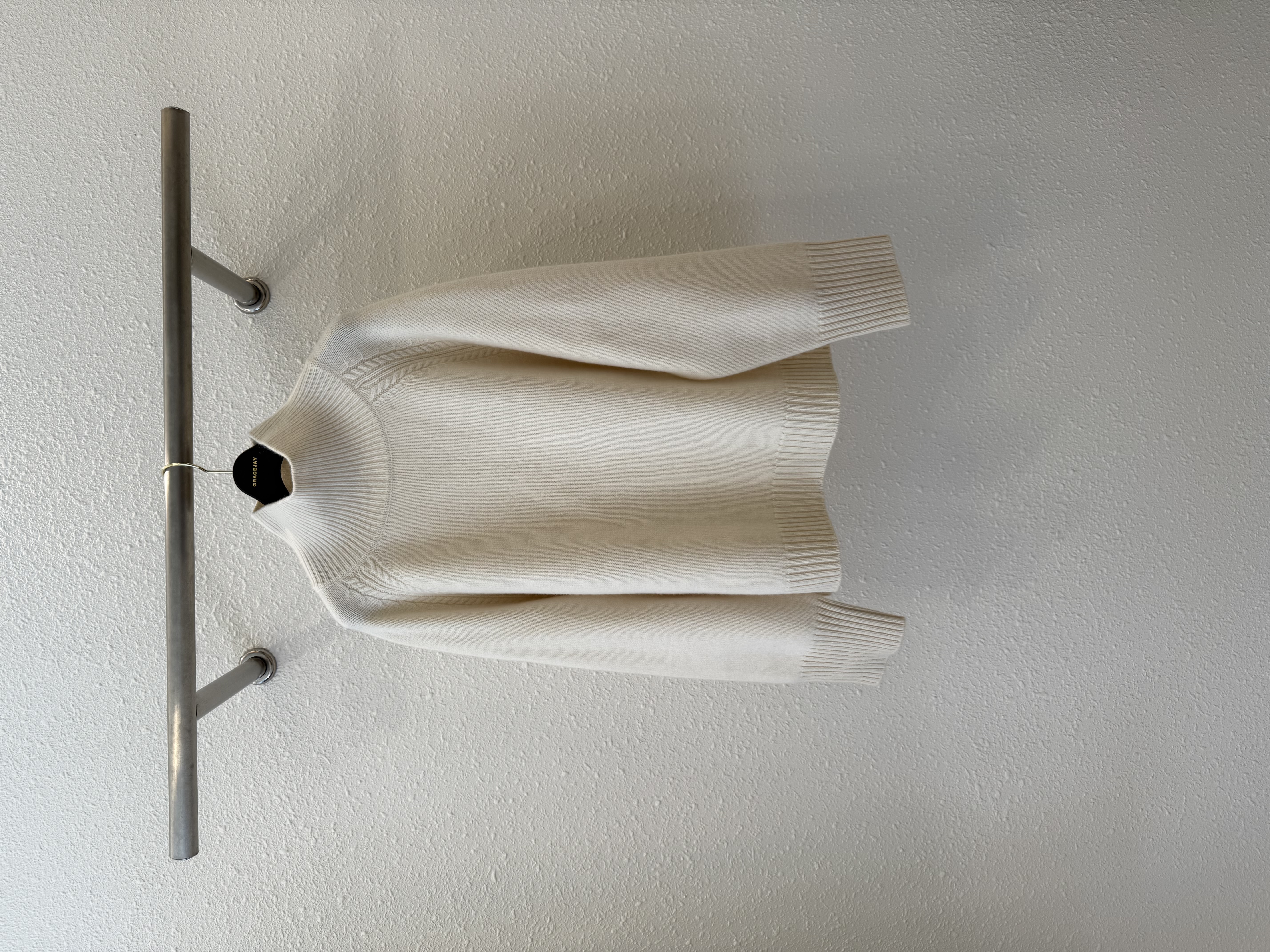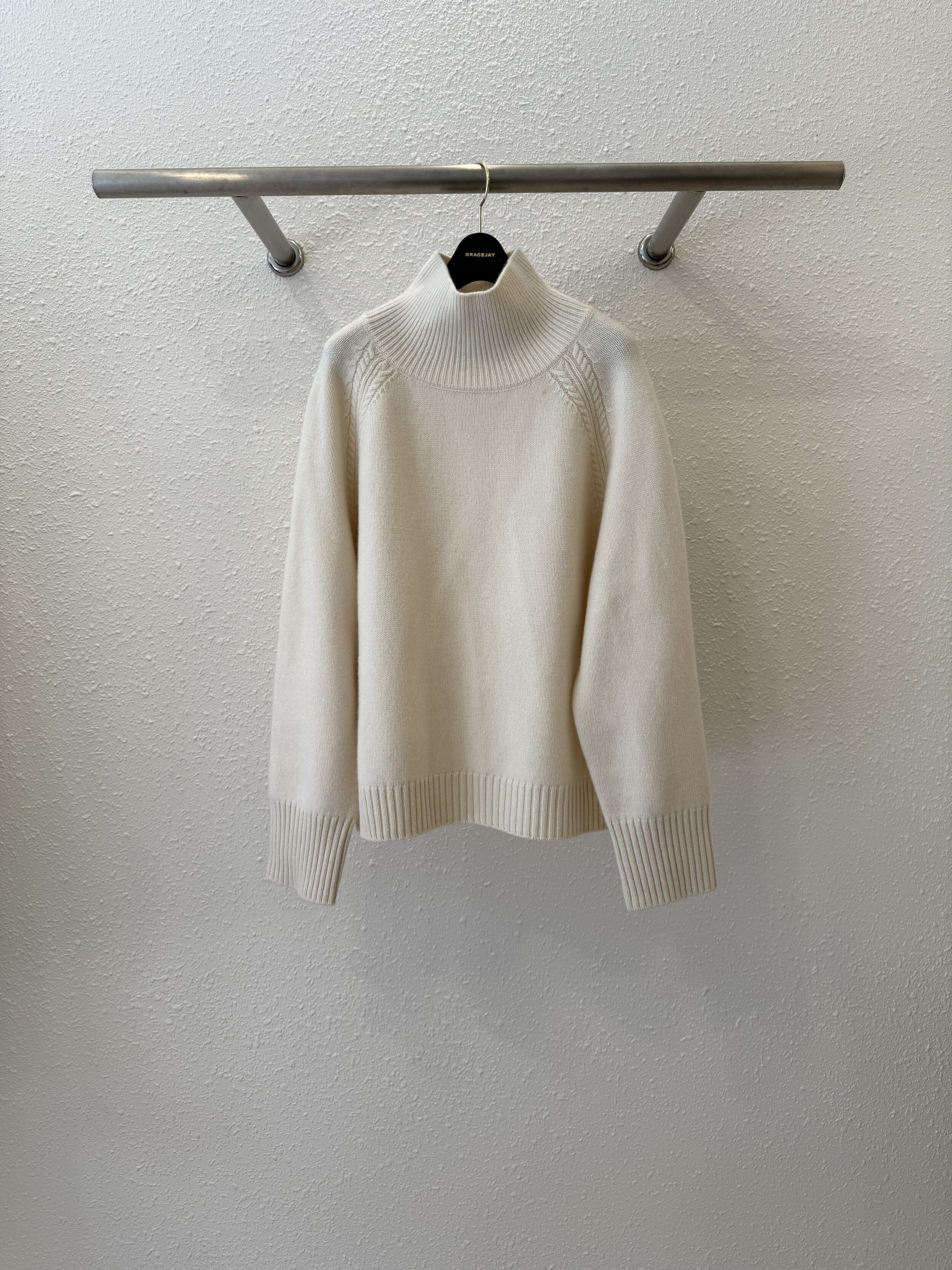 특히 터틀넥은 앞넥의 목점 깊이를 깊은 포인트에서부터 짜여져 목이 짧은 체형도 편안하고 길어보이는 효과도 누리면서 입으실 수 있어요. 소매길이는 일부러 더 길게 여유롭게 진행되었지만 접어서 입으셔도 좋습니다.