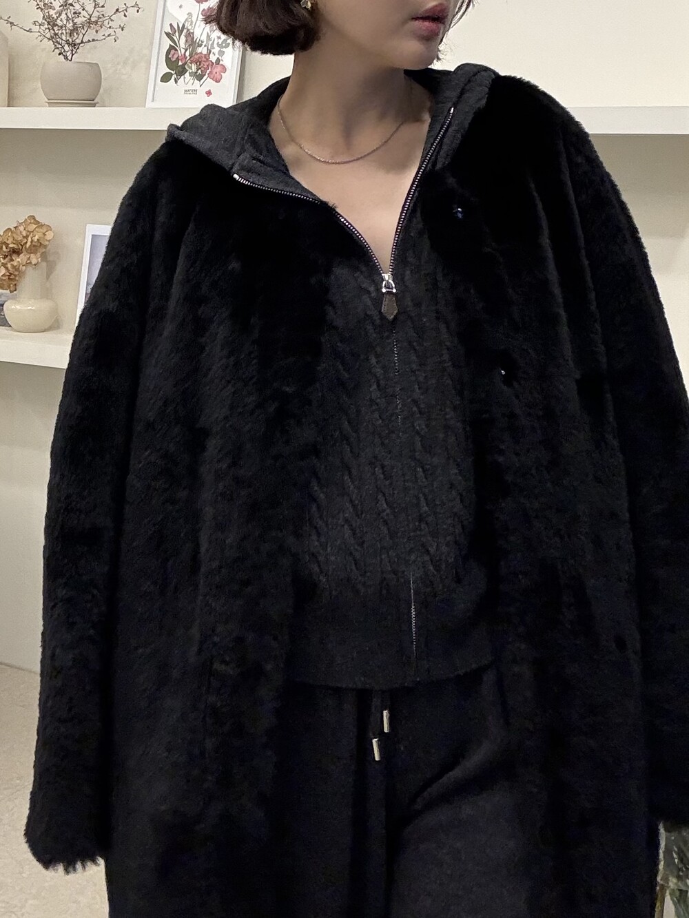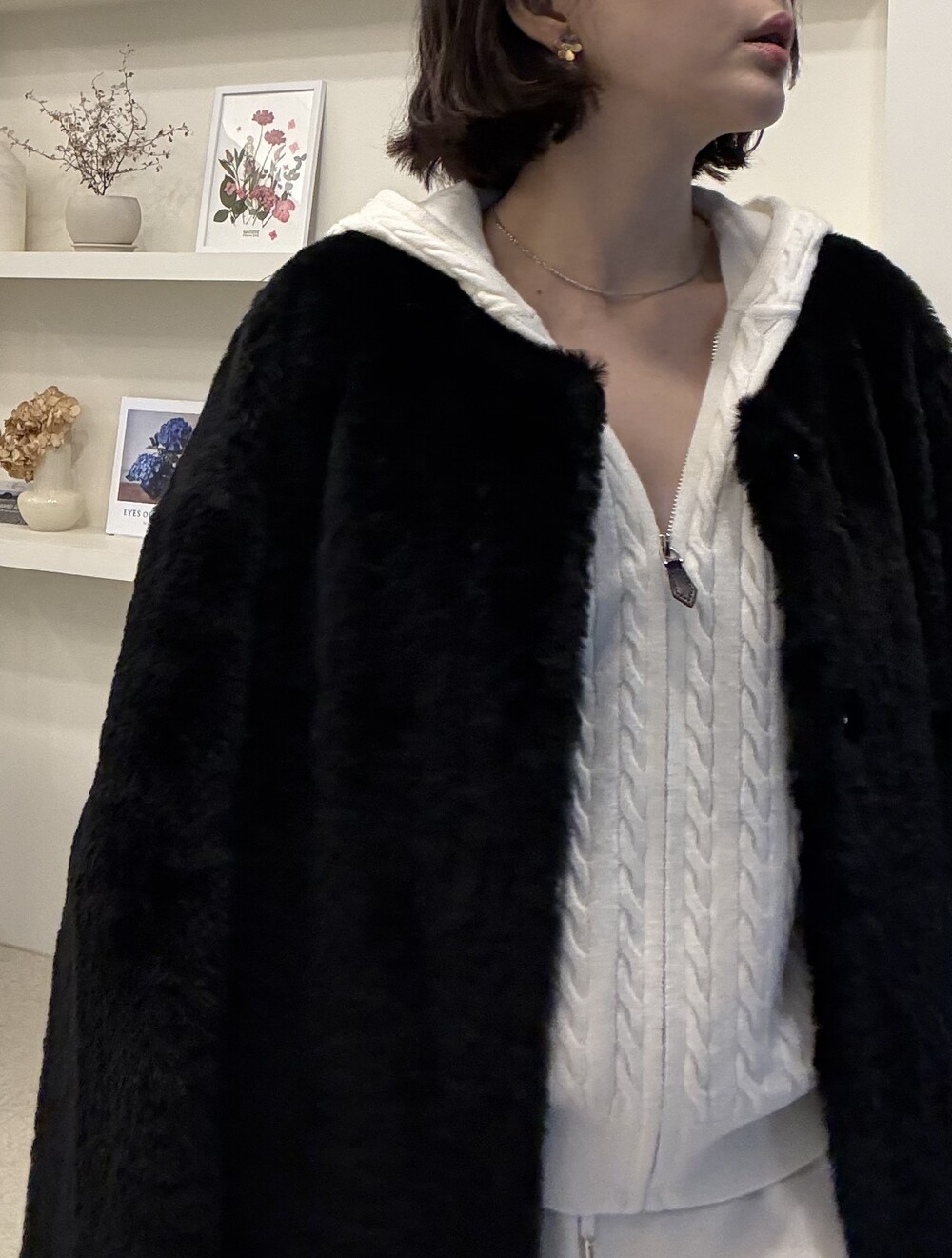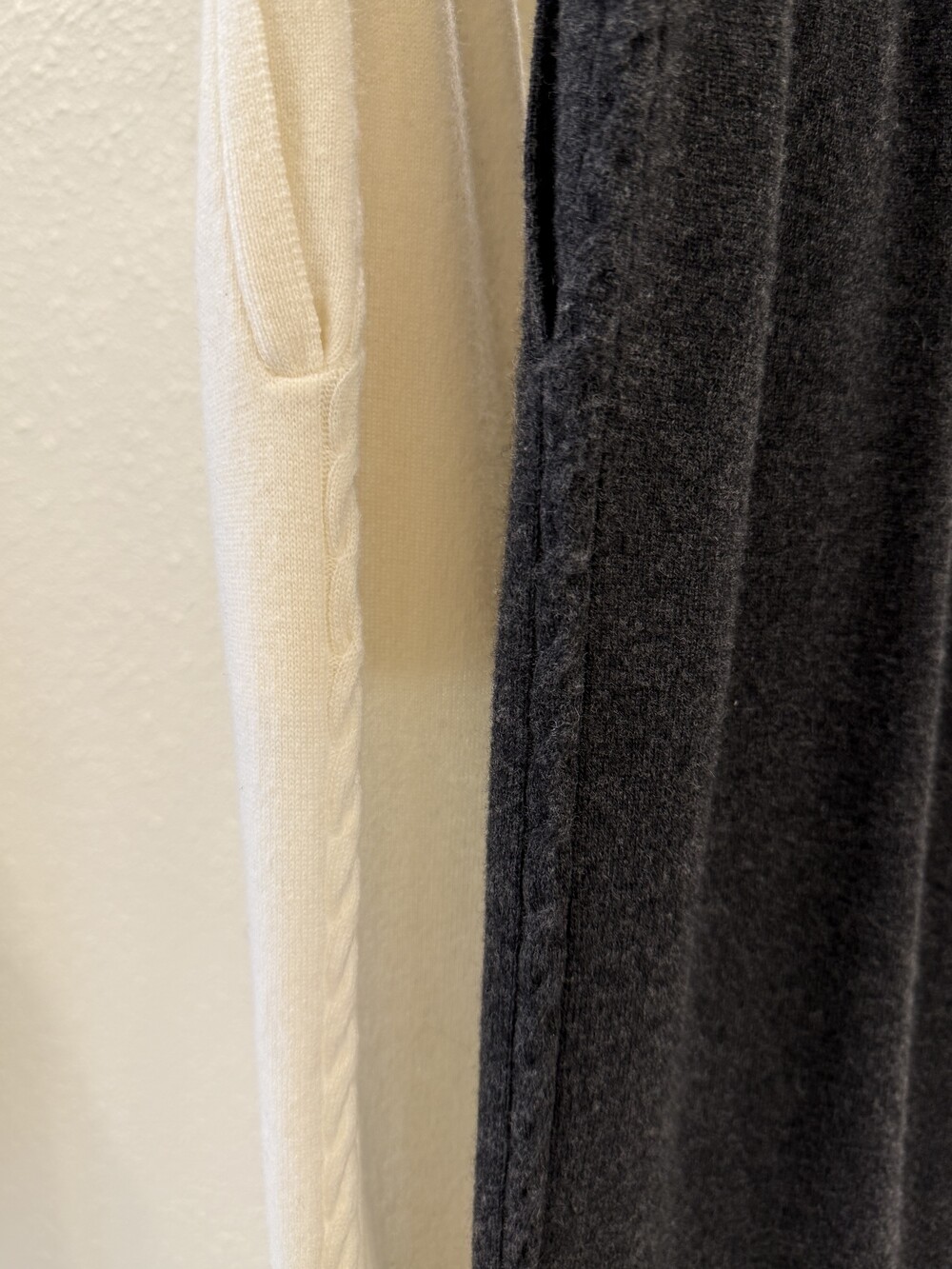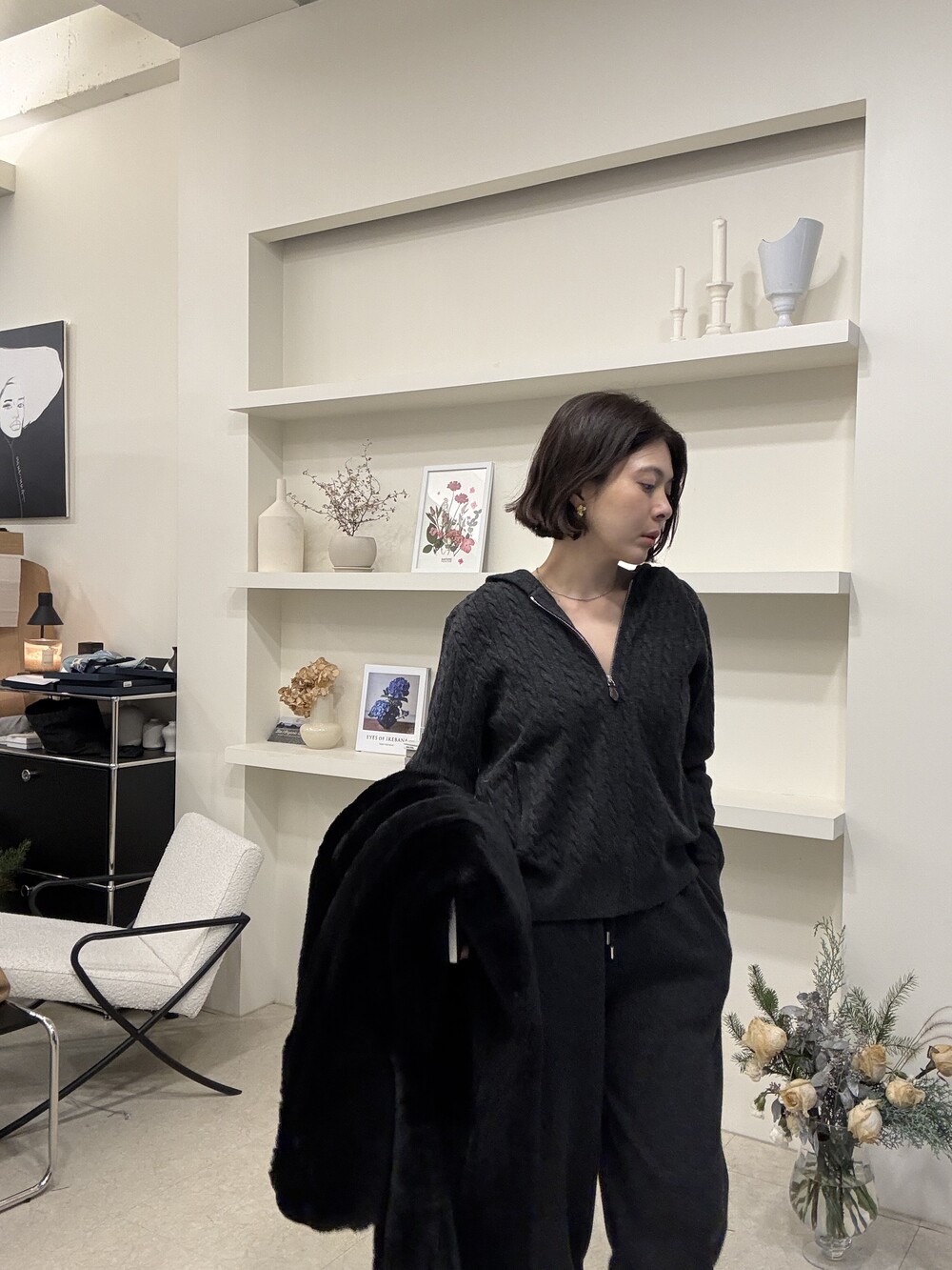 특히 볼륨감있게 표현된 케이블 조직이 고급스러움을 더해주며, 좋은 원료의 캐시미어 원사를 사용하여 중량감이 꽤 들어갔음에도 불구하고 무겁지 않게 표현되었습니다.