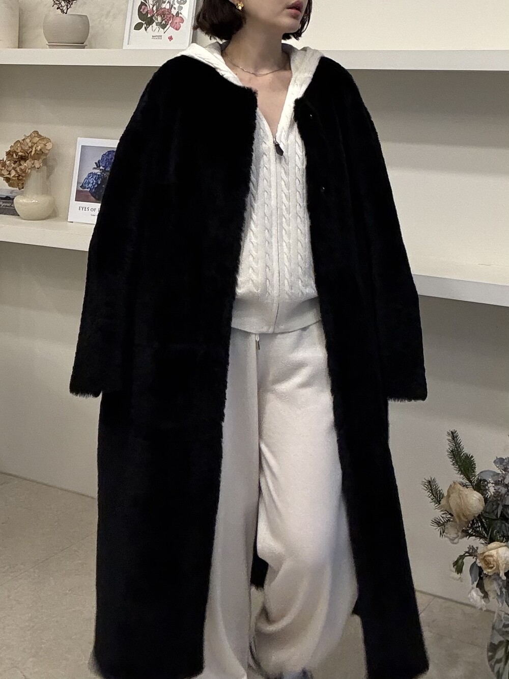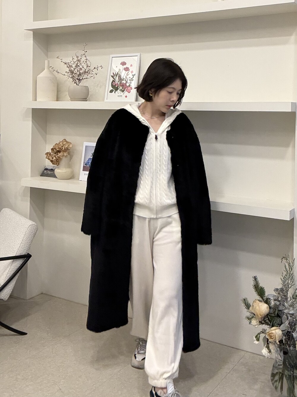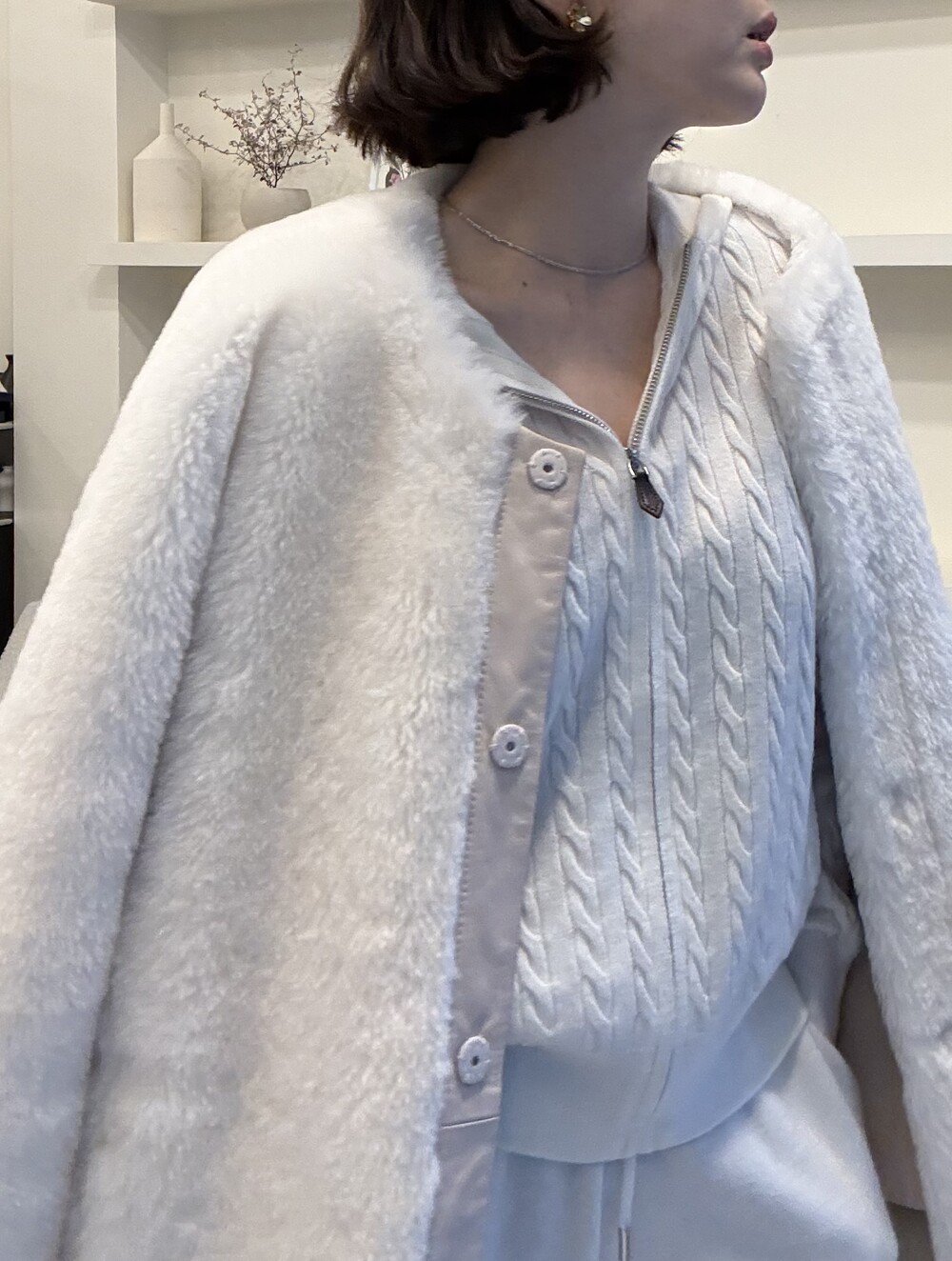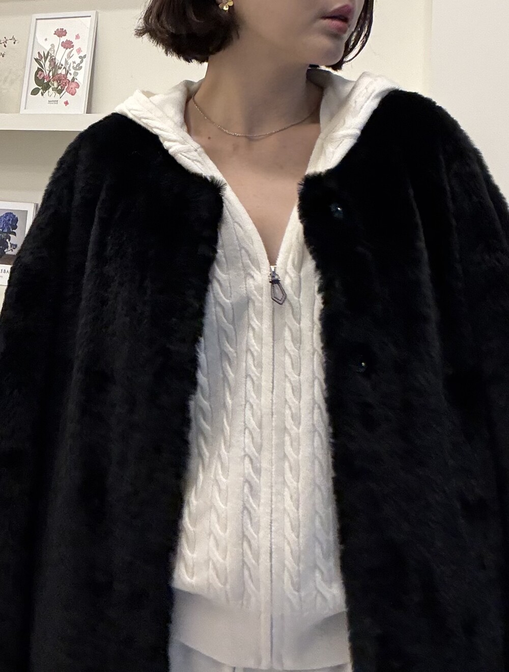 특히 볼륨감있게 표현된 케이블 조직이 고급스러움을 더해주며, 좋은 원료의 캐시미어 원사를 사용하여 중량감이 꽤 들어갔음에도 불구하고 무겁지 않게 표현되었습니다.