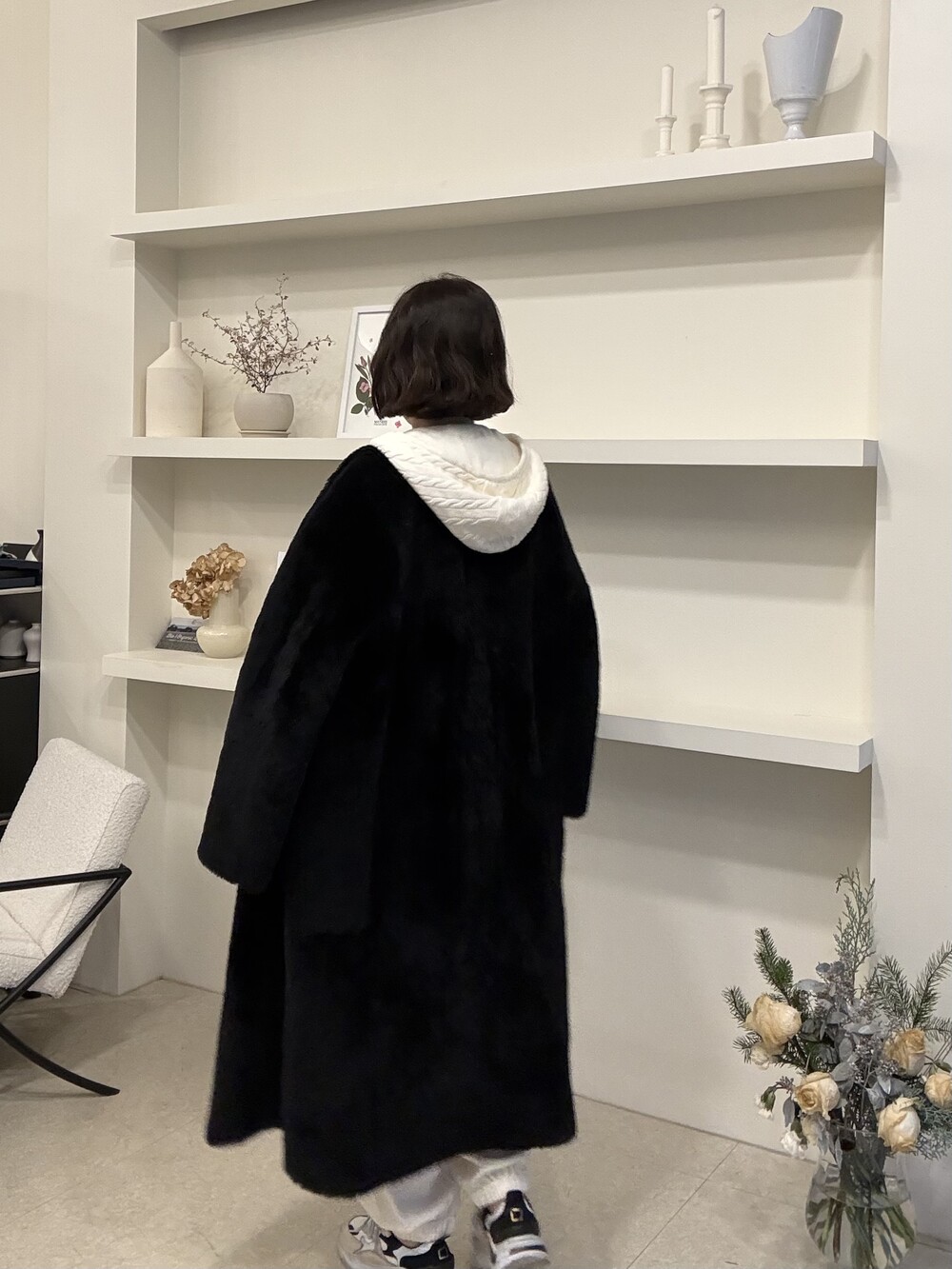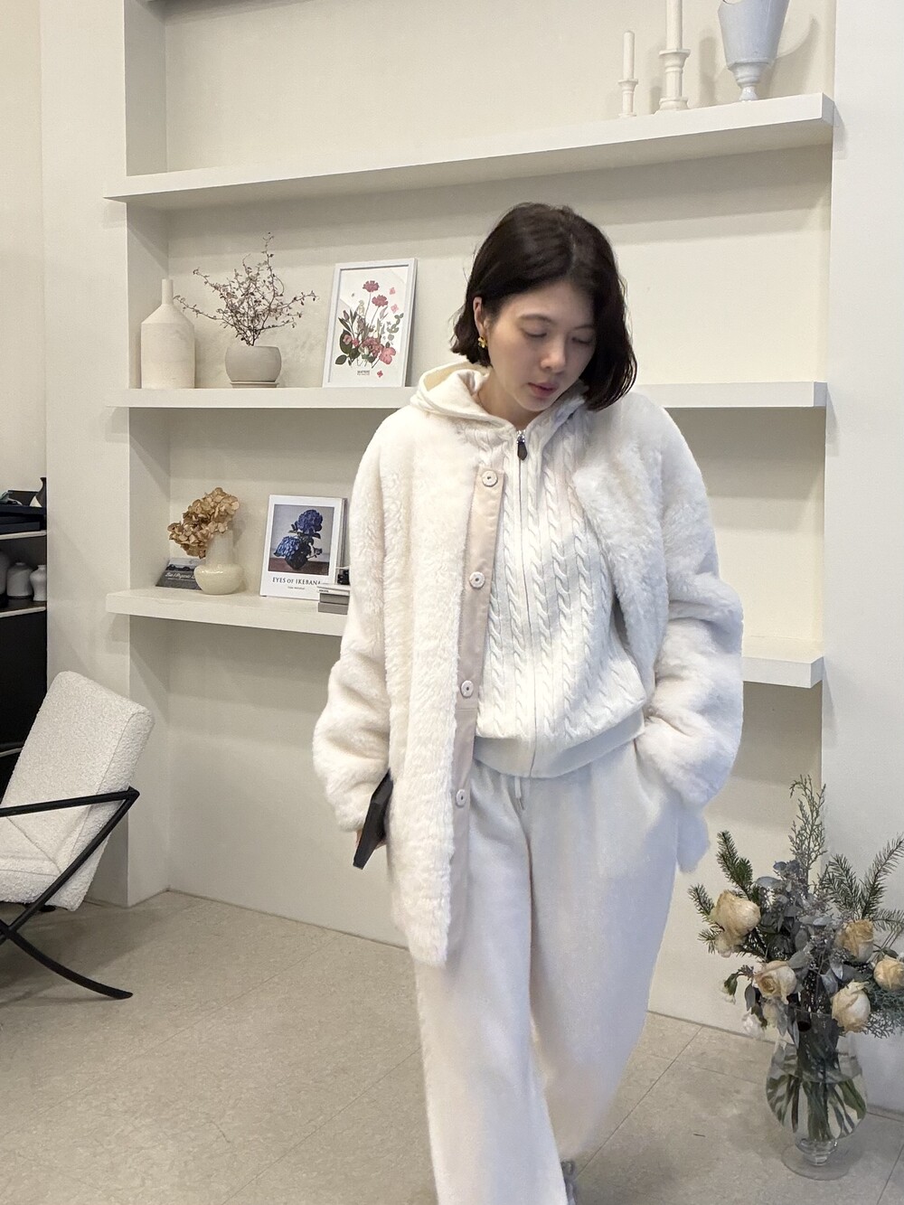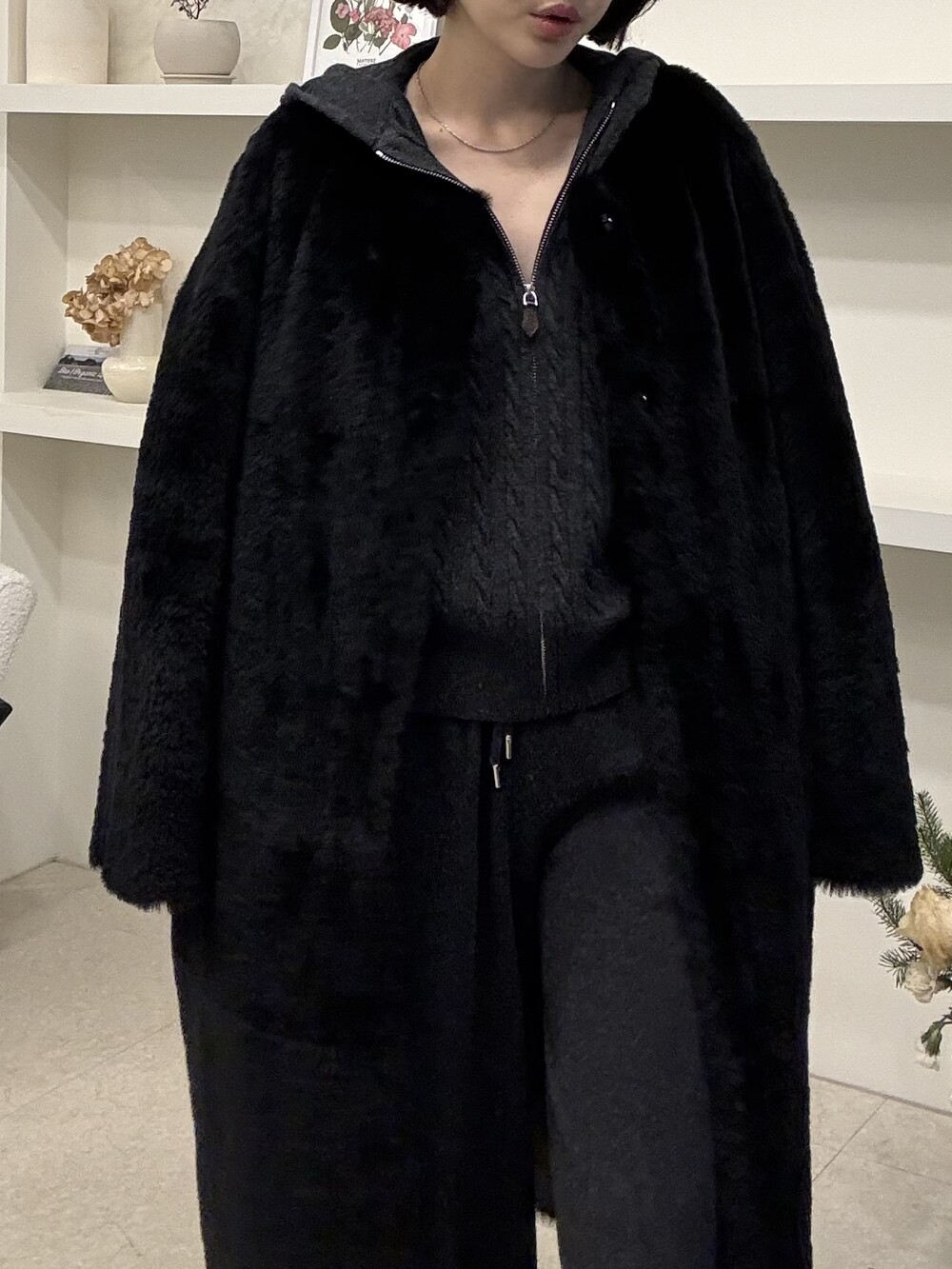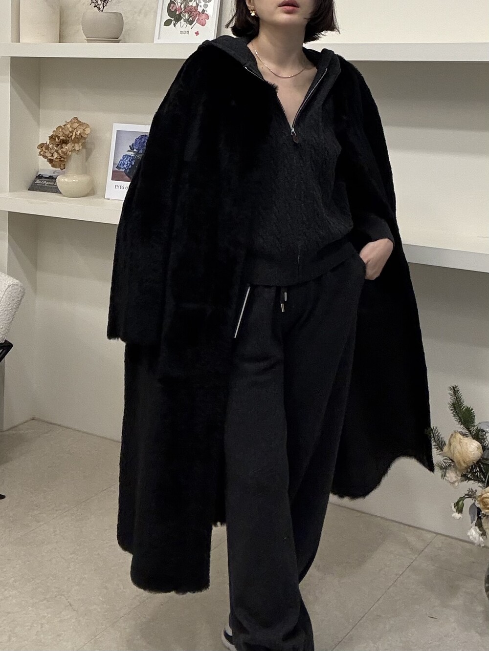 후드형태의 캐쥬얼한 아웃라인을 담고 있지만 우아하고 기품있는 포멀룩으로 연출하기 좋도록 만들어진 니트입니다.