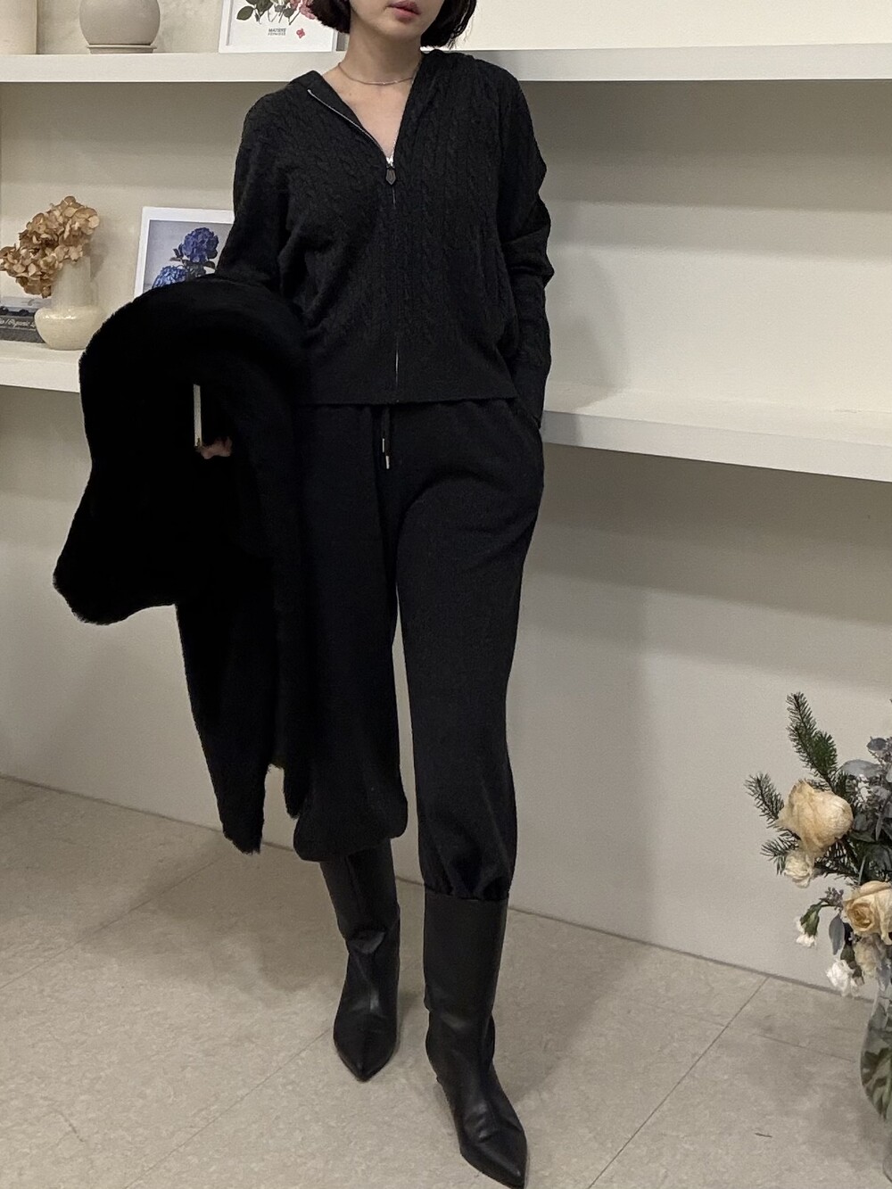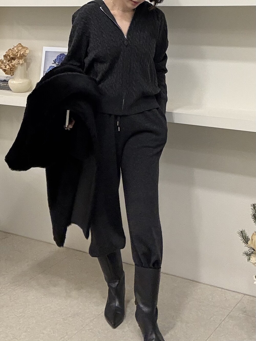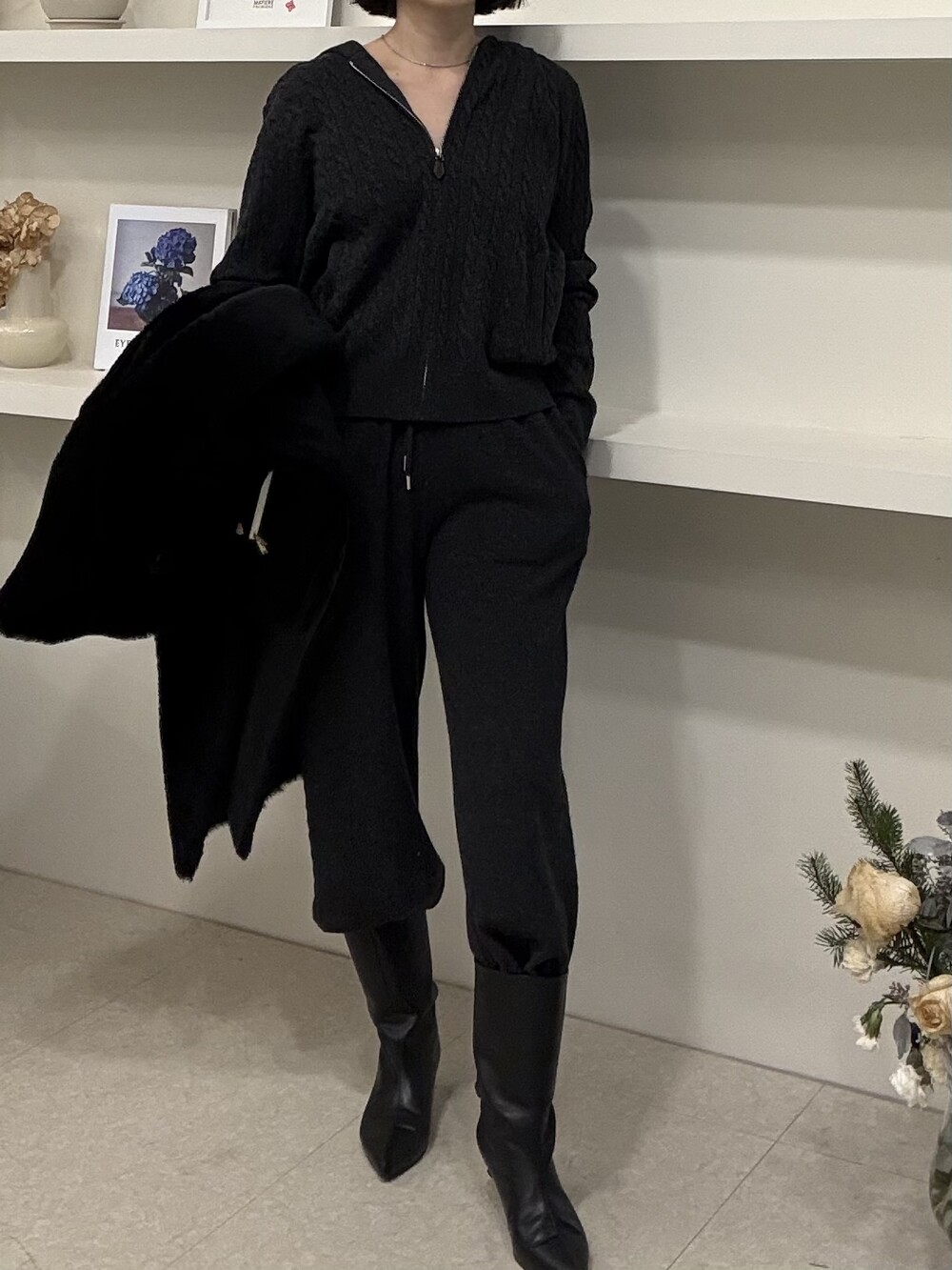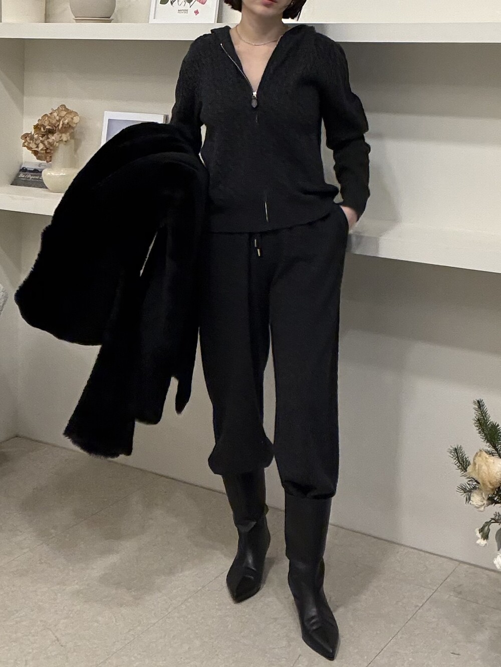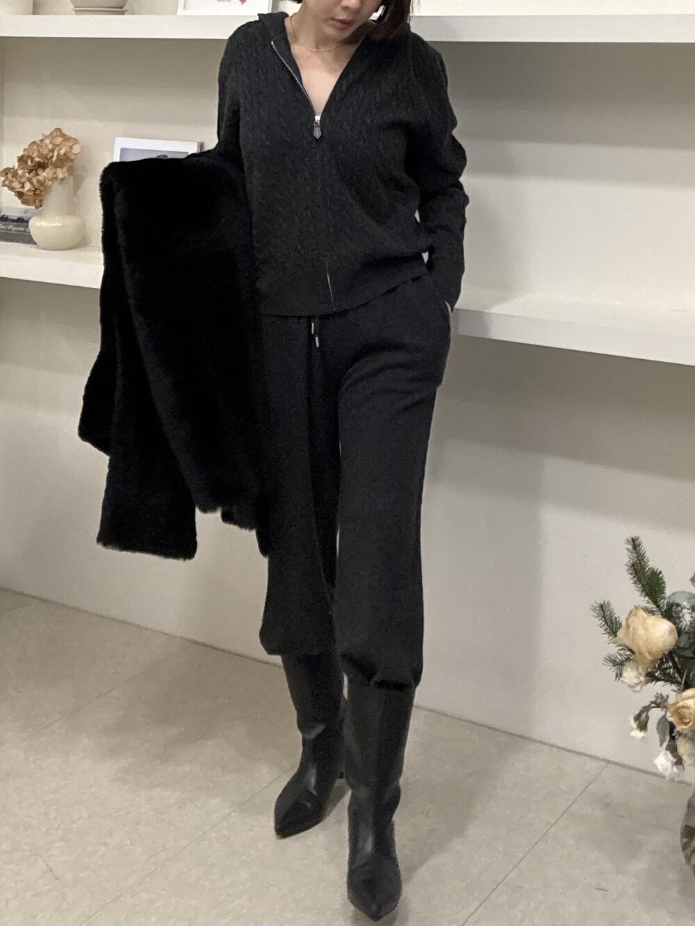 많이 여유있게 입는 스타일이 아닌 스탠다드한 핏으로 제안되는 니트 셋업입니다.