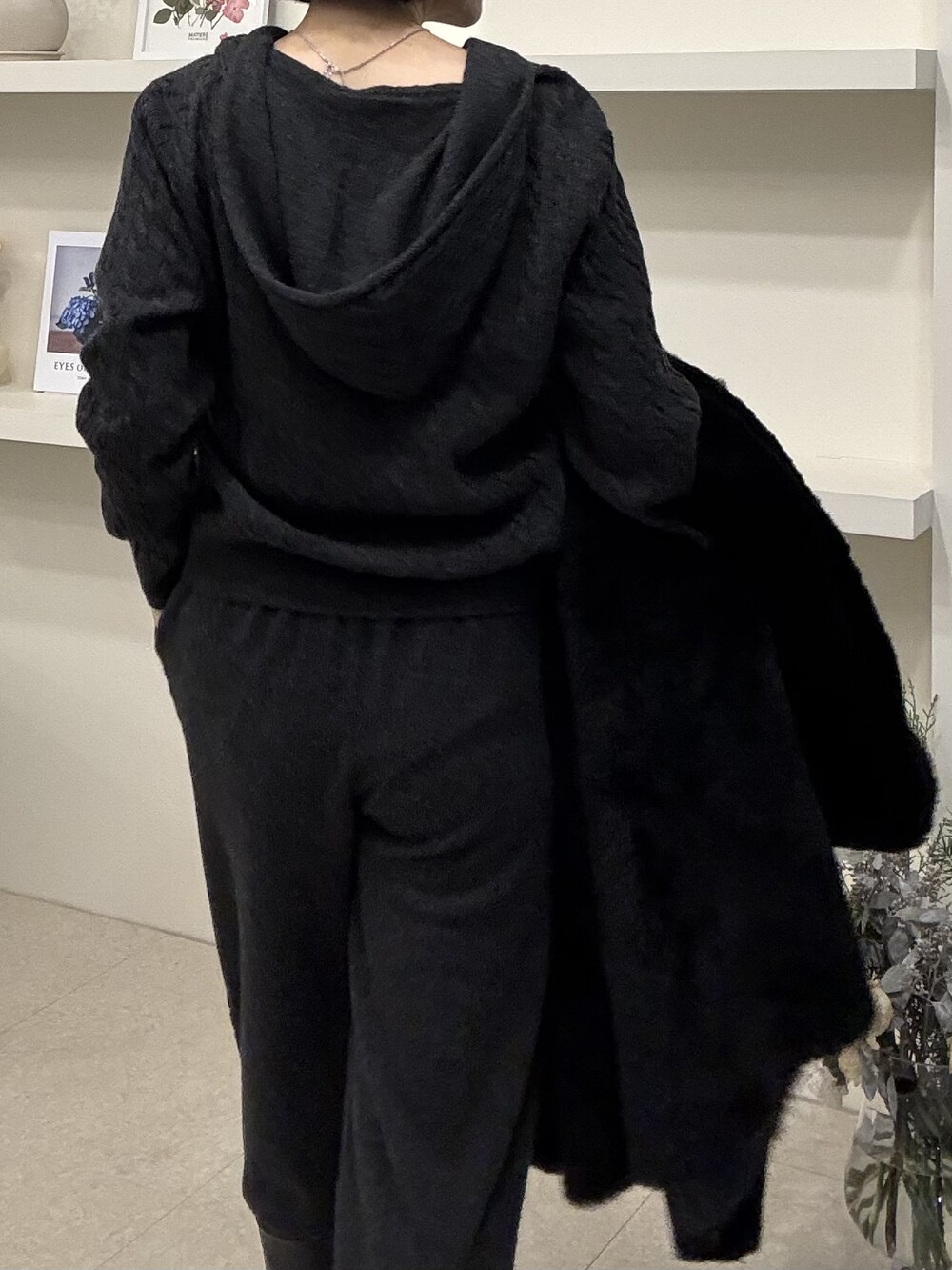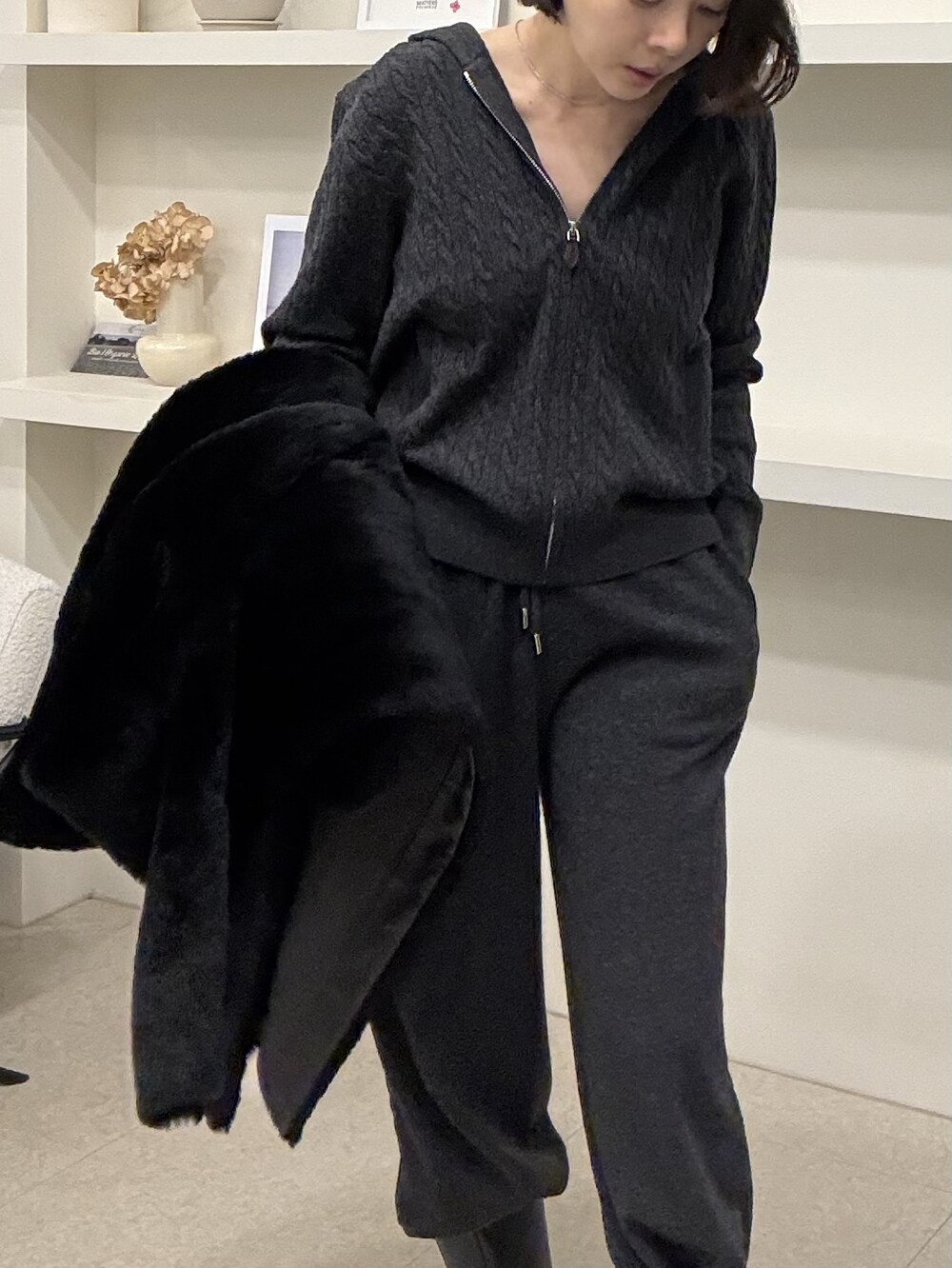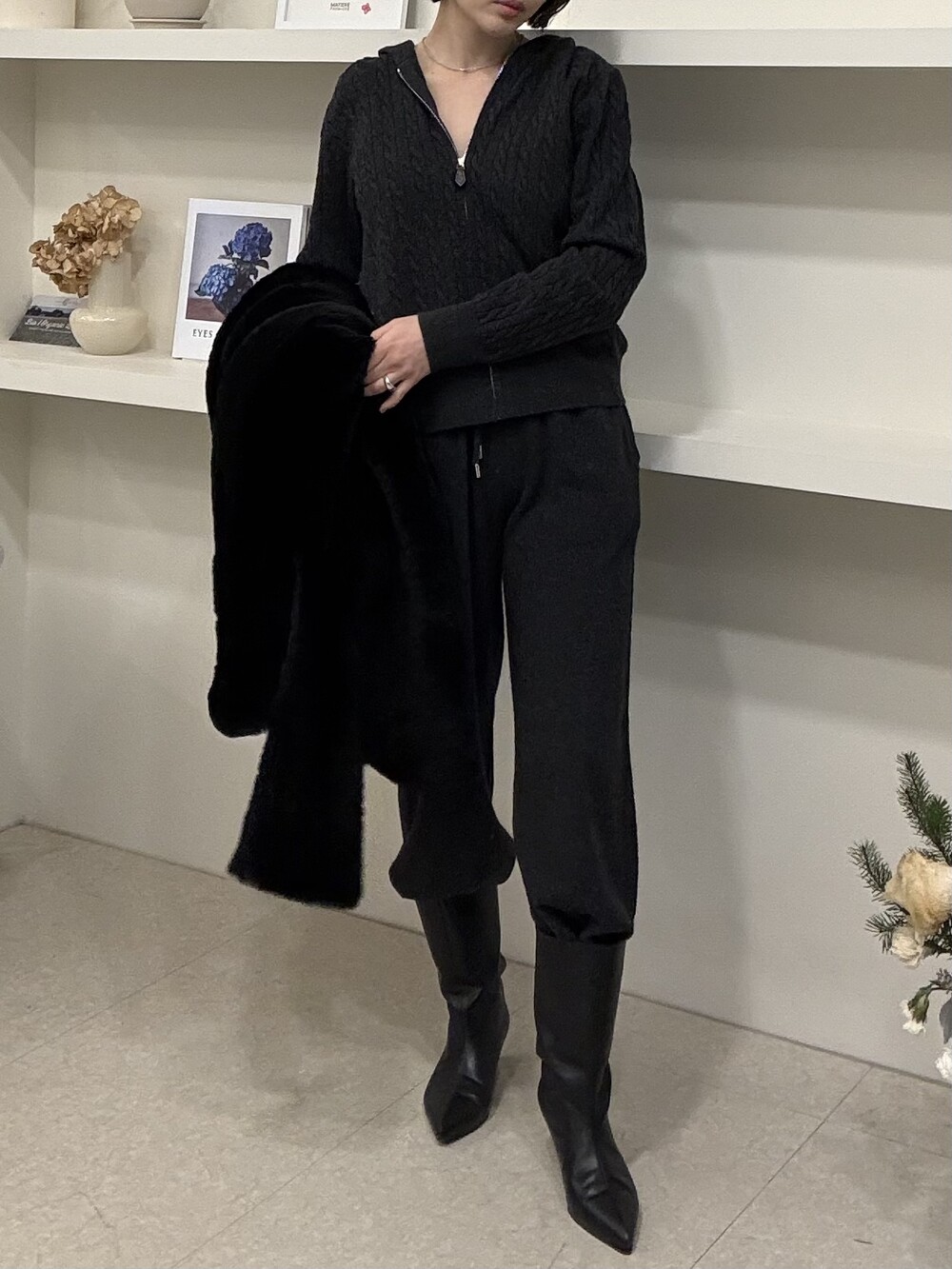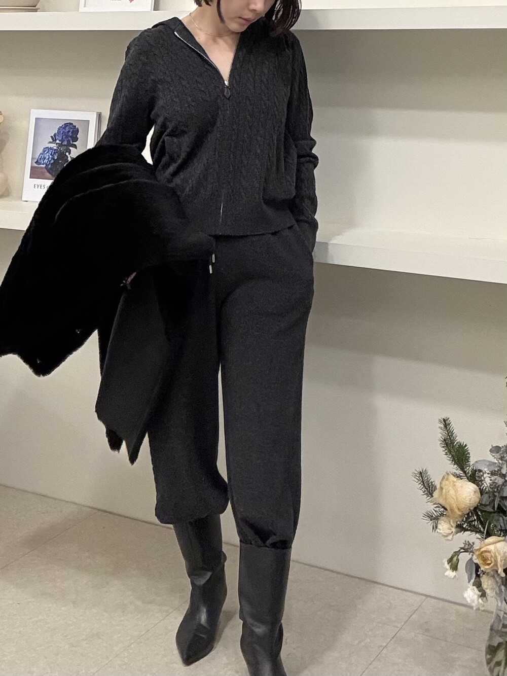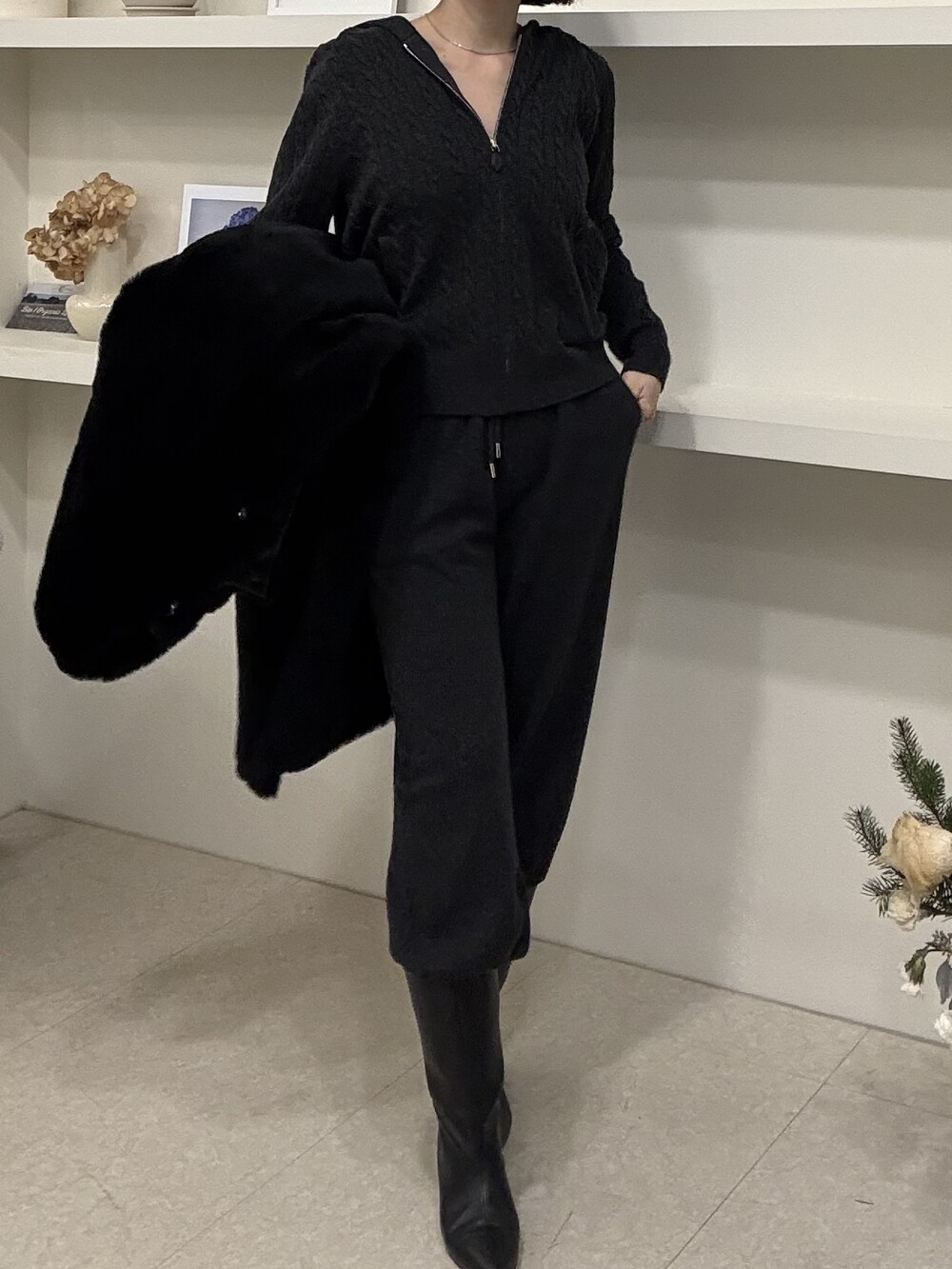 많이 여유있게 입는 스타일이 아닌 스탠다드한 핏으로 제안되는 니트 셋업입니다.