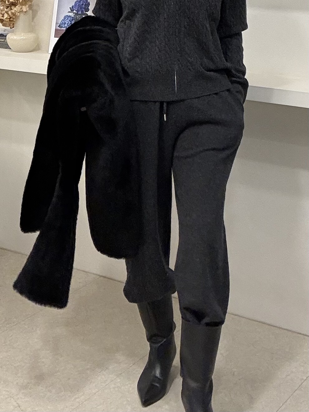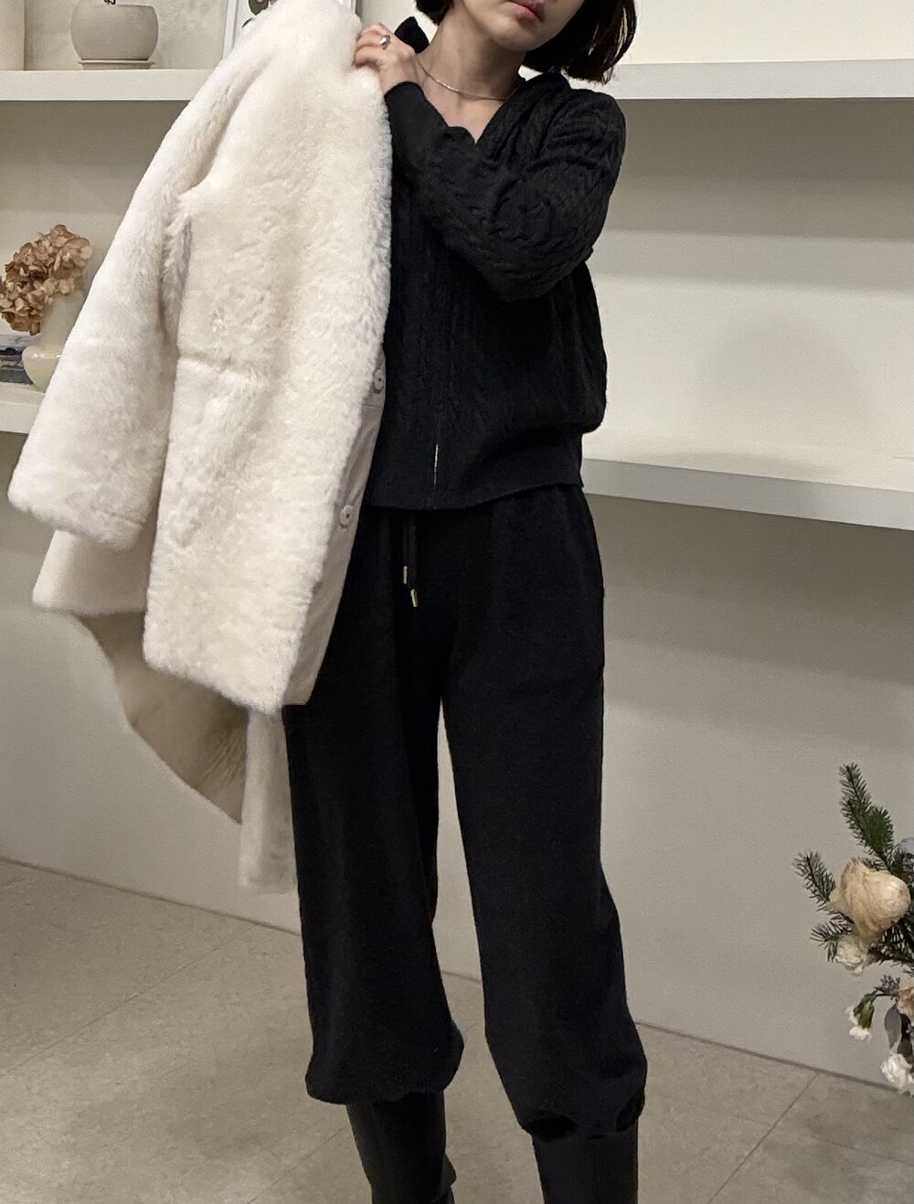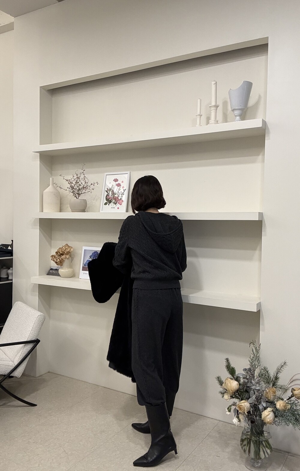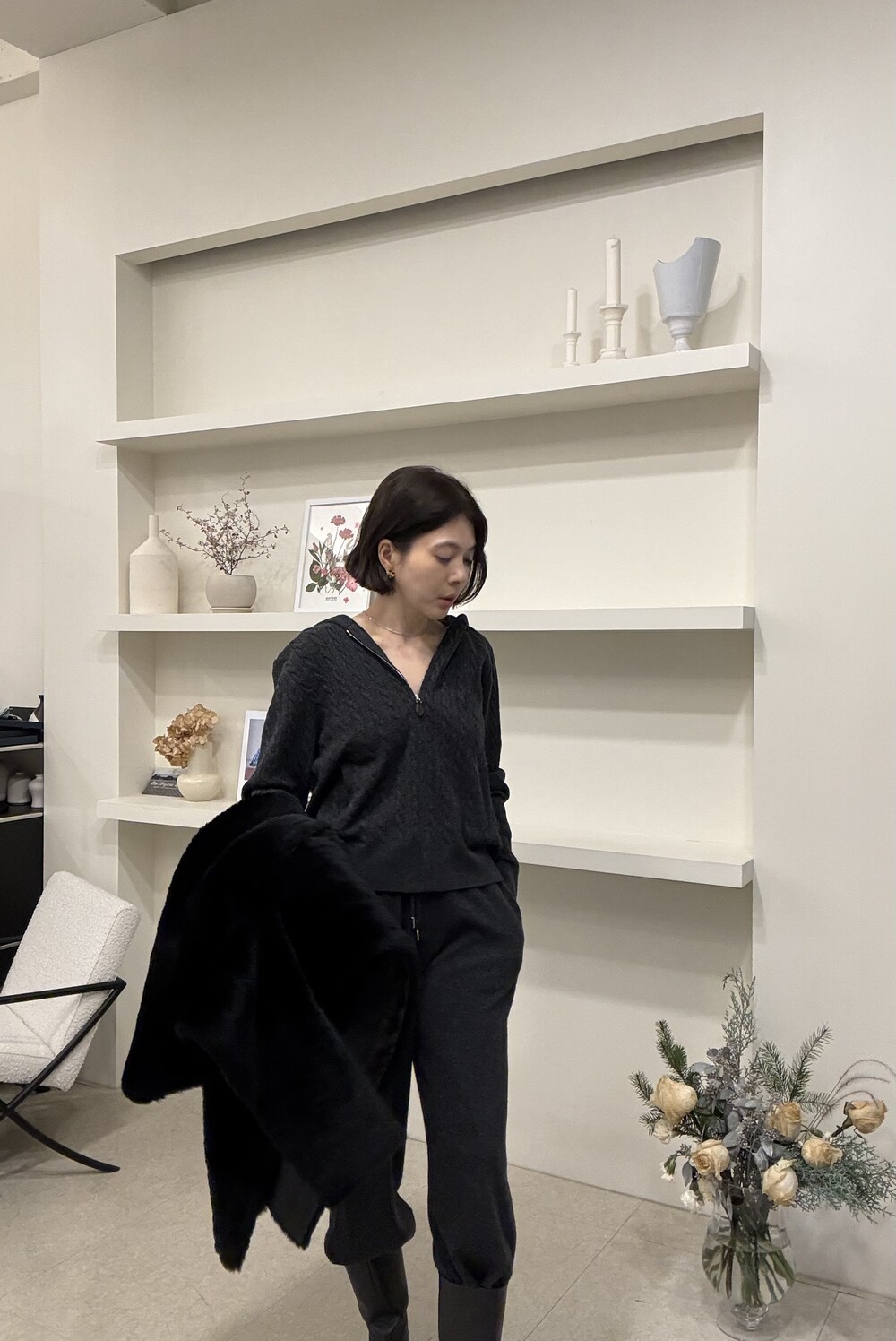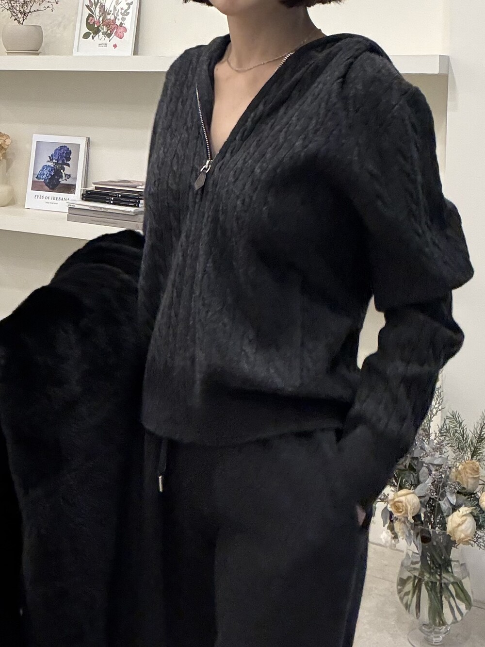 많이 여유있게 입는 스타일이 아닌 스탠다드한 핏으로 제안되는 니트 셋업입니다.