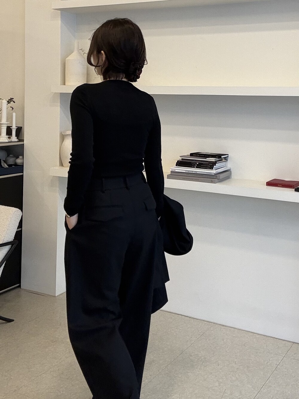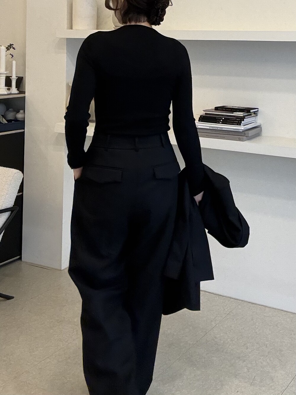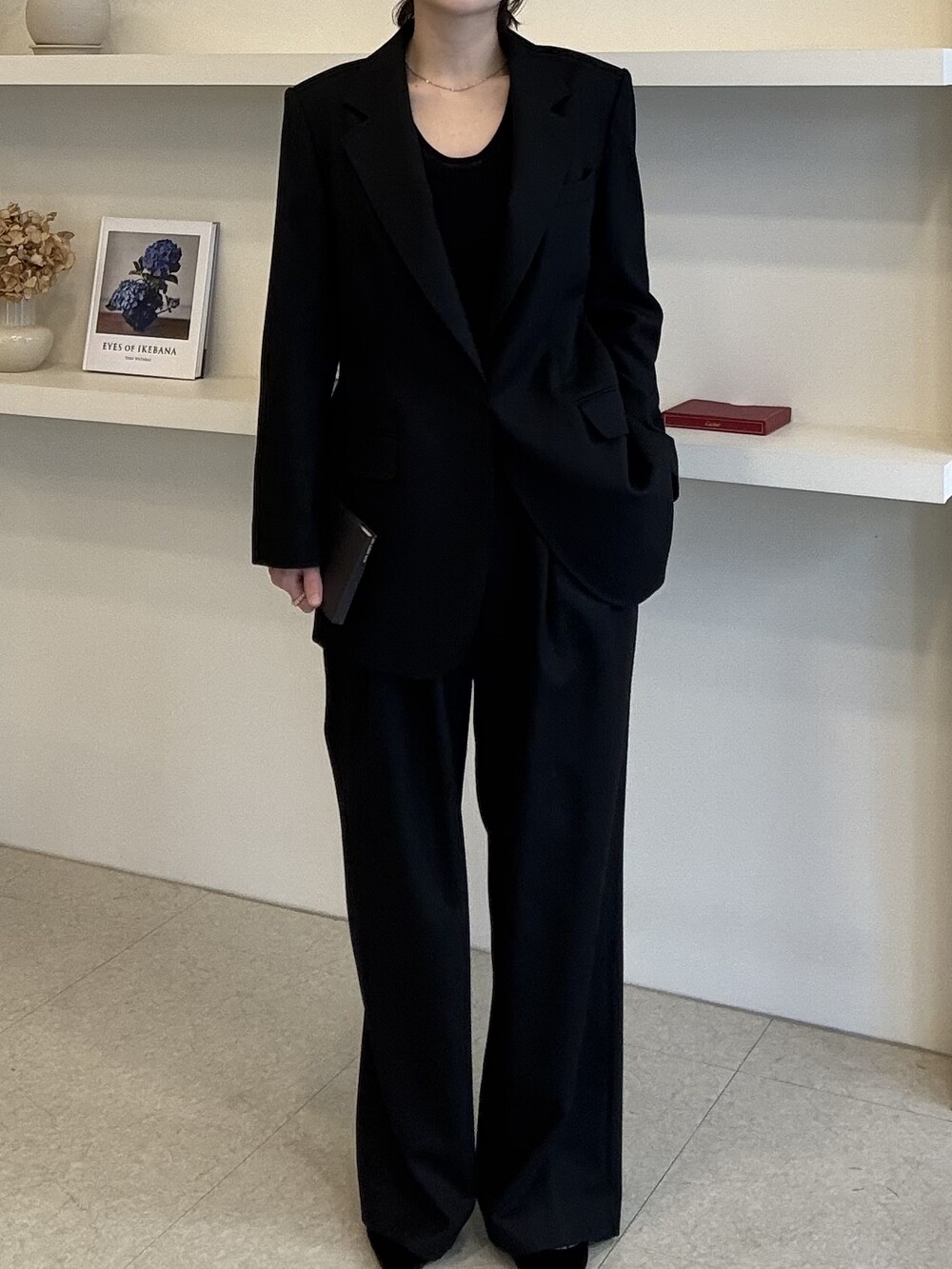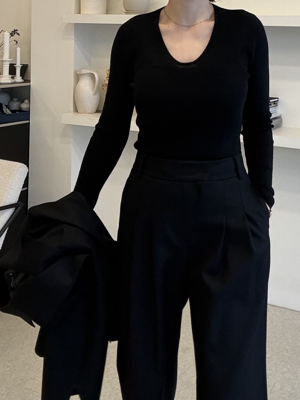 부드럽고 포근한 외관을 자랑하는 세련된 블랙으로 , 울90% 캐시미어10% 혼용으로 2합 80수의 소모 소재로 제안됩니다. 두껍지 않고 그리고 얇지도 않은 질감이 가장 특징적이며, 때문에 시즌을 길게 확보해서 연출하실 수 있도록 준비했습니다.