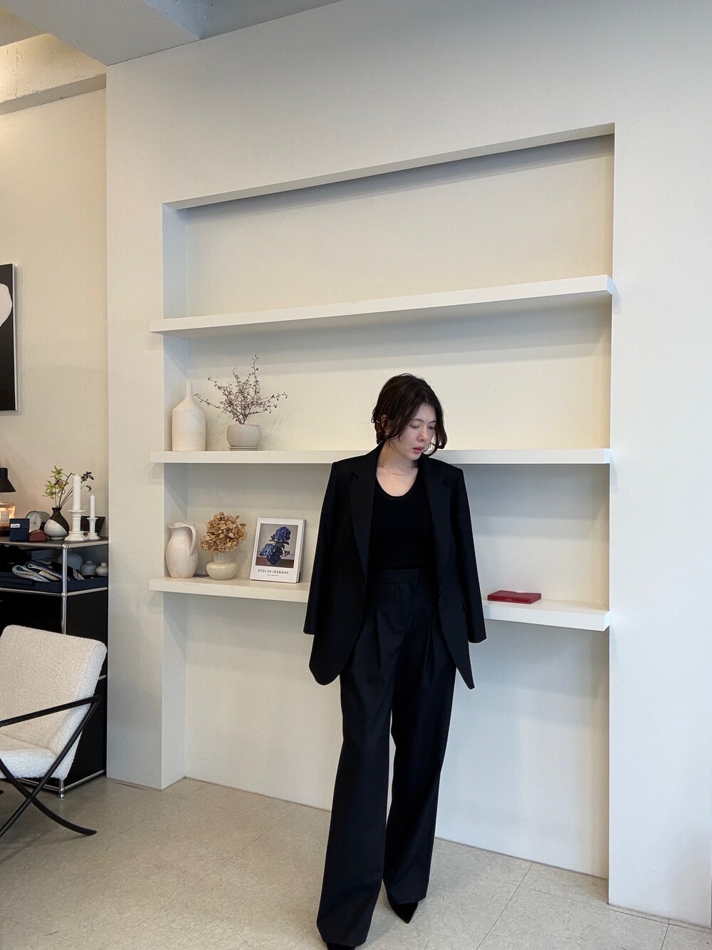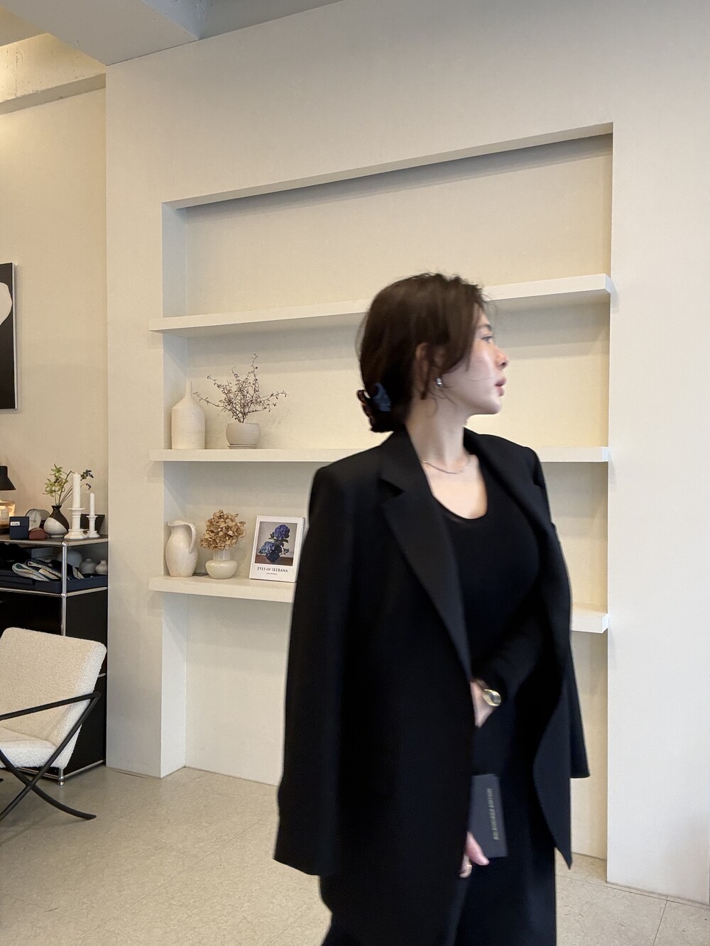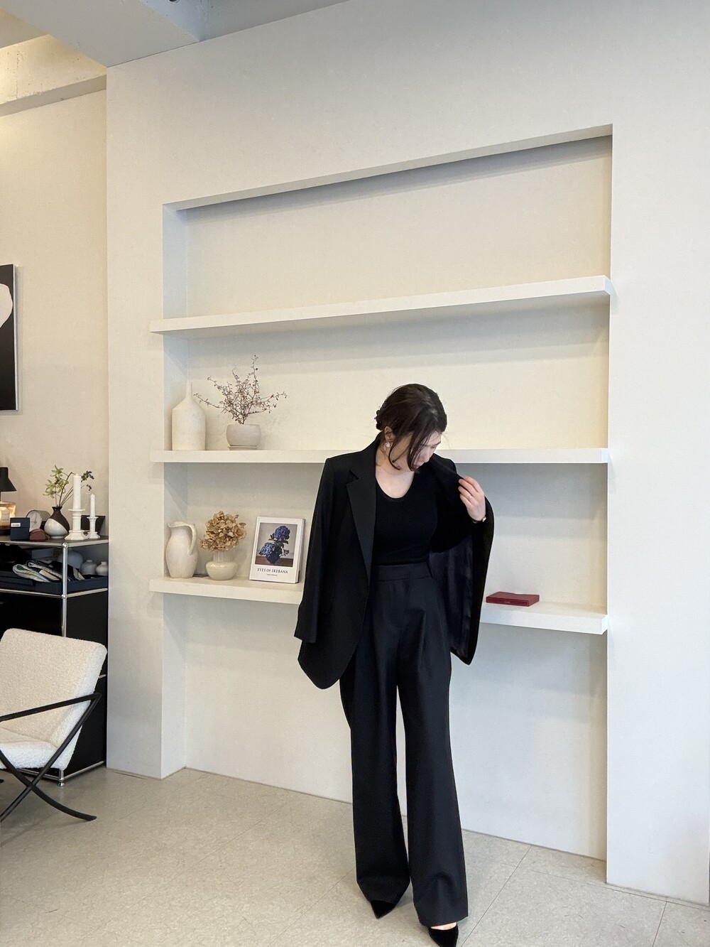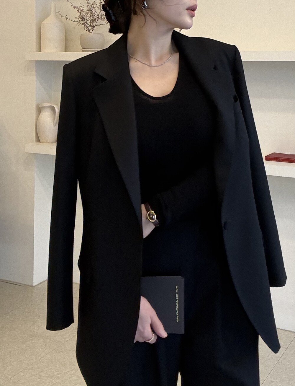 부드럽고 포근한 외관을 자랑하는 세련된 블랙으로 , 울90% 캐시미어10% 혼용으로 2합 80수의 소모 소재로 제안됩니다. 두껍지 않고 그리고 얇지도 않은 질감이 가장 특징적이며, 때문에 시즌을 길게 확보해서 연출하실 수 있도록 준비했습니다.