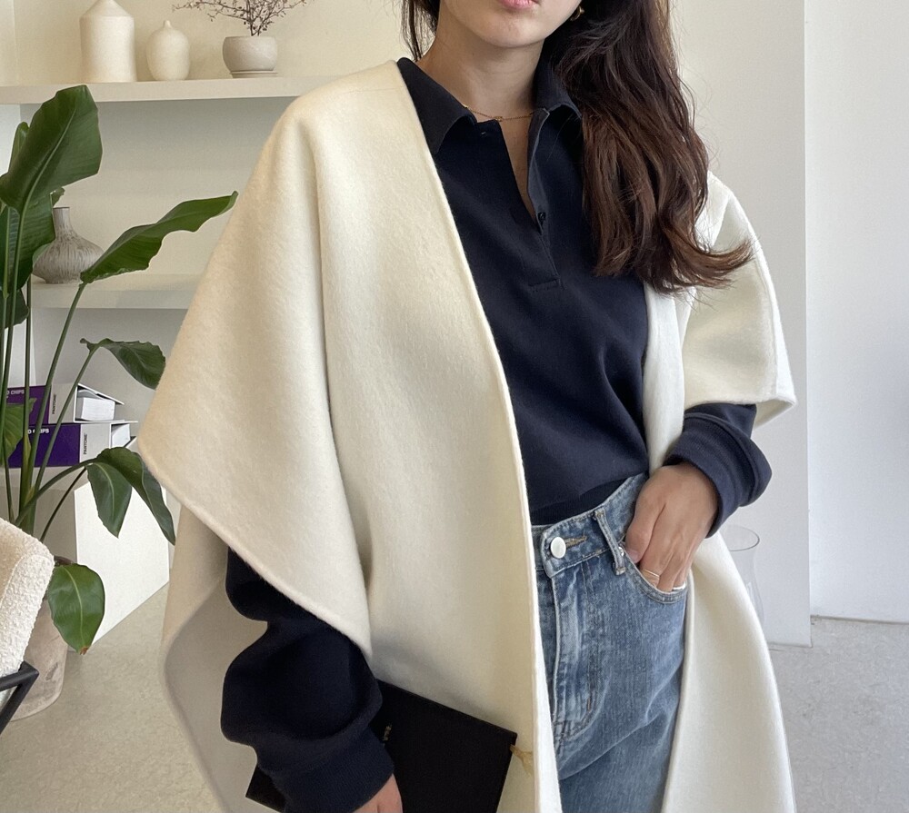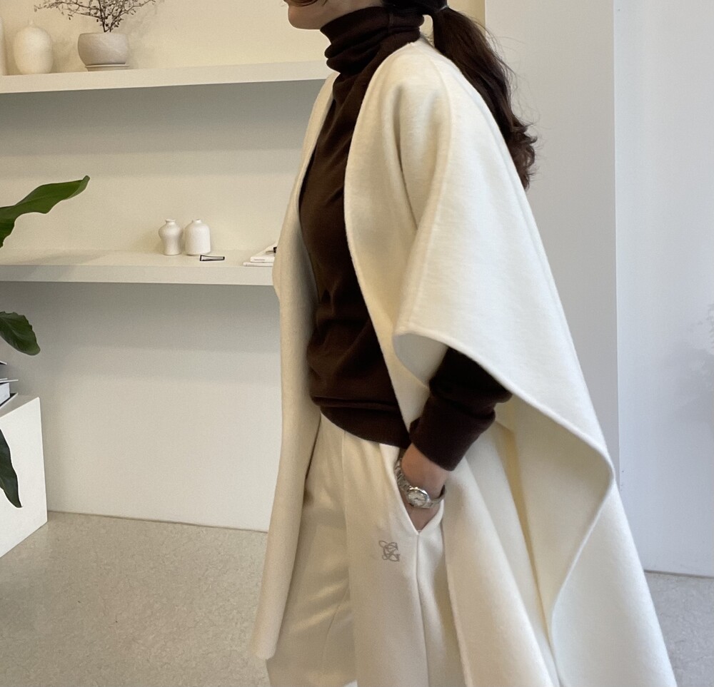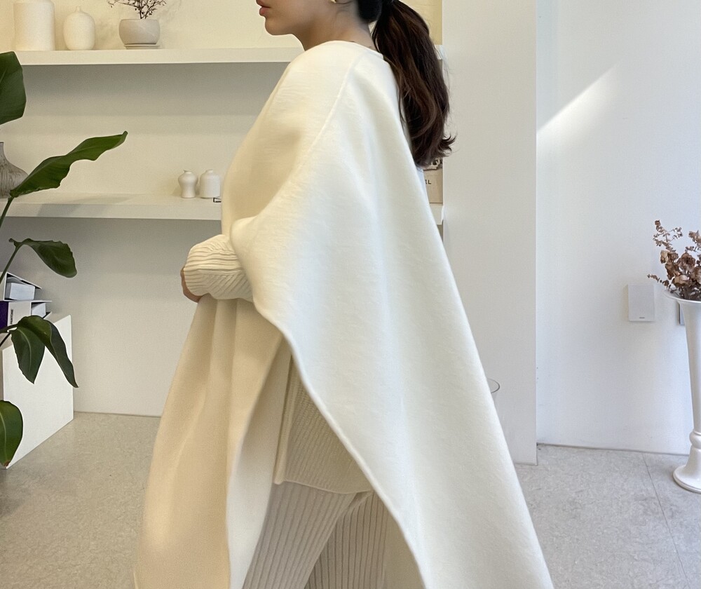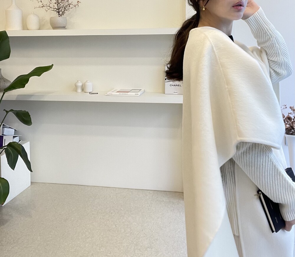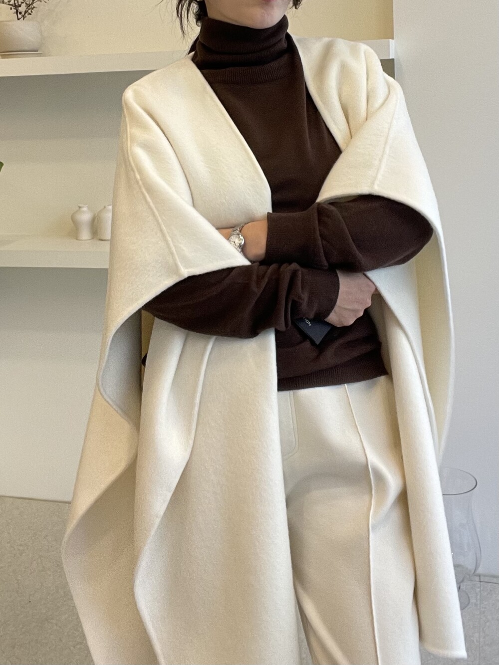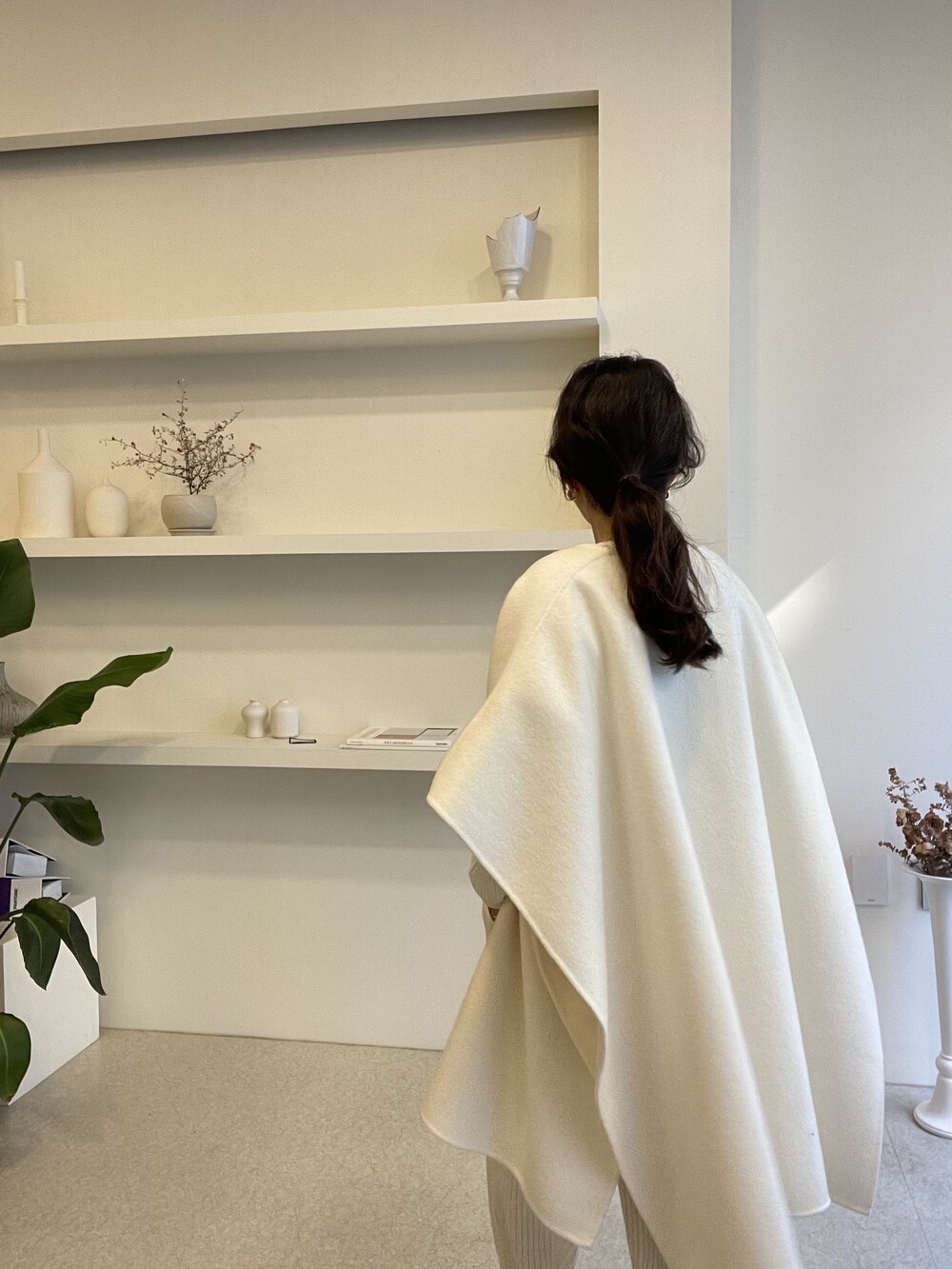 소프트하고 부드러운 텍스처가 돋보이는 메리노울 100% 소재의 케이프 코트입니다.