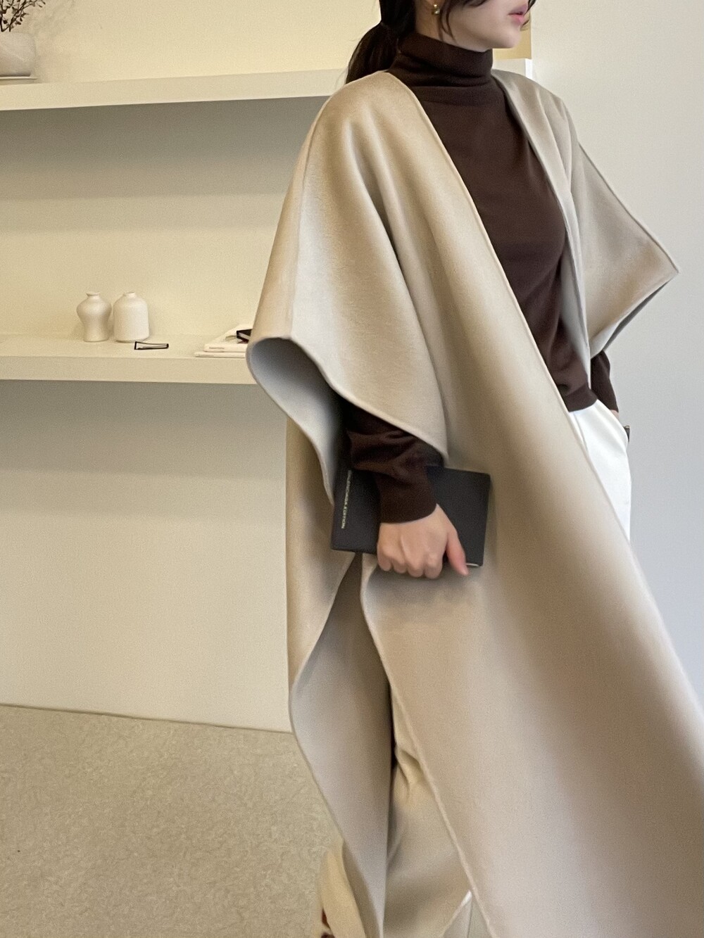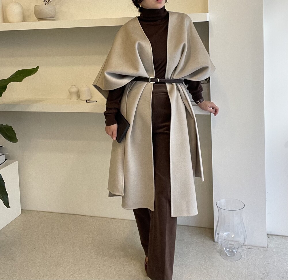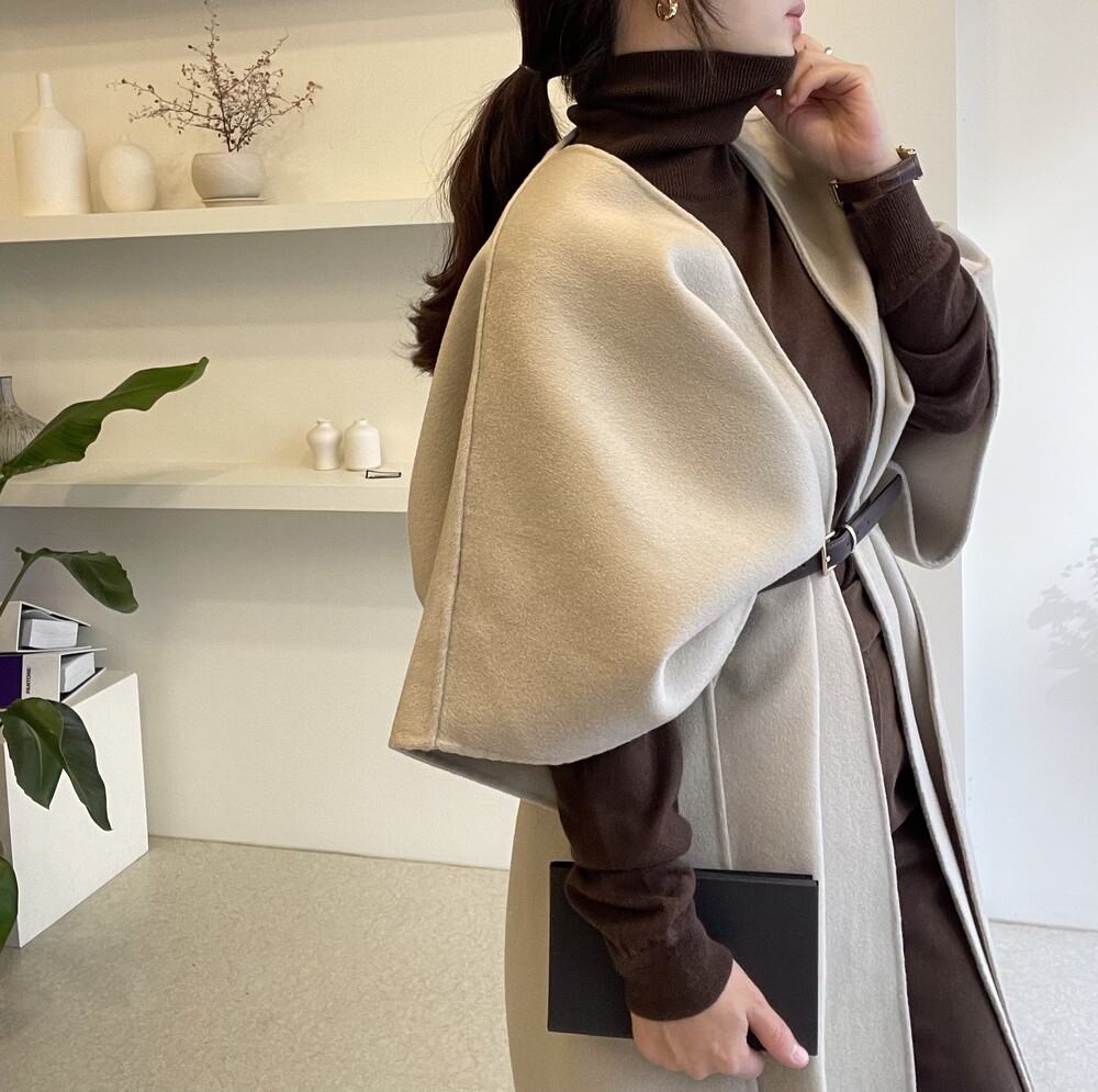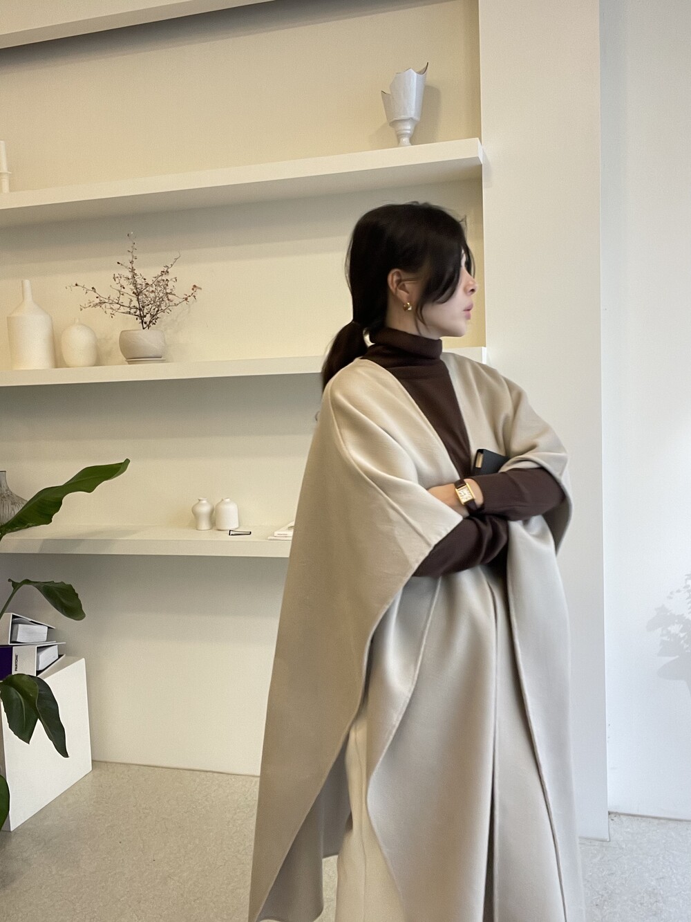 Wool & Cashmere handmade cape coat ( mocabeige )