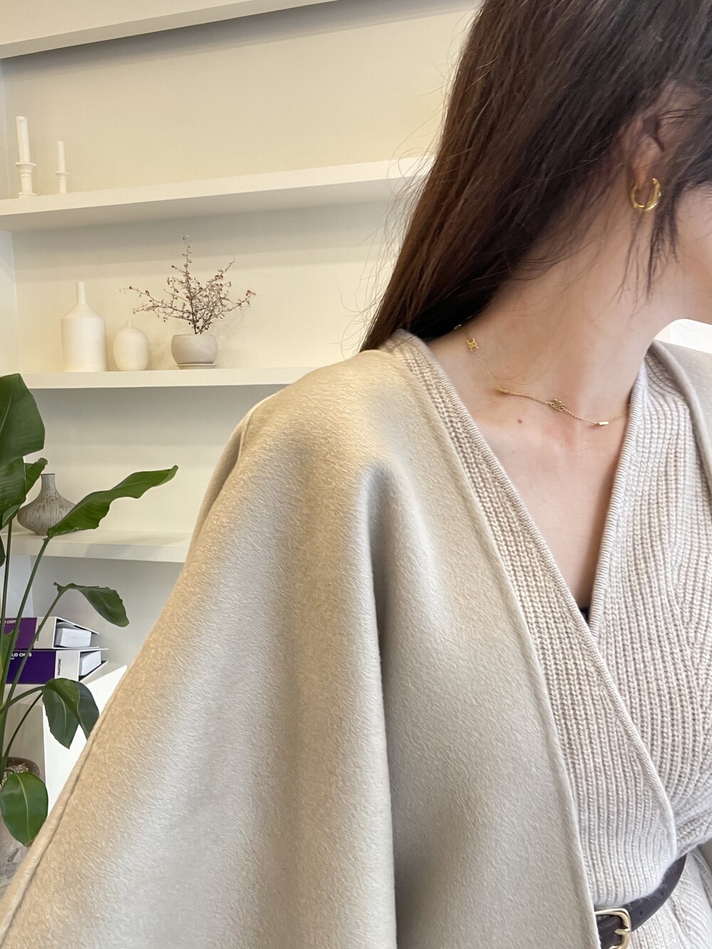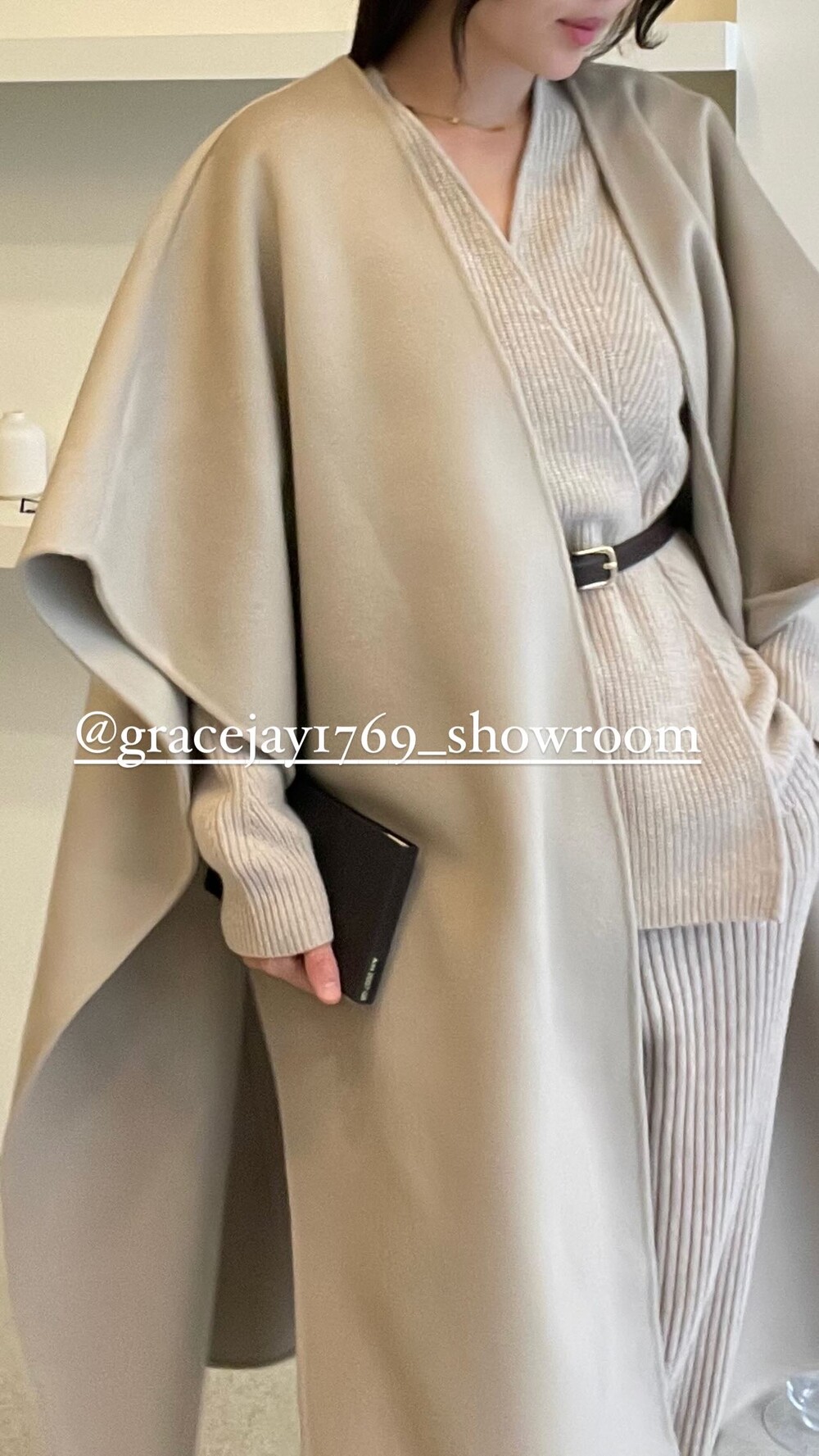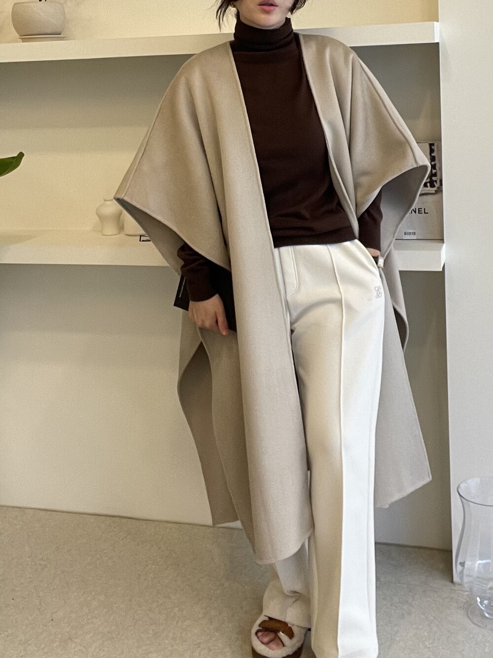 소프트하고 부드러운 텍스처가 돋보이는 메리노울 90% 캐시미어 10% 혼방의 케이프 코트입니다.