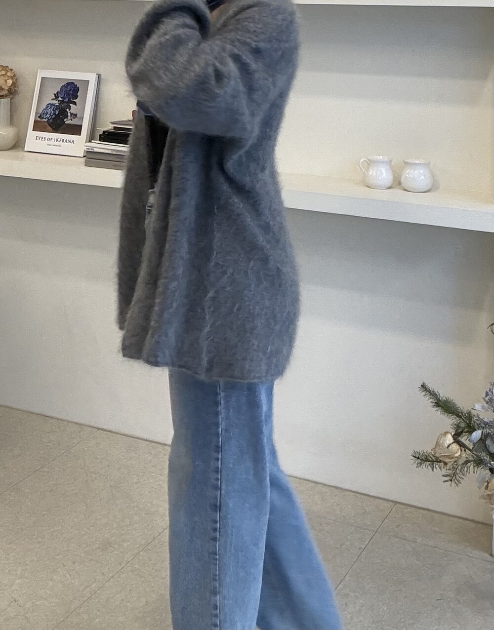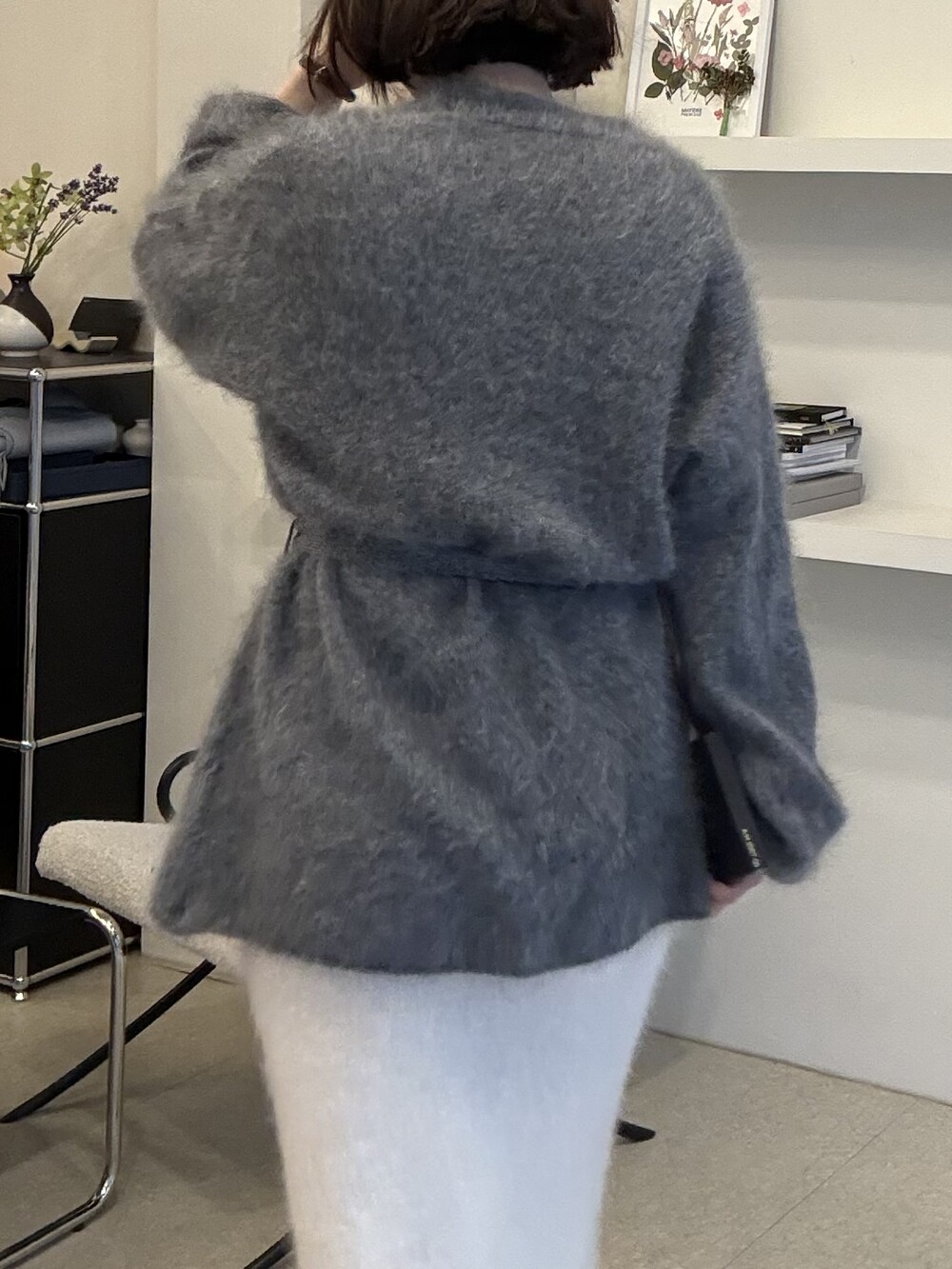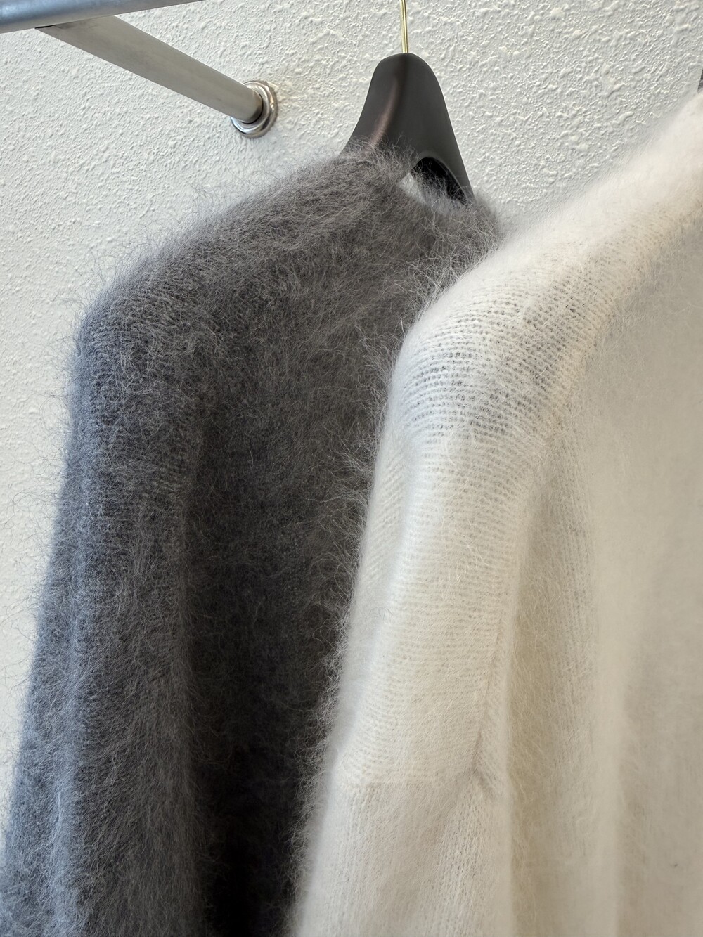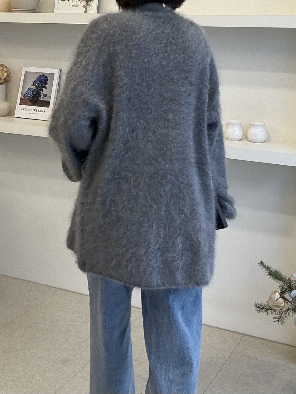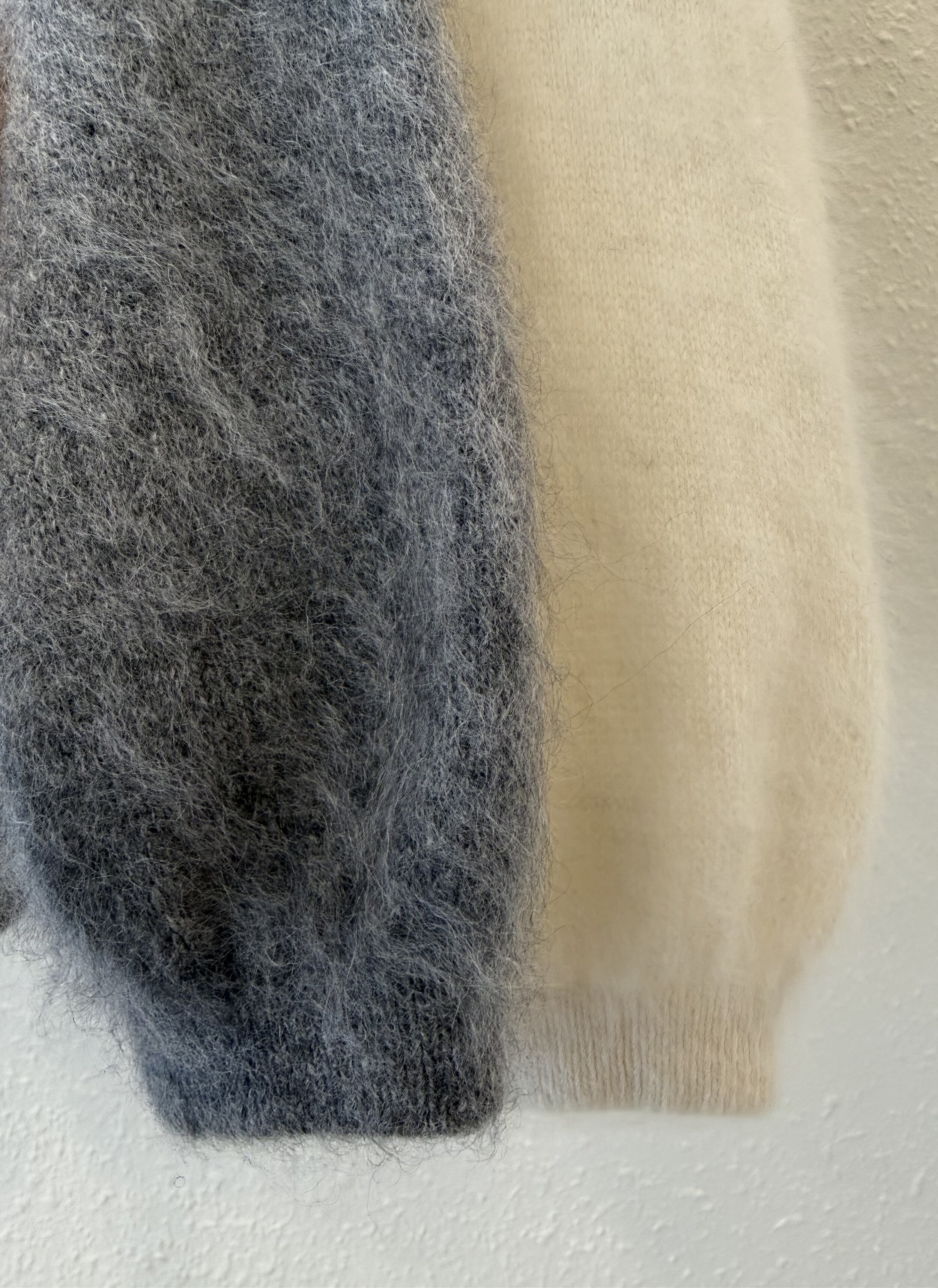 앙고라만큼의 털빠짐보다 최소화 될 수 있도록 울과 캐시미어를 섞어 기모와 모장을 최대 일으켜서 앙고라의 외관처럼 만든 소재입니다.