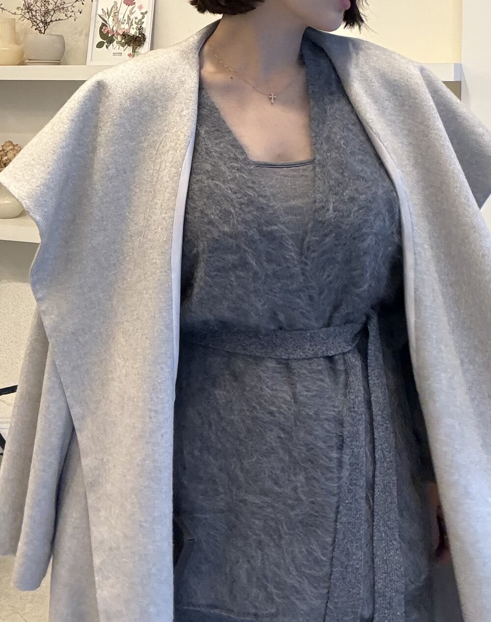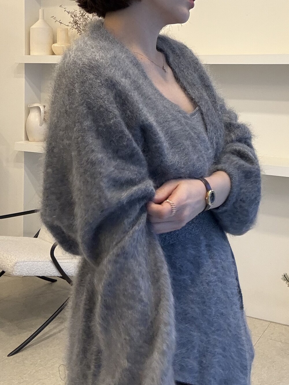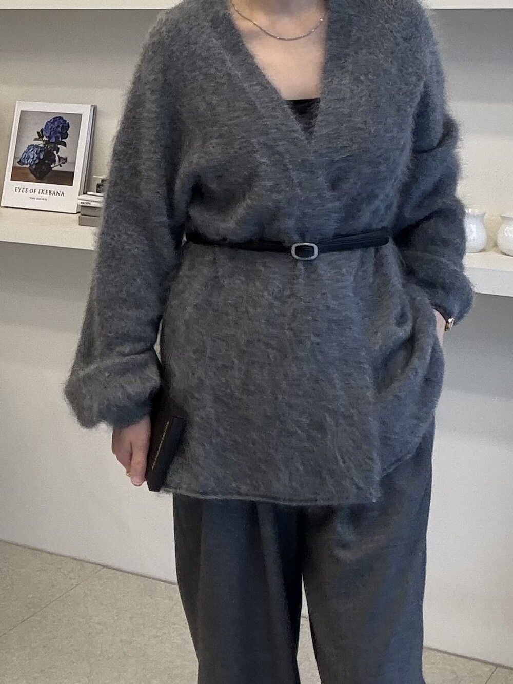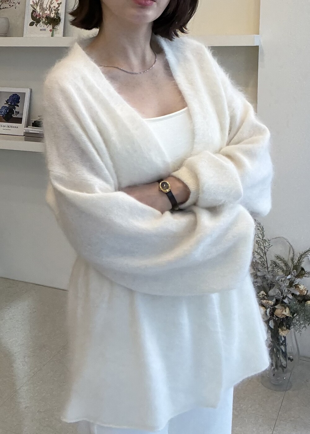 앙고라만큼의 털빠짐보다 최소화 될 수 있도록 울과 캐시미어를 섞어 기모와 모장을 최대 일으켜서 앙고라의 외관처럼 만든 소재입니다.