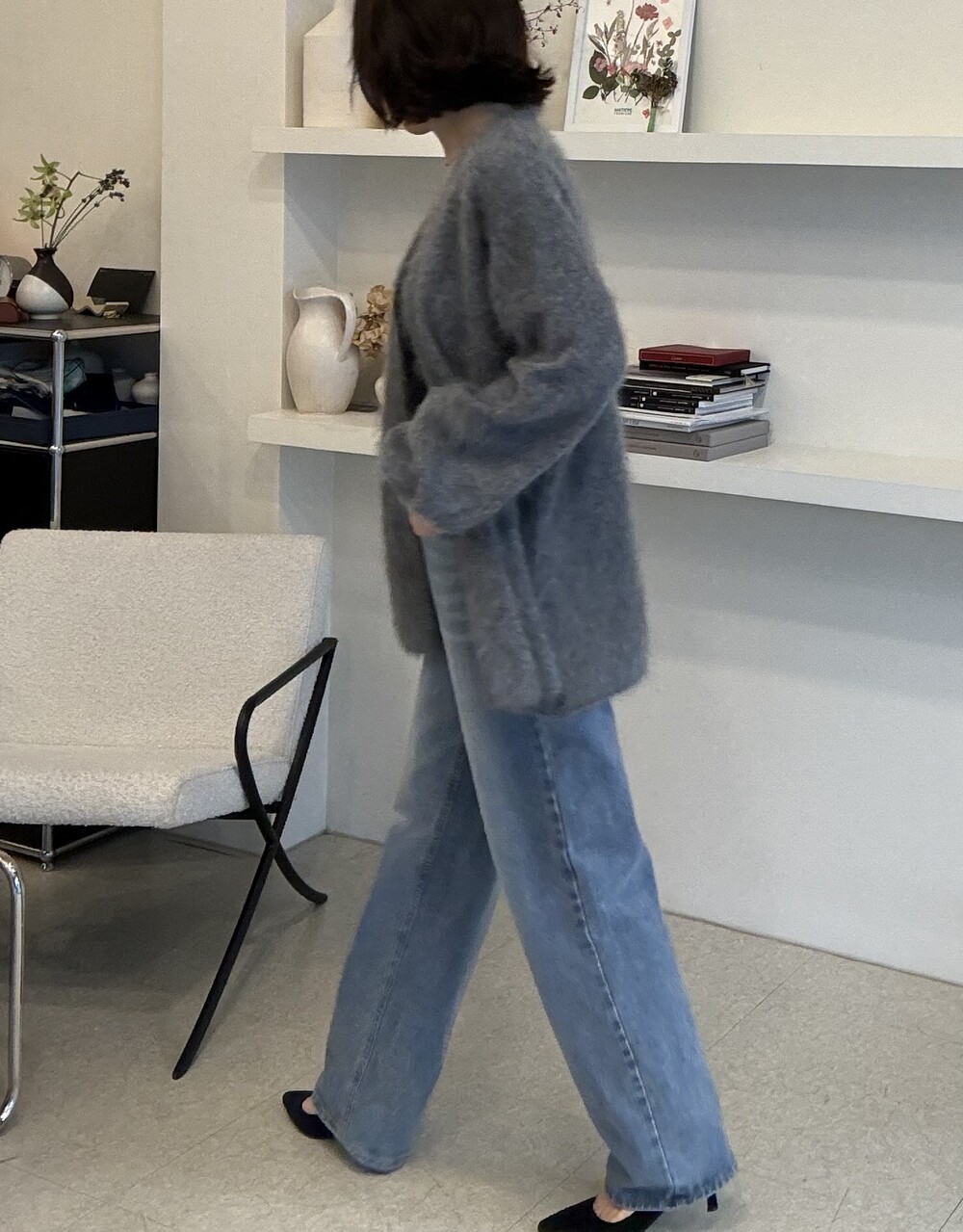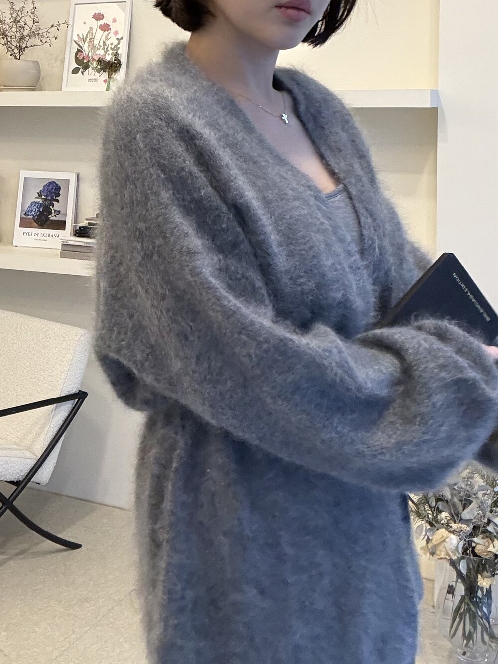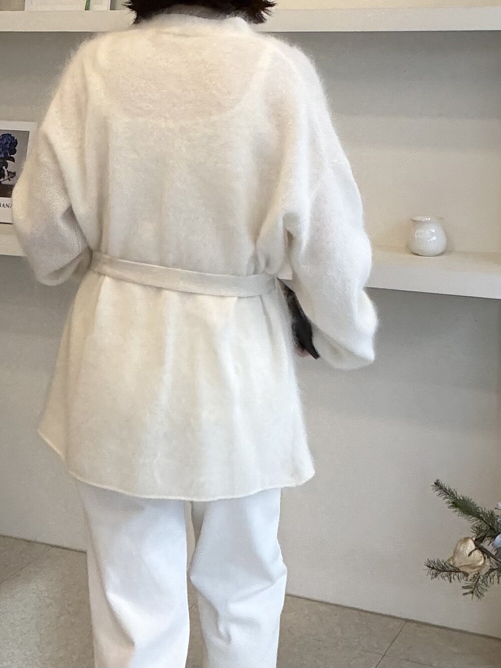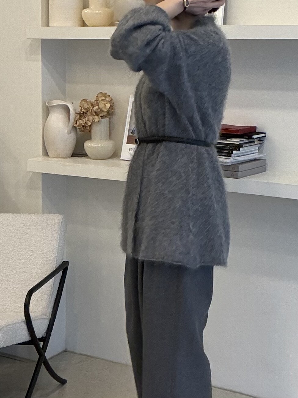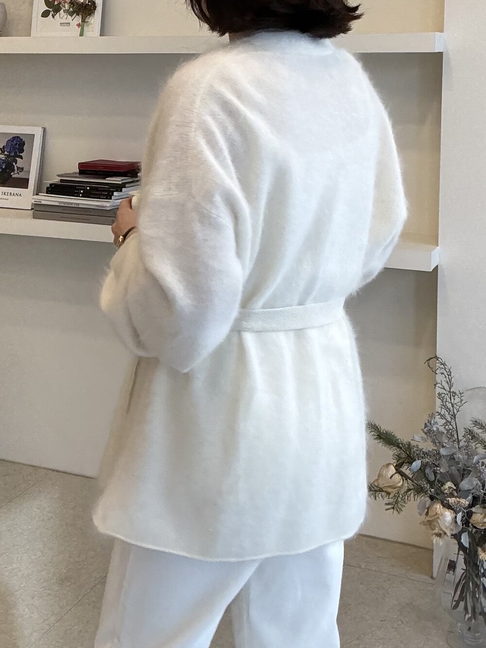 앙고라만큼의 털빠짐보다 최소화 될 수 있도록 울과 캐시미어를 섞어 기모와 모장을 최대 일으켜서 앙고라의 외관처럼 만든 소재입니다.