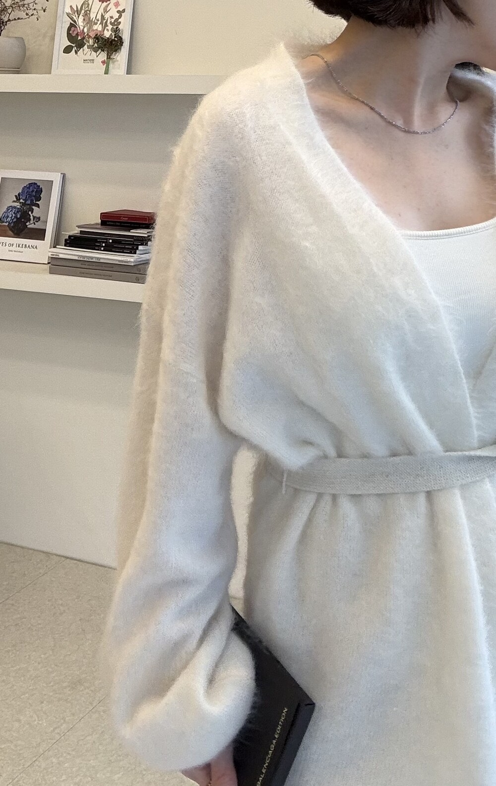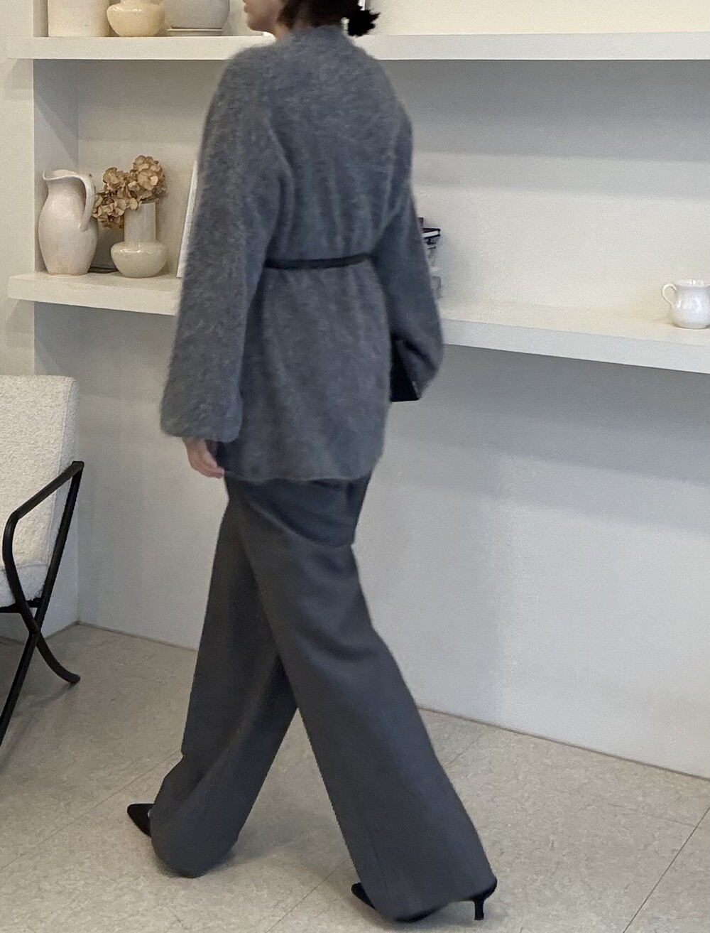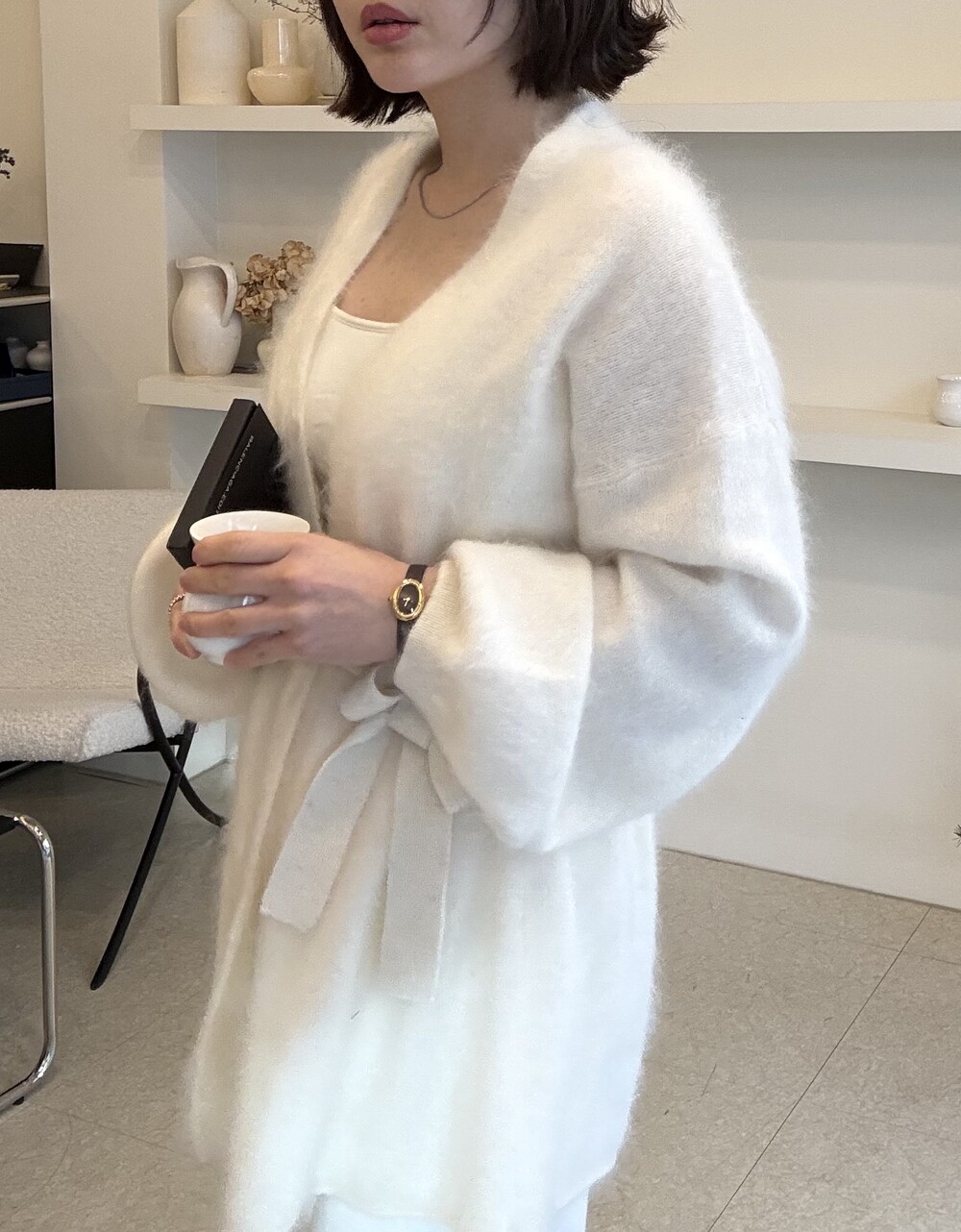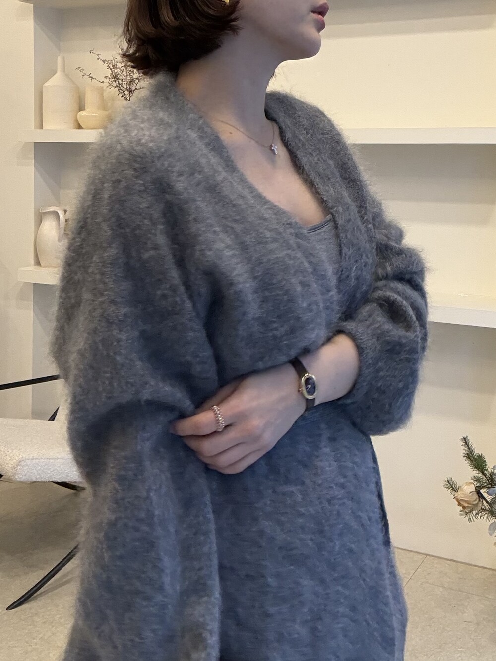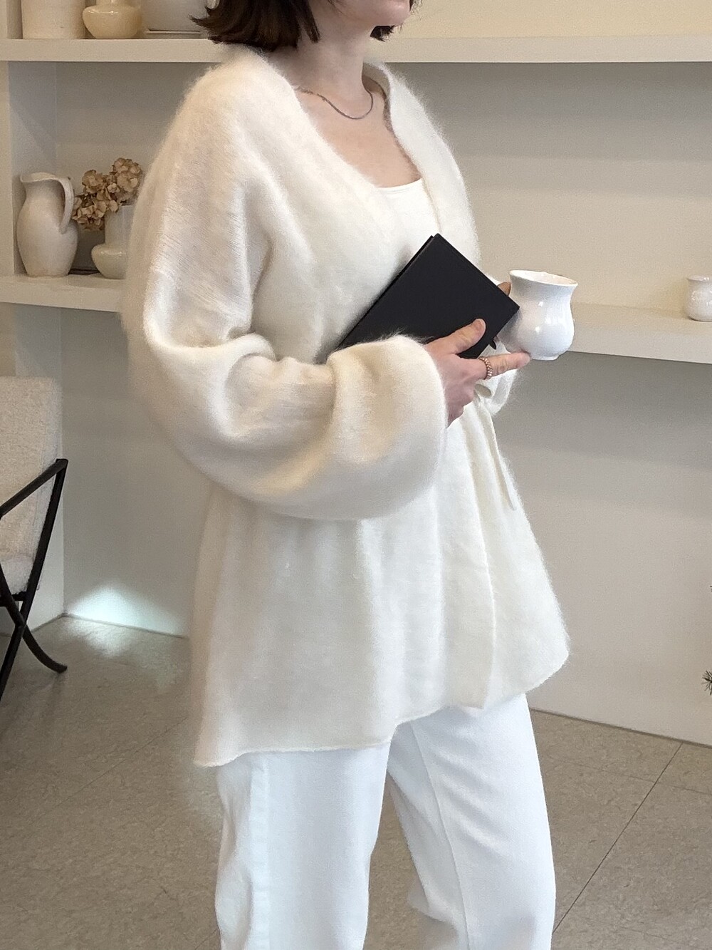앙고라만큼의 털빠짐보다 최소화 될 수 있도록 울과 캐시미어를 섞어 기모와 모장을 최대 일으켜서 앙고라의 외관처럼 만든 소재입니다.