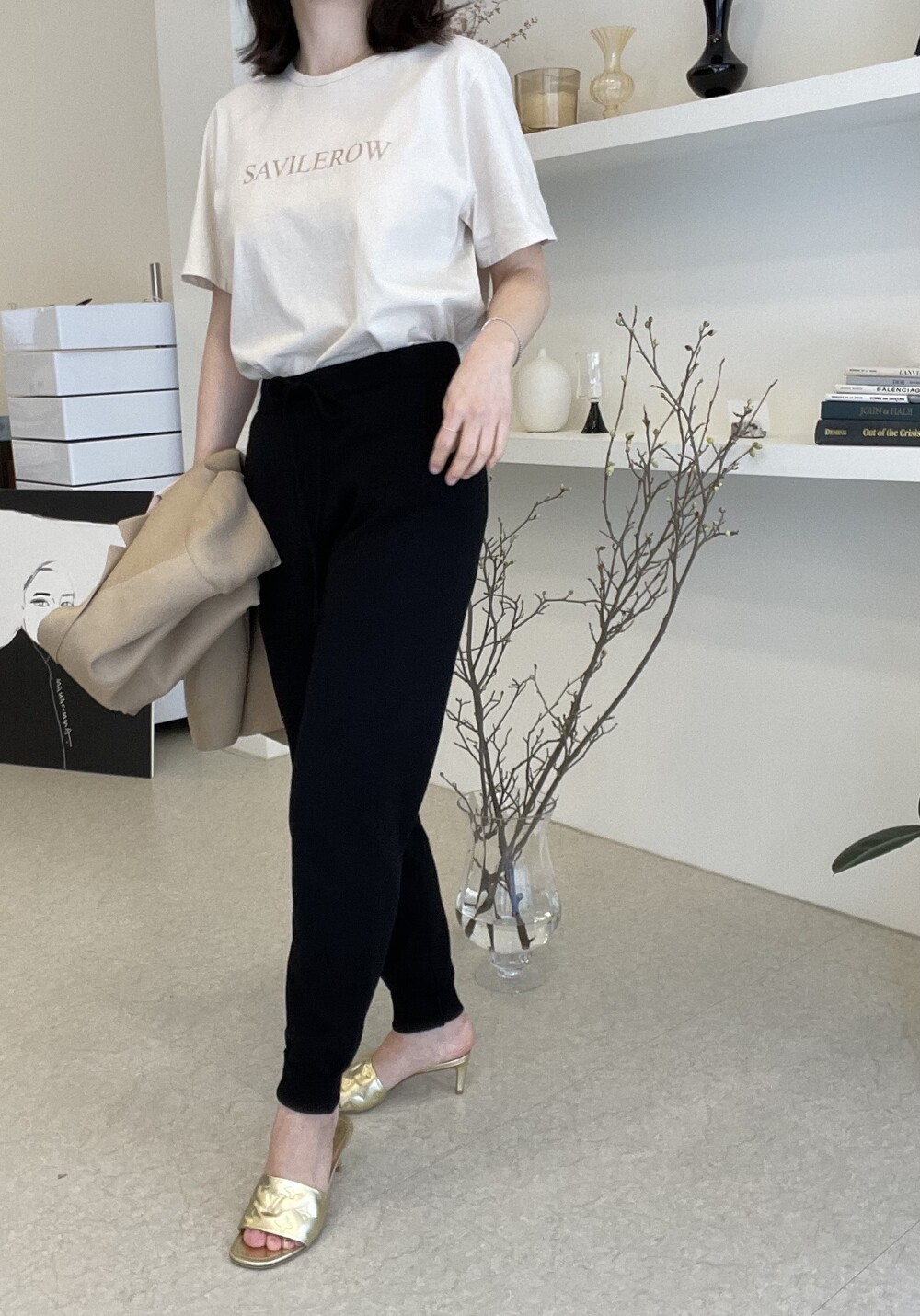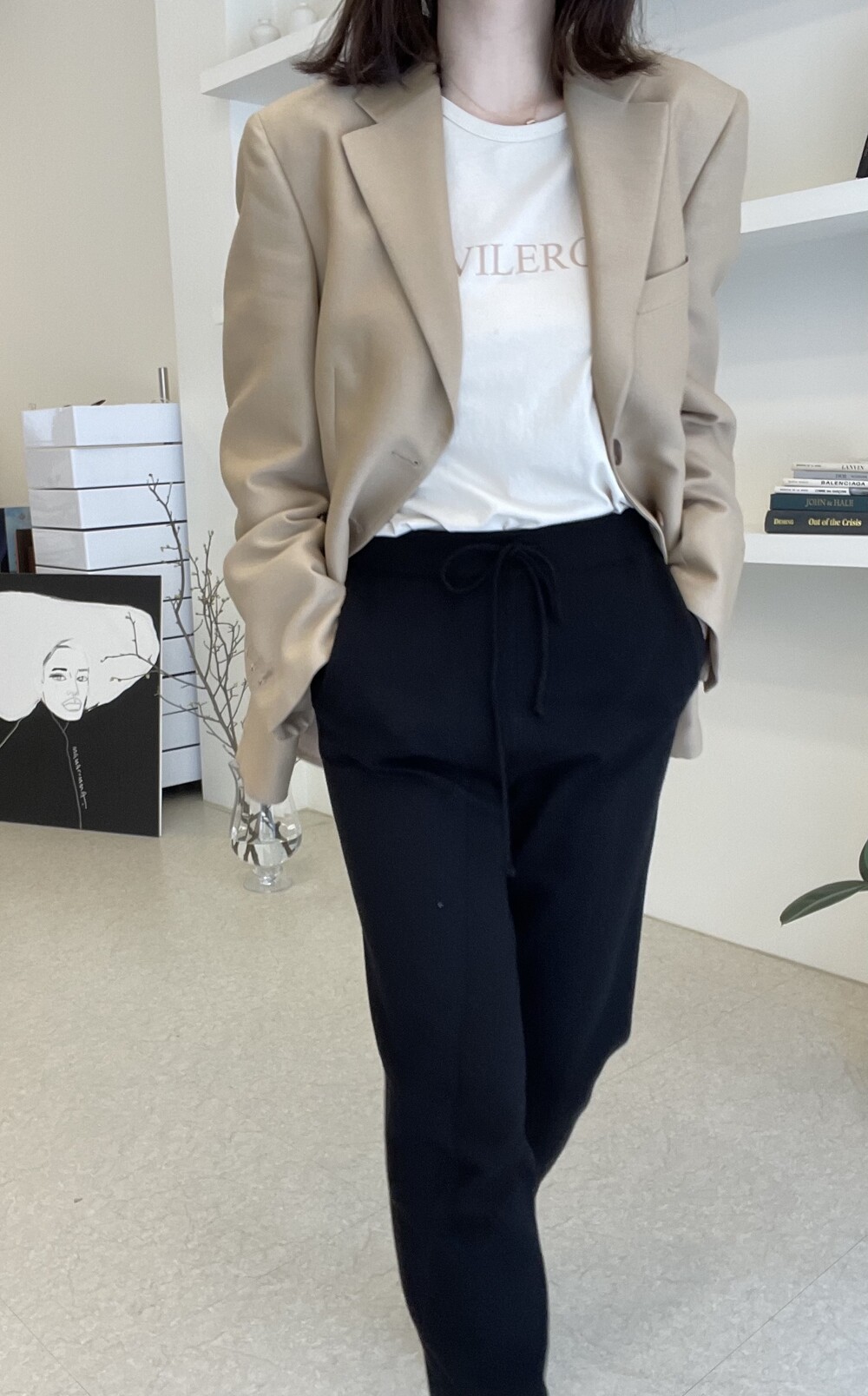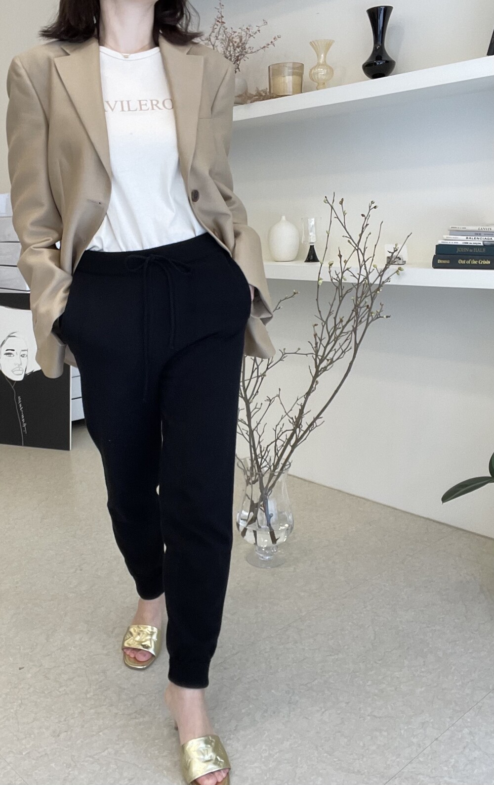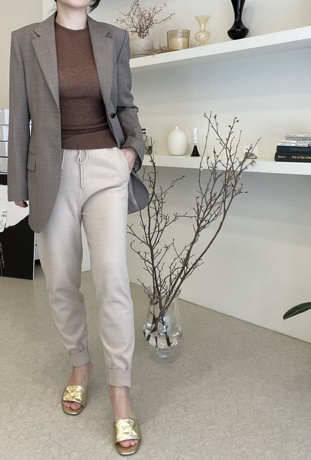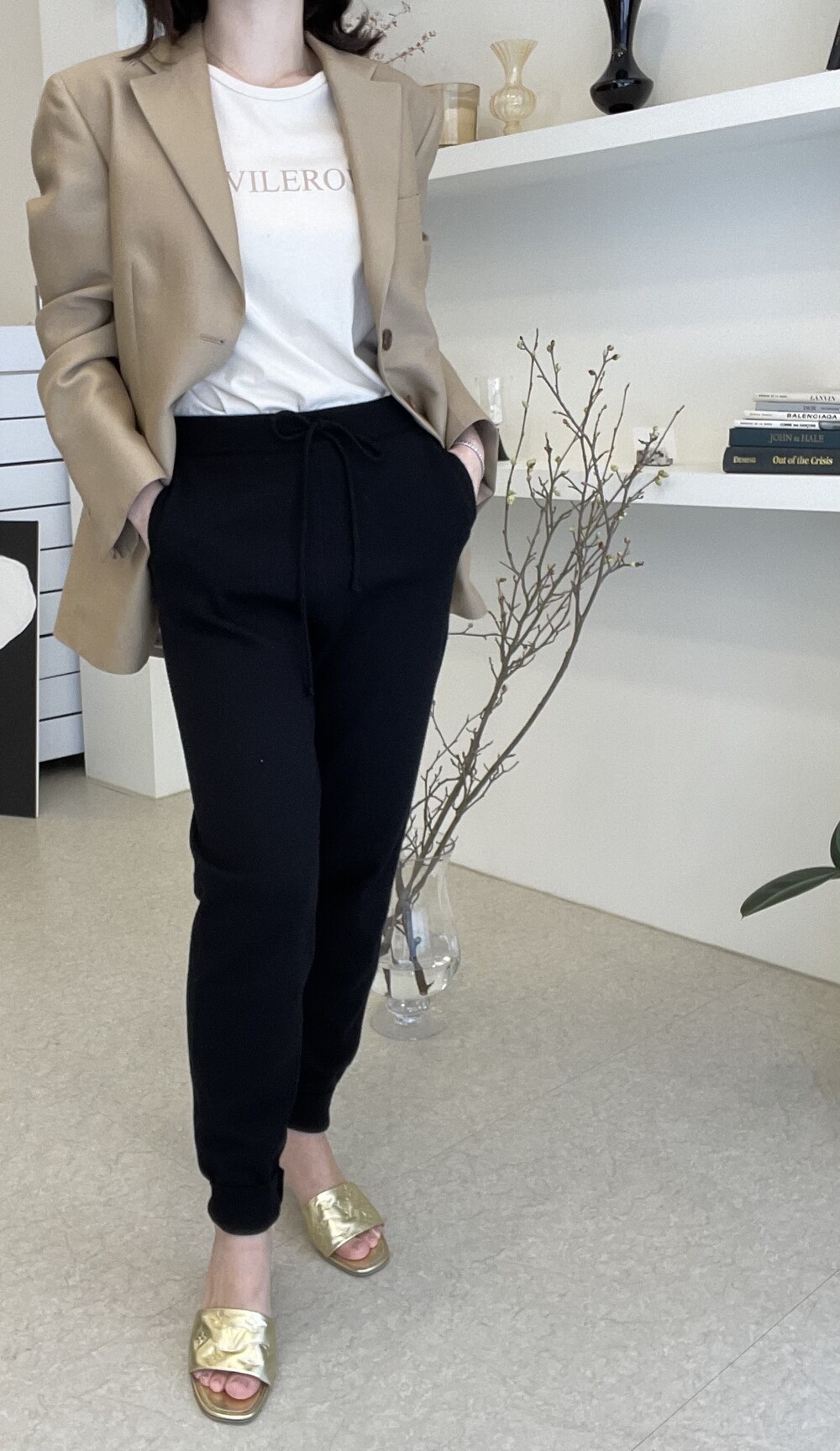 무엇보다 까끌거림 없이 몸을 조이지 않는 느낌으로 편하게 스타일 내기에 좋아서 어떤 아이템과도 손색없이 입어질 니트팬츠입니다.