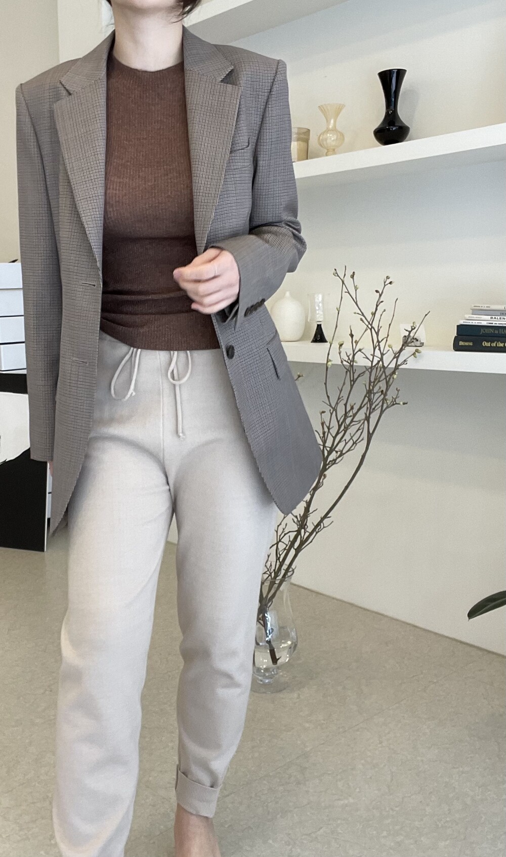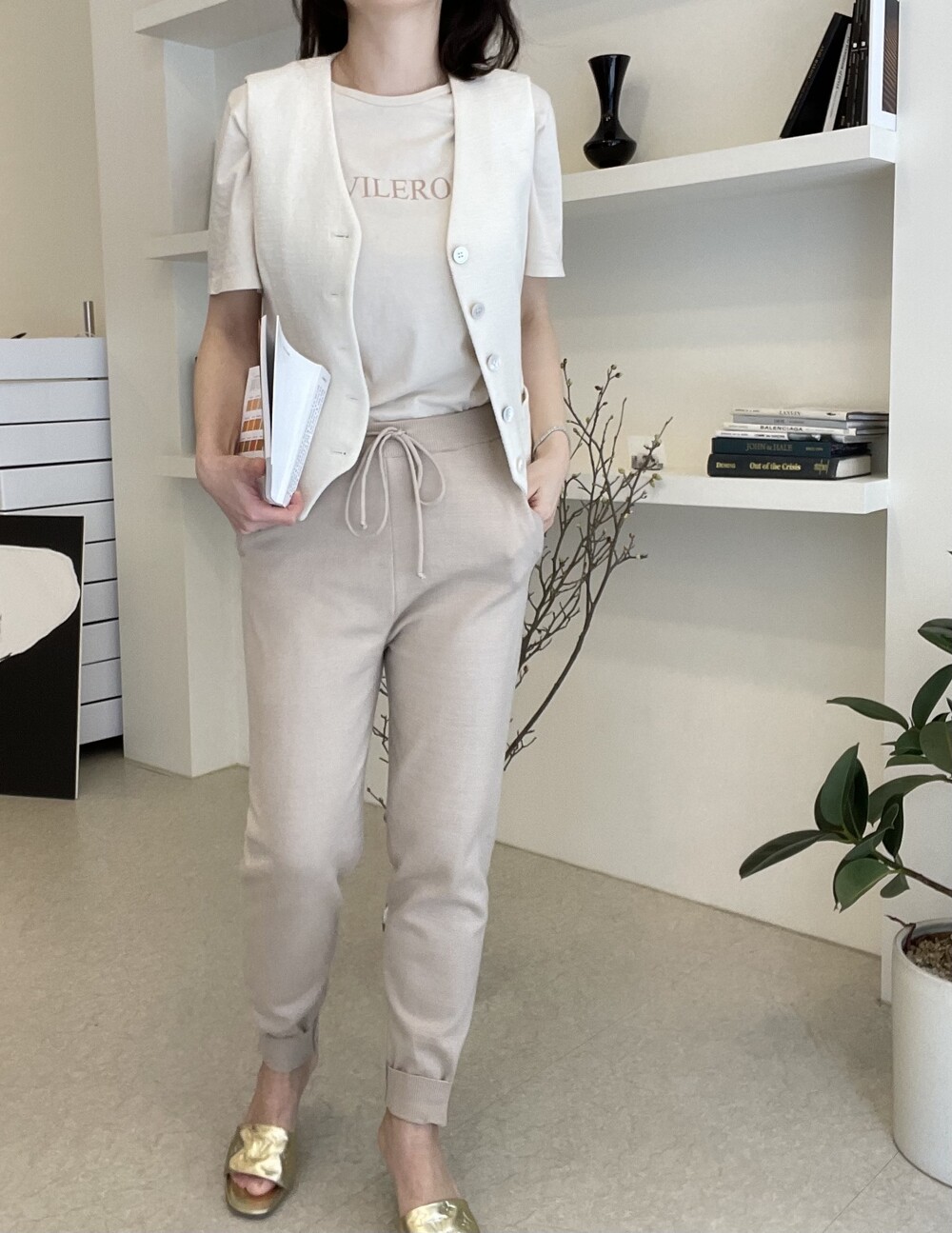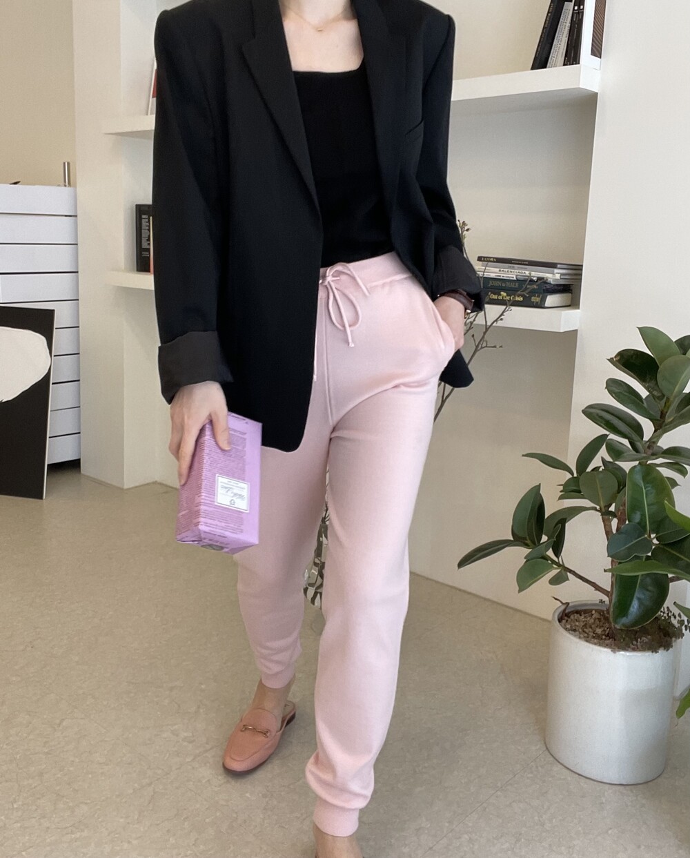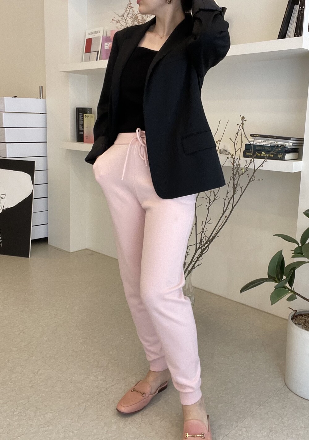 무엇보다 까끌거림 없이 몸을 조이지 않는 느낌으로 편하게 스타일 내기에 좋아서 어떤 아이템과도 손색없이 입어질 니트팬츠입니다.