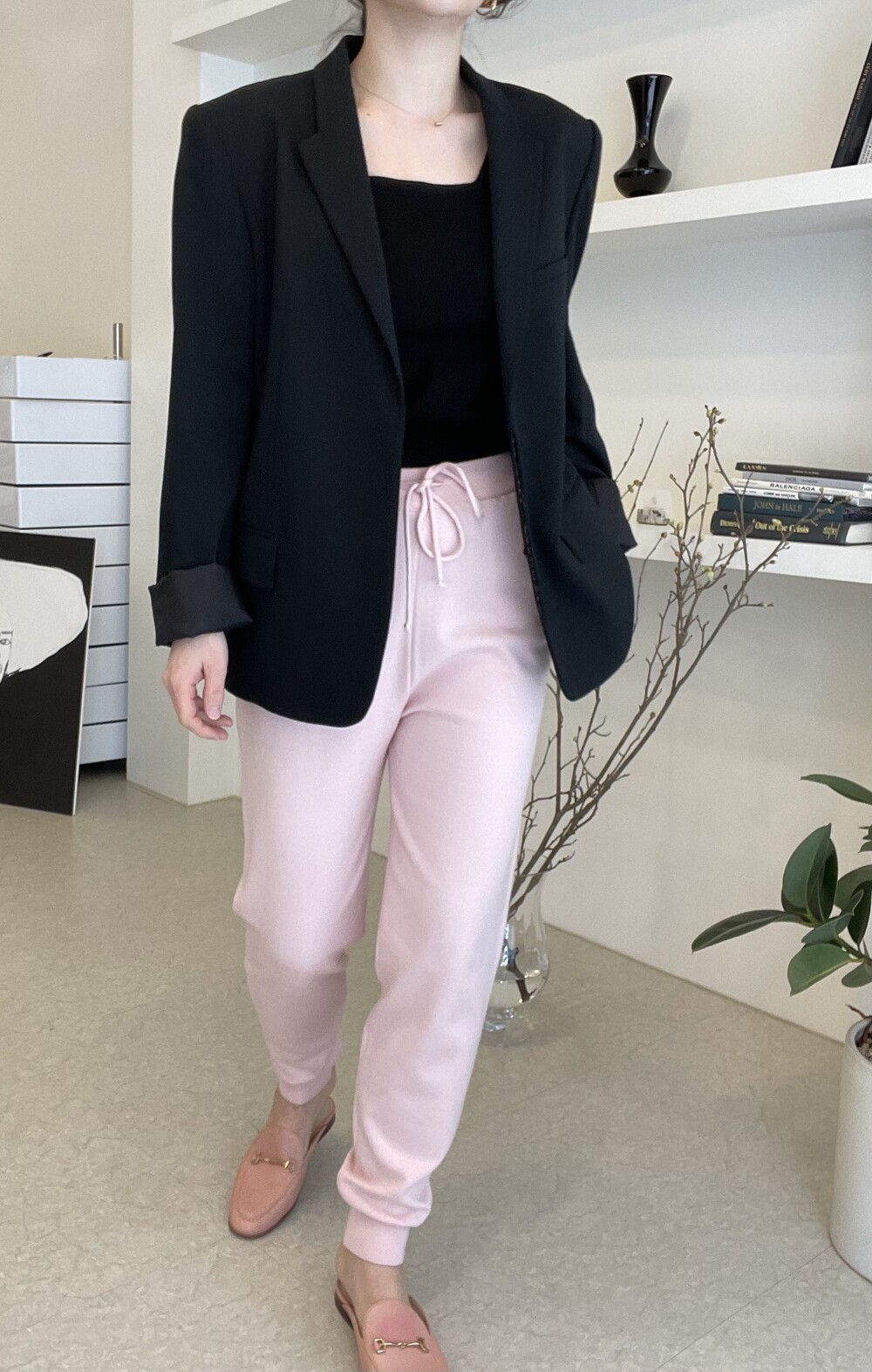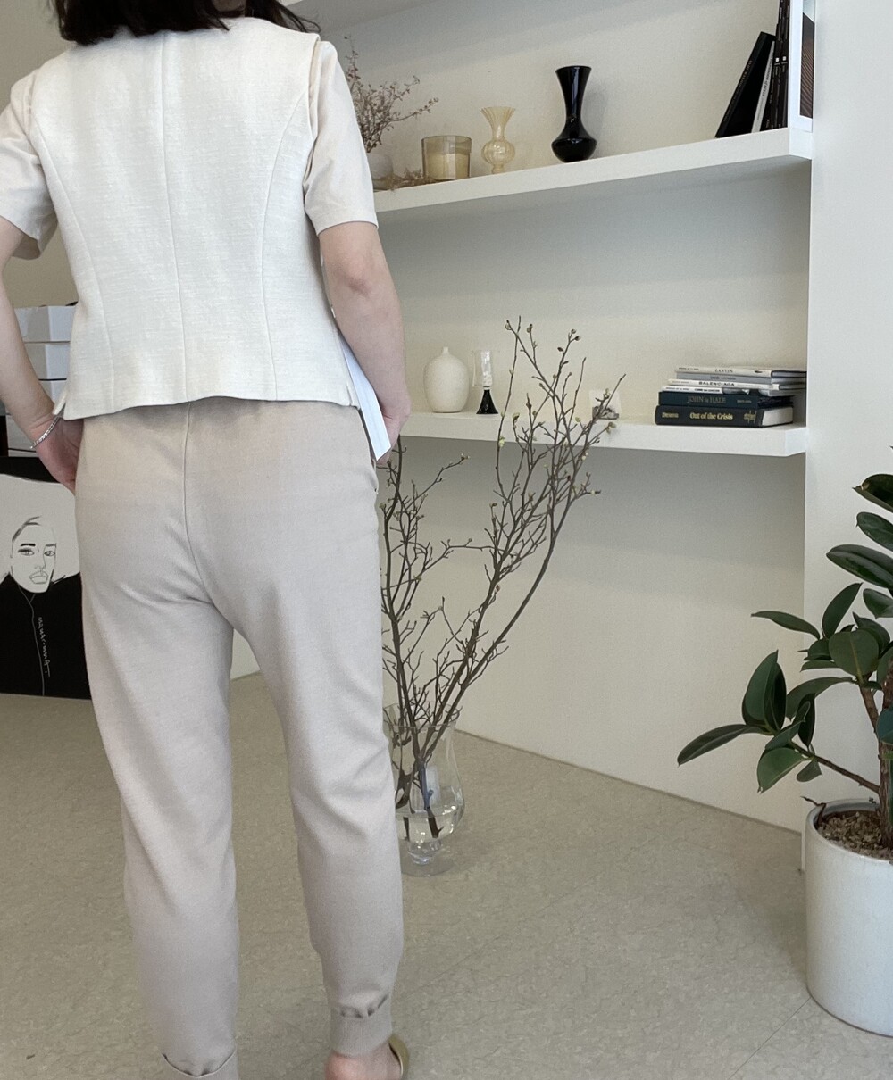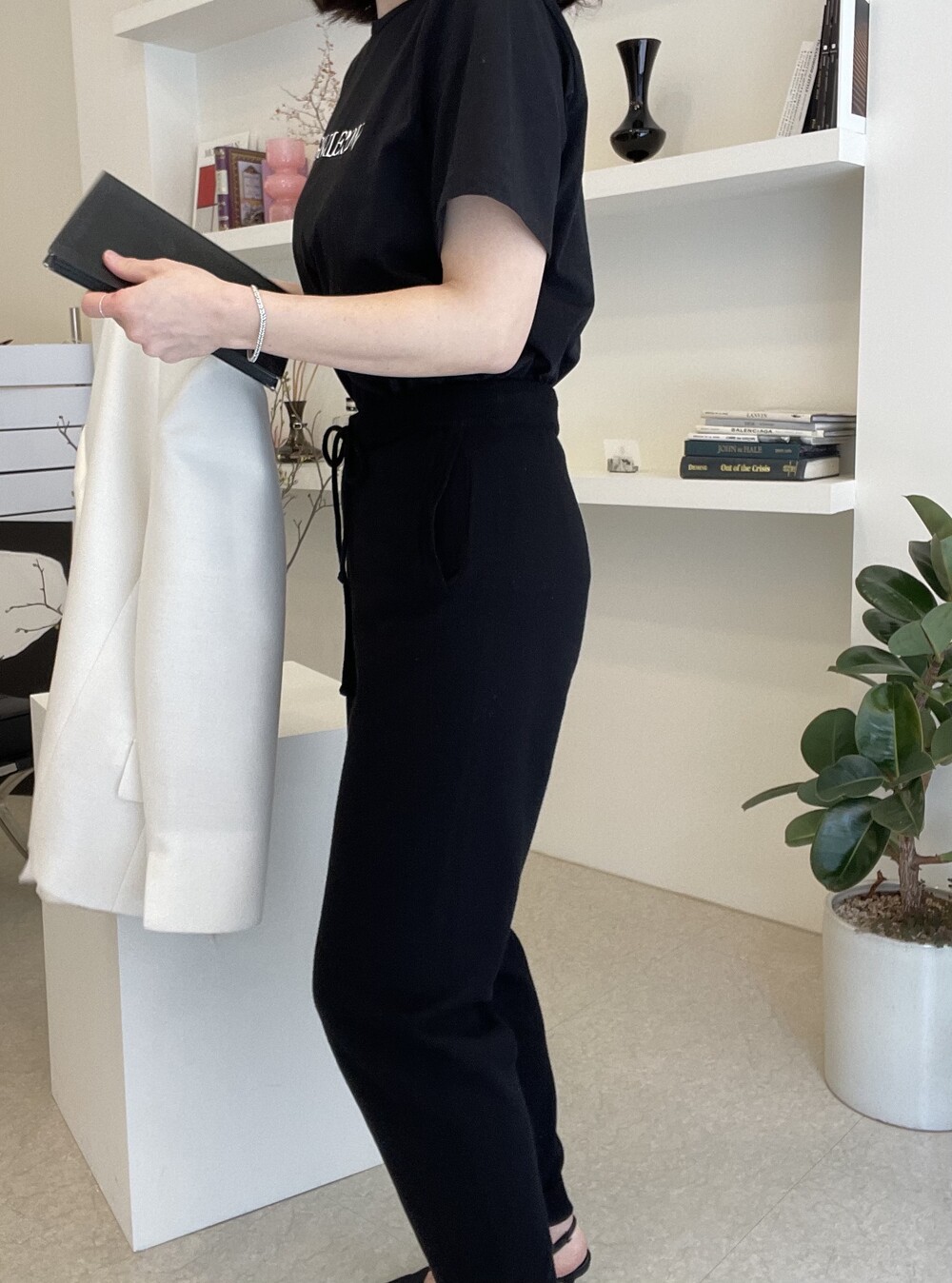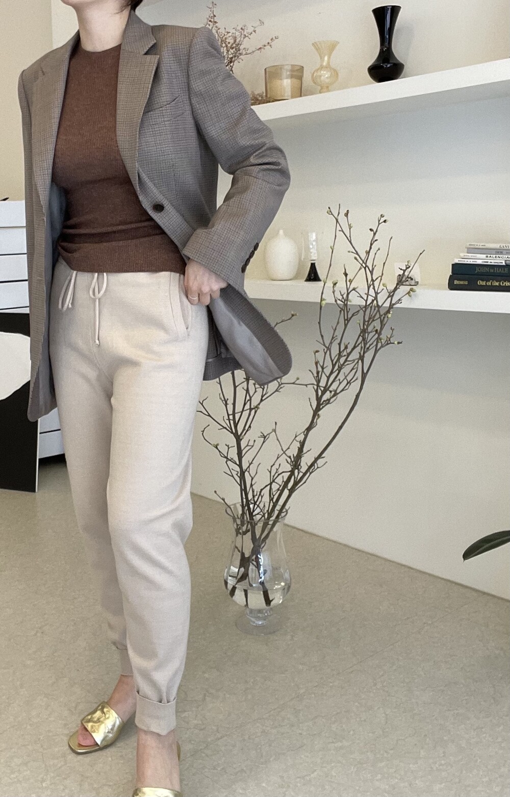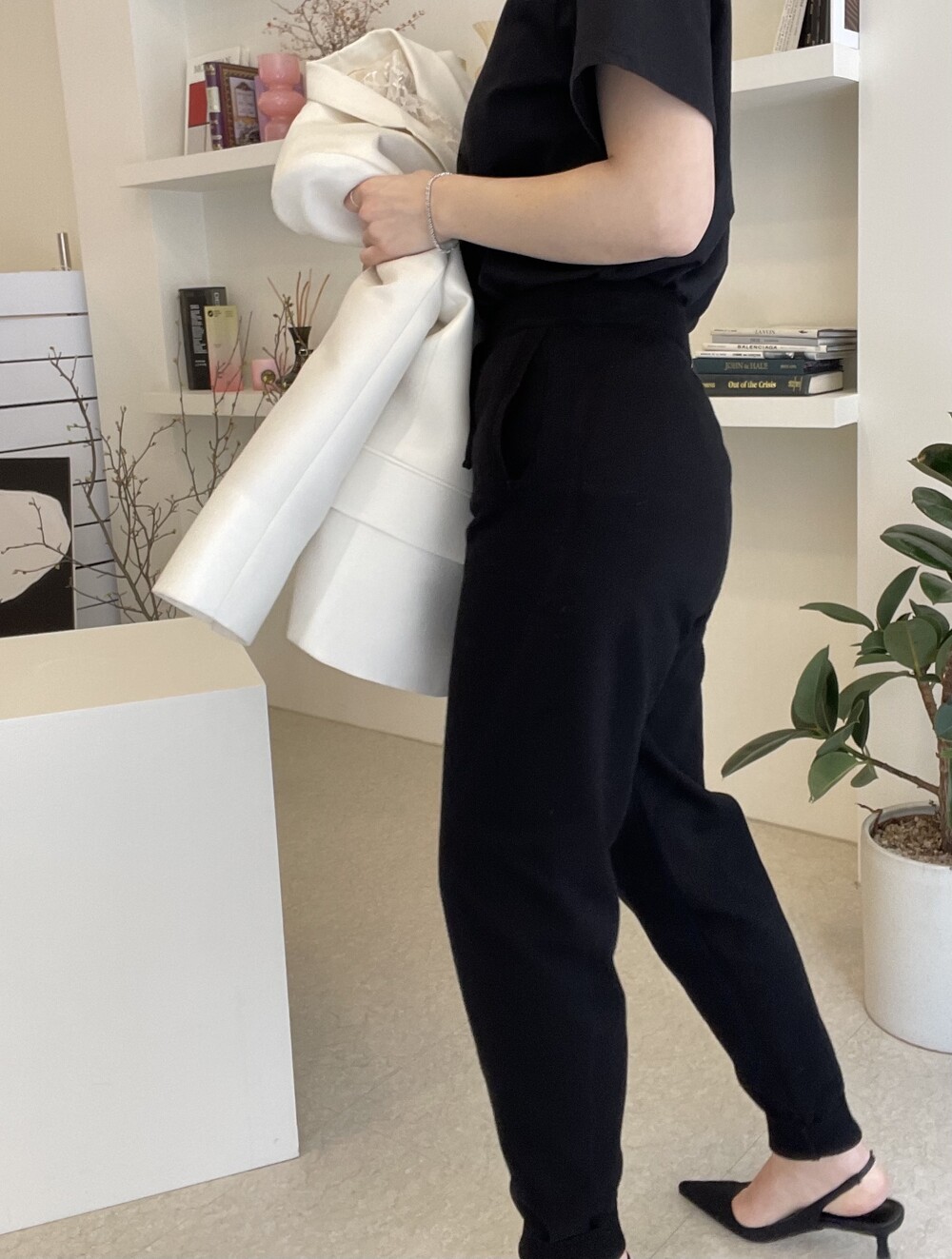 무엇보다 까끌거림 없이 몸을 조이지 않는 느낌으로 편하게 스타일 내기에 좋아서 어떤 아이템과도 손색없이 입어질 니트팬츠입니다.