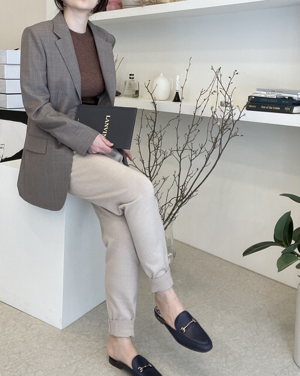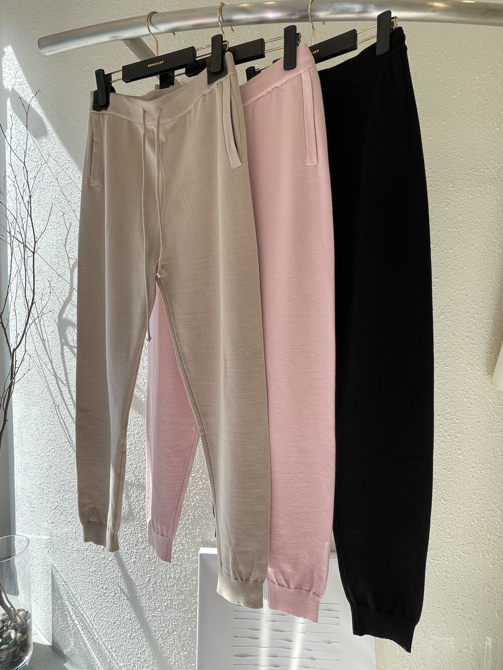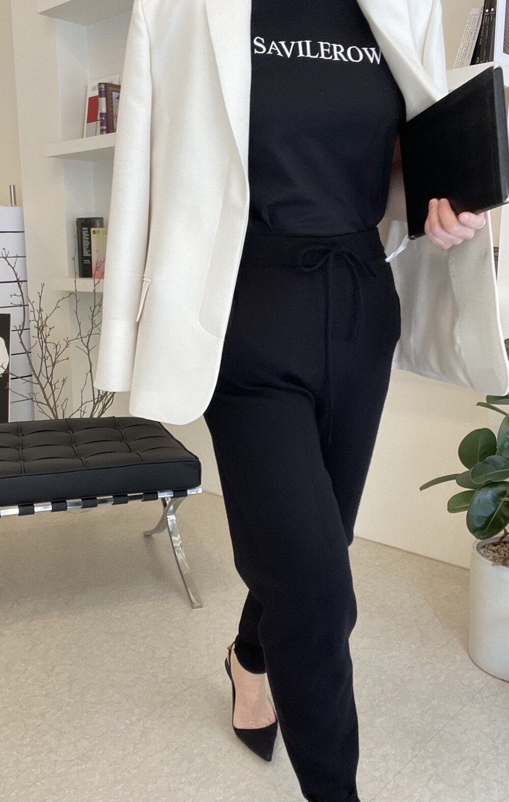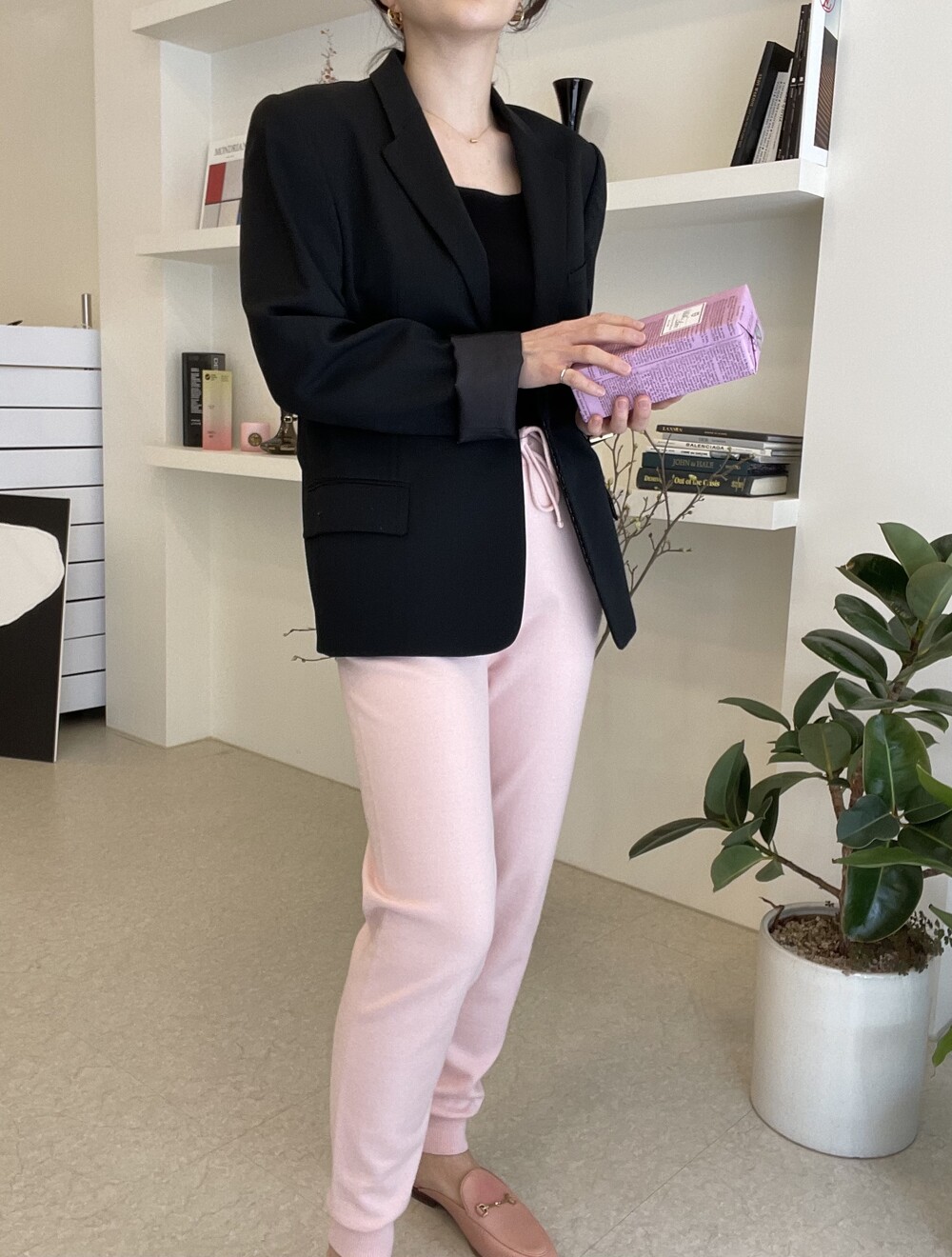 무엇보다 까끌거림 없이 몸을 조이지 않는 느낌으로 편하게 스타일 내기에 좋아서 어떤 아이템과도 손색없이 입어질 니트팬츠입니다.
