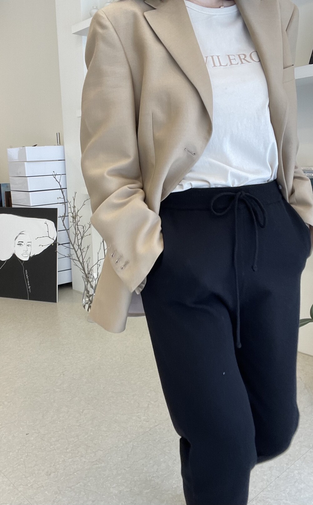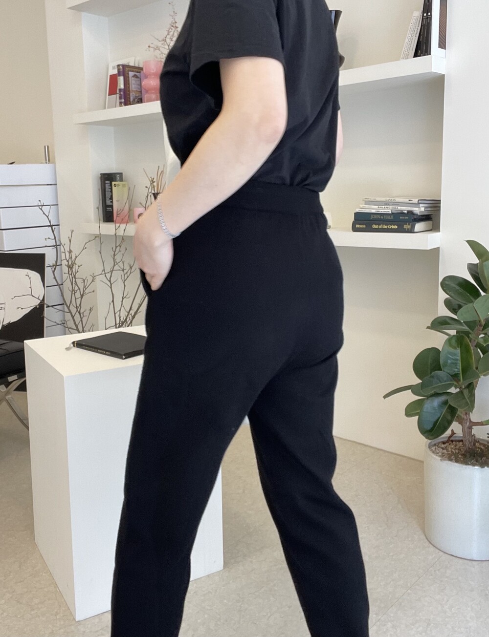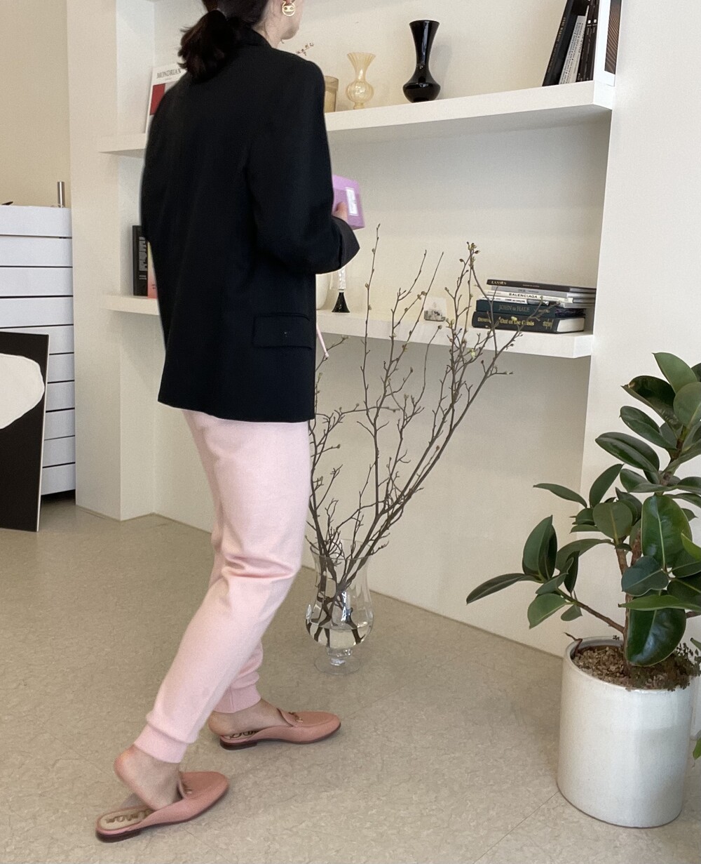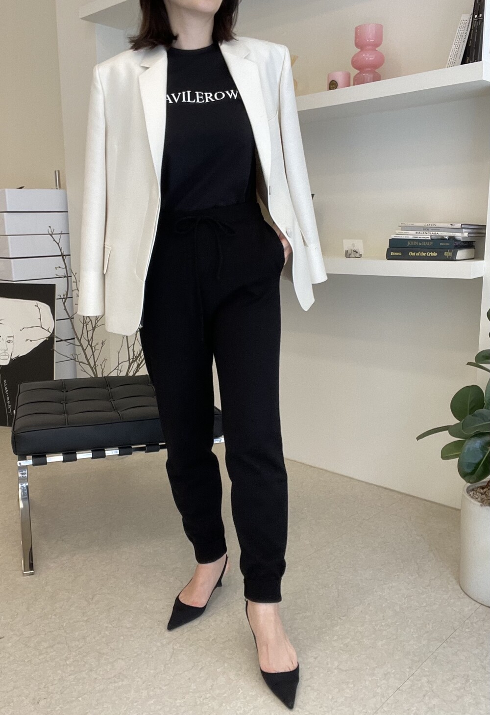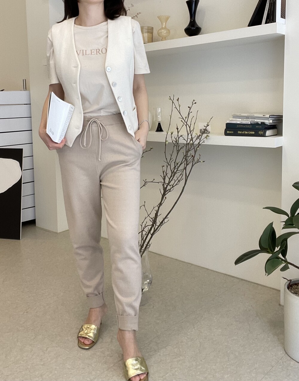 무엇보다 까끌거림 없이 몸을 조이지 않는 느낌으로 편하게 스타일 내기에 좋아서 어떤 아이템과도 손색없이 입어질 니트팬츠입니다.