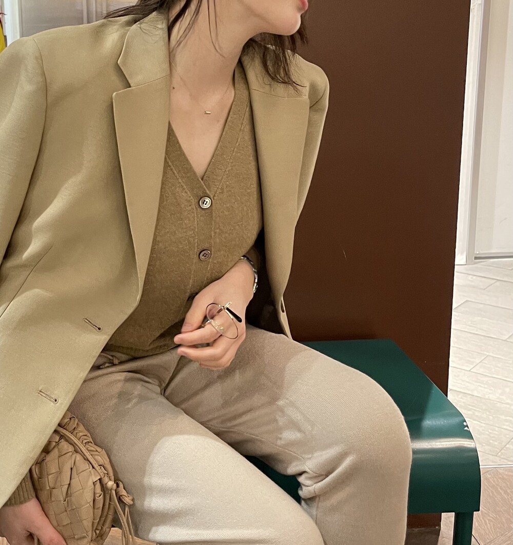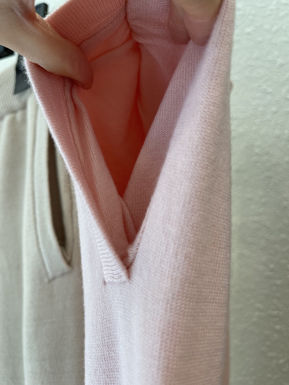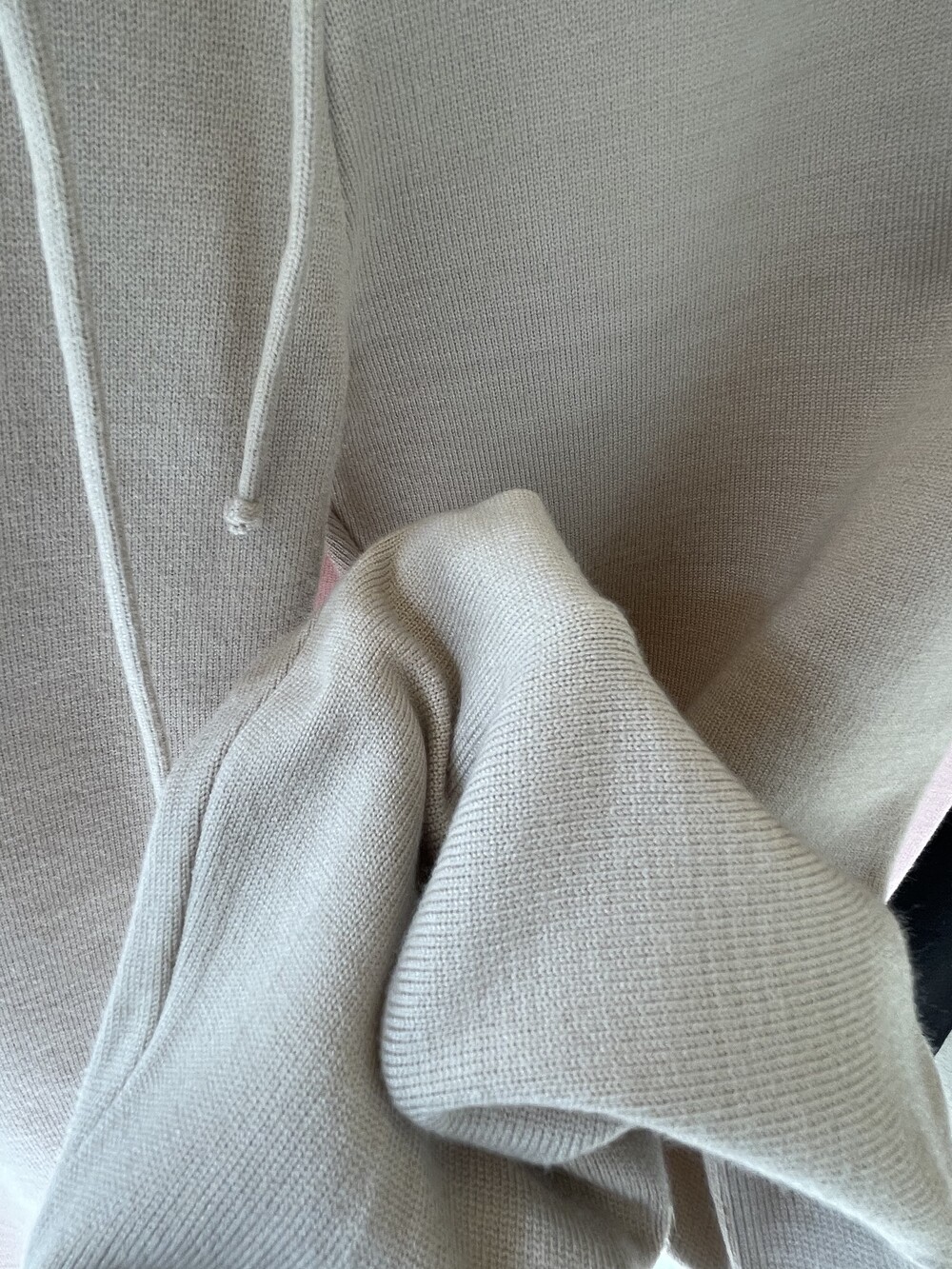 옆 주머니는 소지품을 넣을 정도로 깊은 편은 아니지만 니트에서 주머니 만드는 사양은 고급 봉제이기 때문에 디테일 포인트로 활용해주세요.