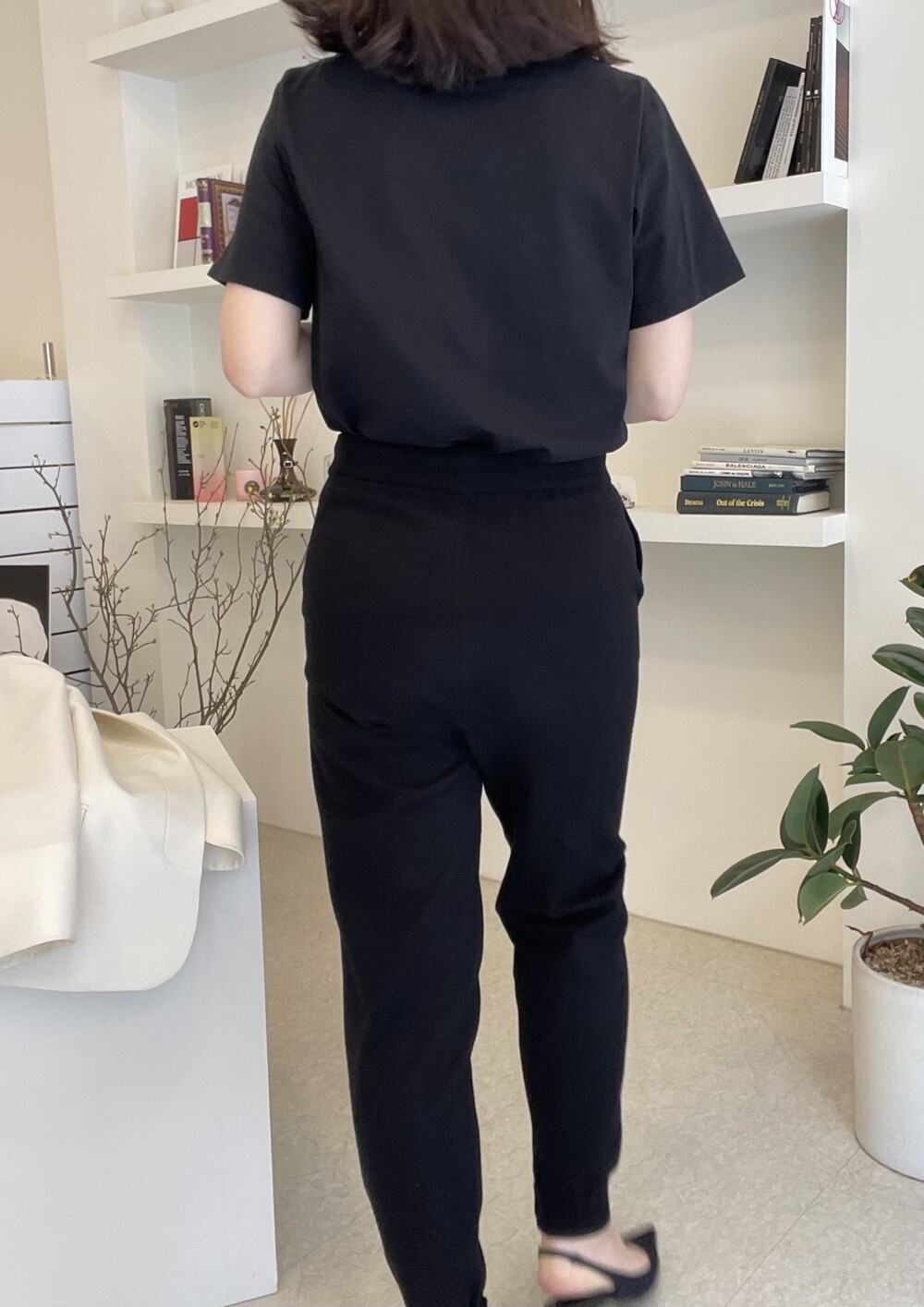특히 착용자는 하체가 통통한 편이고 종아리가 발달된 체형임에도 불구하고 종아리 부분이 타이트 하지 않게 떨어지도록 만들어졌습니다.
