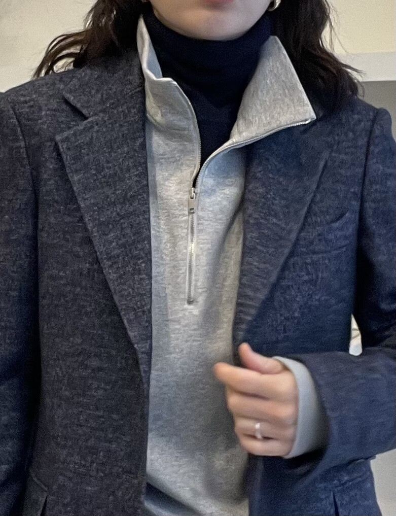 져지 소재의 특성상 좋은 소재가 아니면 아우터로 만들기가 어려운 소재입니다.