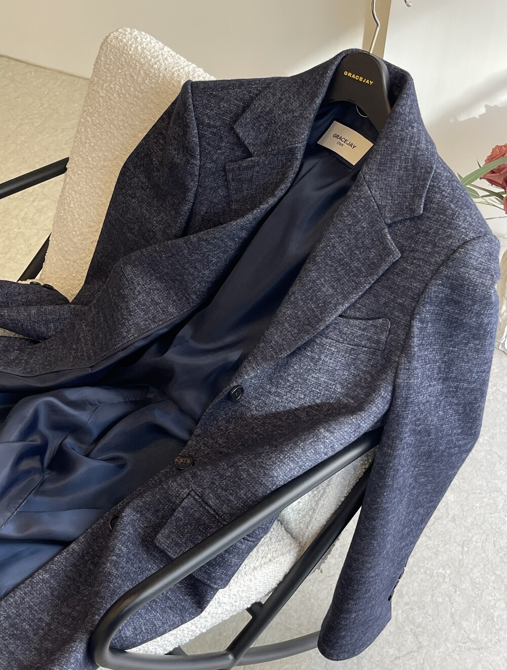 남성의 전유물로 여겨진 체스터필드 코트의 심플함과 아우라를 담은 그레이스제이만의 체스터 코트는 어깨에서 소매로 이어지는 편안한 암홀 라인과 군더더기 없이 잘 떨어지는 실루엣을 경험해 보실 수 있습니다. 여성의 신체 조건에 맞춰 개발 되어 출시후 지금까지 꾸준한 판매와 개인 커스텀 제품으로 사랑받고 있는 제품입니다.