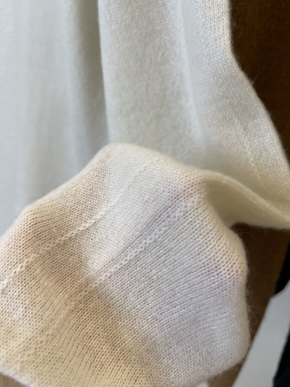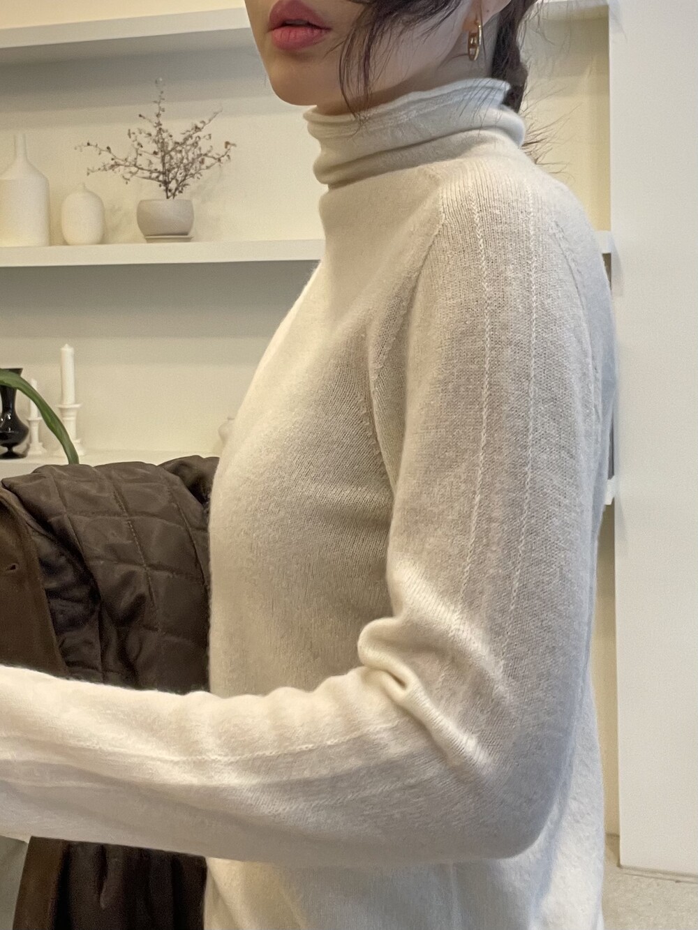 때문에 실크 터치 가공이 추가되어 피부에 닿는 감촉이 매우 부드럽고 가벼워서 기존의 캐시미어 100 % 니트보다 더 촉촉하고 부드러운 촉감을 느끼실 수 있습니다.