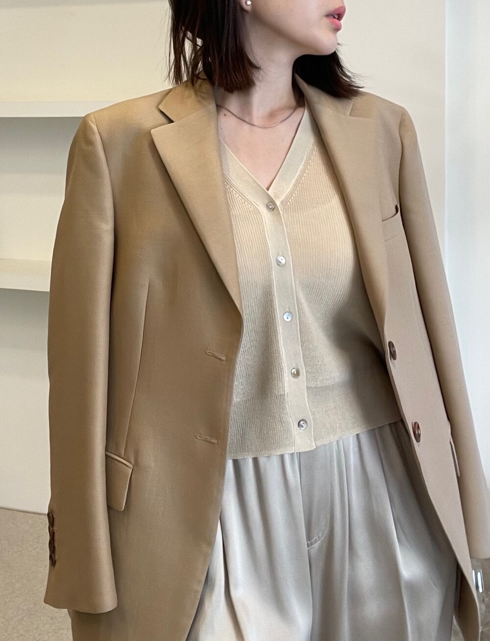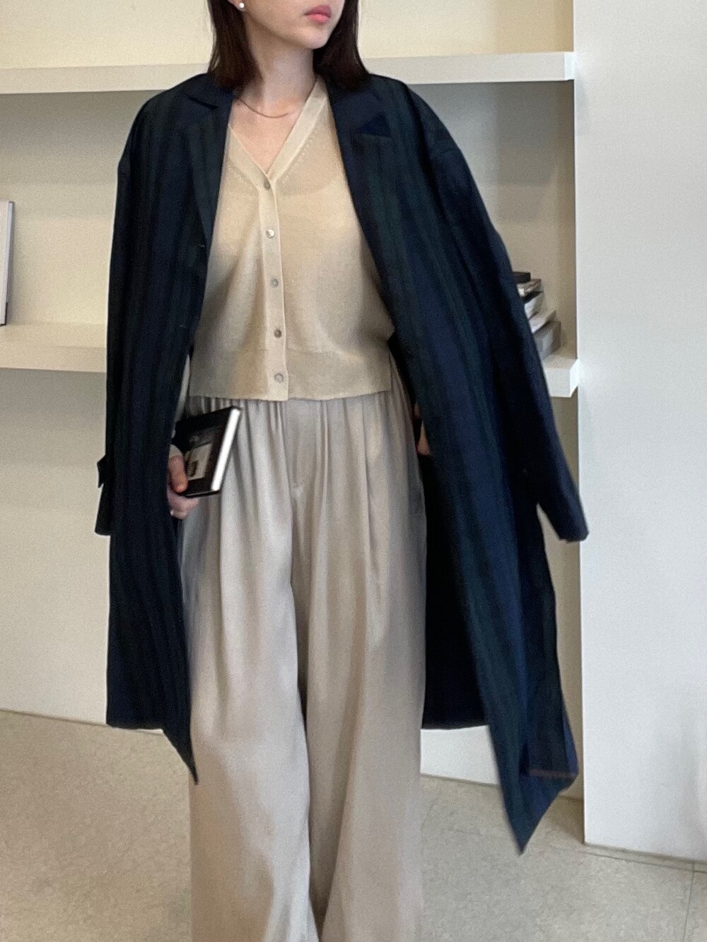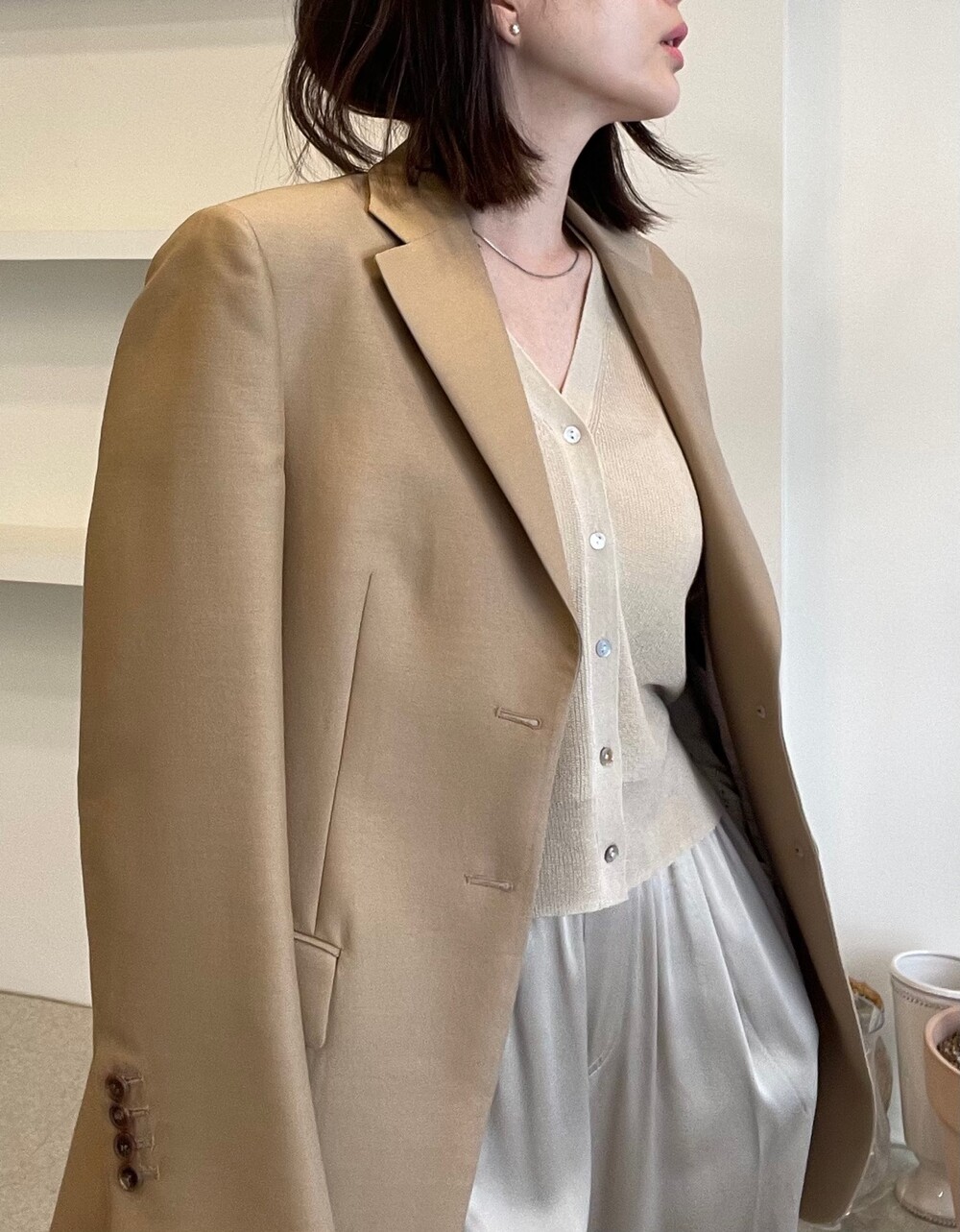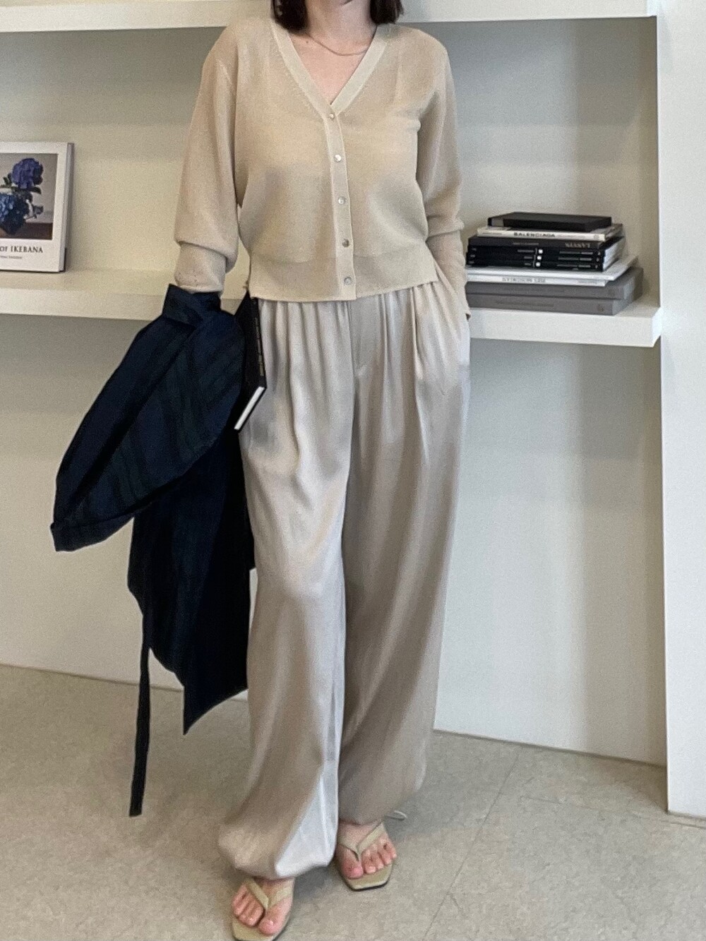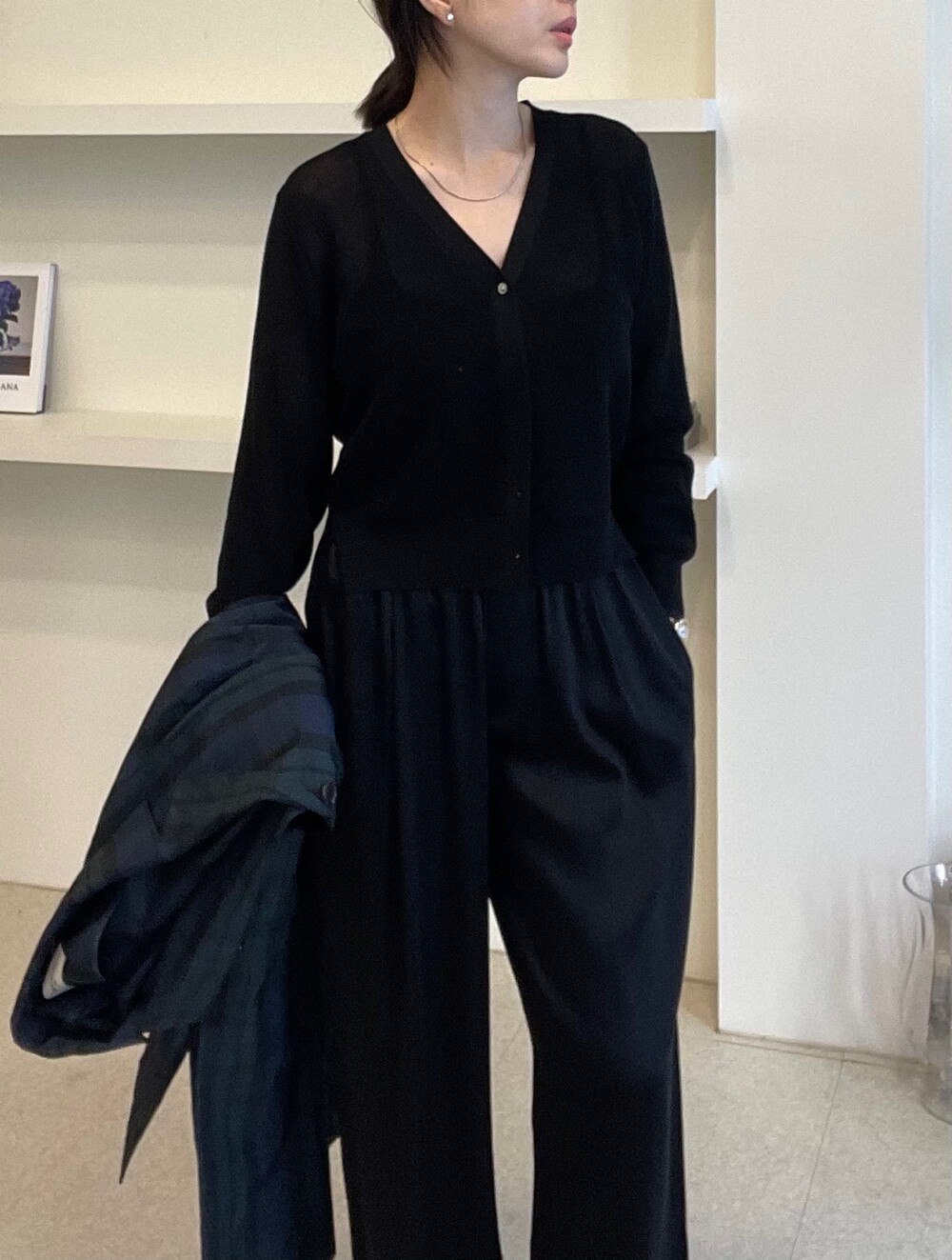 파임이 깊지 않은 이너용의 긴소매 가디건으로 자켓속에 레이어드 하시기 좋은 품과 많이 짧지 않은 길이감 포인트인 제품입니다. 비침이 있는 소재감이며, 썸머울/ 아크릴, 폴리 혼방으로 부드럽고 청량한 터치감입니다.