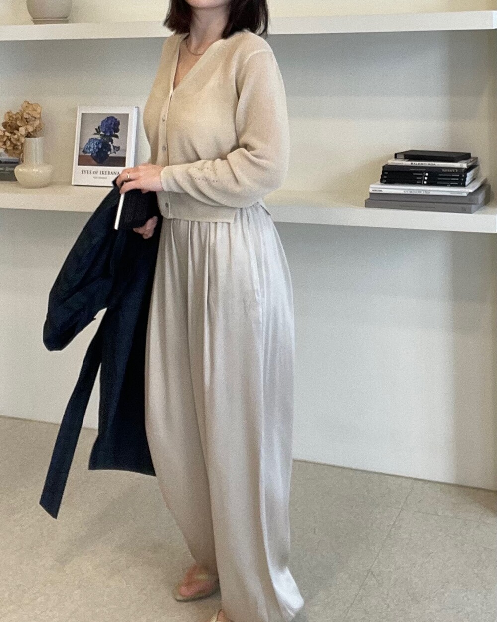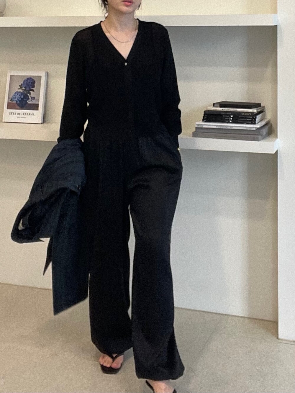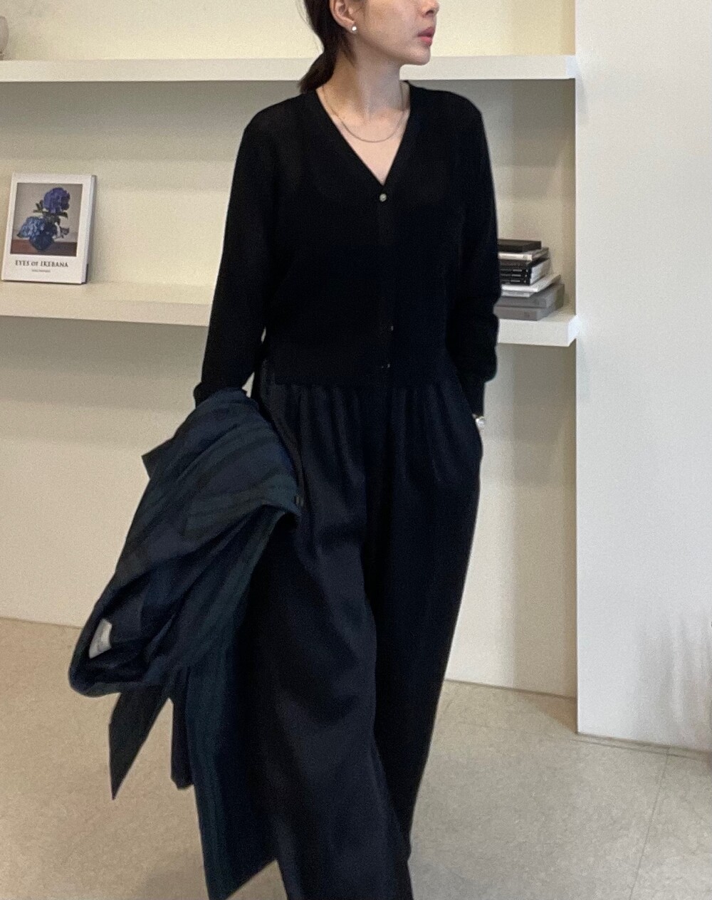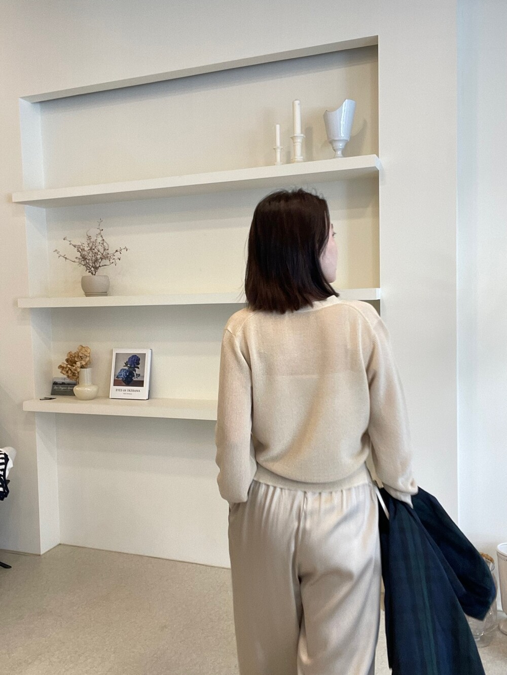 파임이 깊지 않은 이너용의 긴소매 가디건으로 자켓속에 레이어드 하시기 좋은 품과 많이 짧지 않은 길이감 포인트인 제품입니다. 비침이 있는 소재감이며, 썸머울/ 아크릴, 폴리 혼방으로 부드럽고 청량한 터치감입니다.