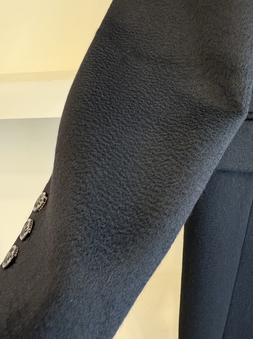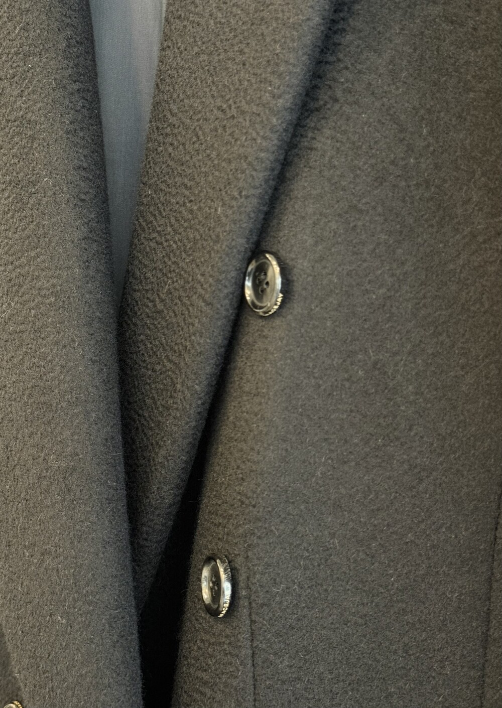 테일러드 코트의 쉐입을 힘있게 잡아주면서도 무겁지 않게 즐기기위해 울50% 캐시미어50% 의 소재로 선택 되었습니다. 탄탄한 질감이지만 캐시미어의 함량이 높은 편이라서 무엇보다 부드럽고 가볍게 즐기시기에 좋습니다.