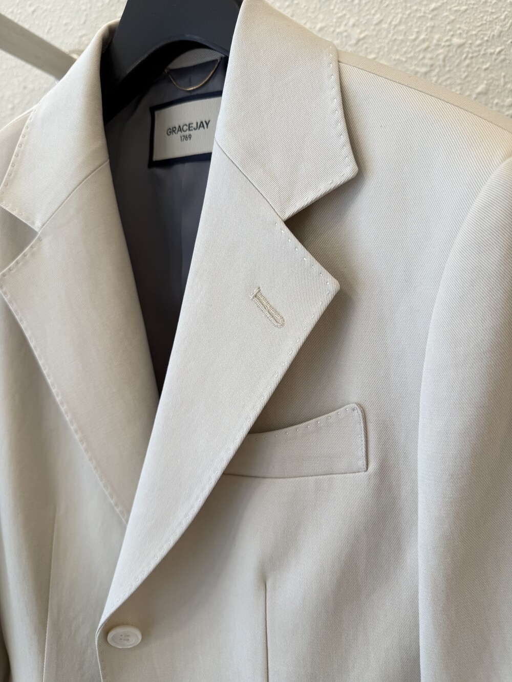 GRACEJAY Comment-경직되지 않은 정석적인 테일러링을 바탕으로 만들어 갑니다. 안정된 패턴이 좋은 소재들과 만나 특별함을 느낄 수 있는 그레이스제이를 통해 잘 만들어진 수트 한벌이 주는 위력을 경험해 보시길 바랍니다.