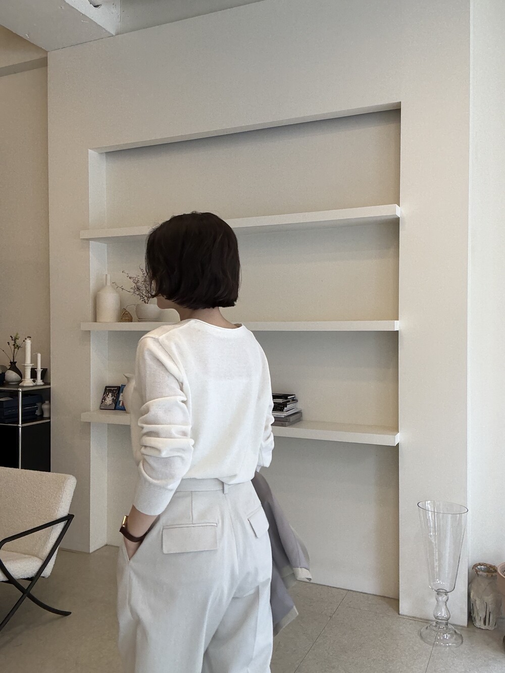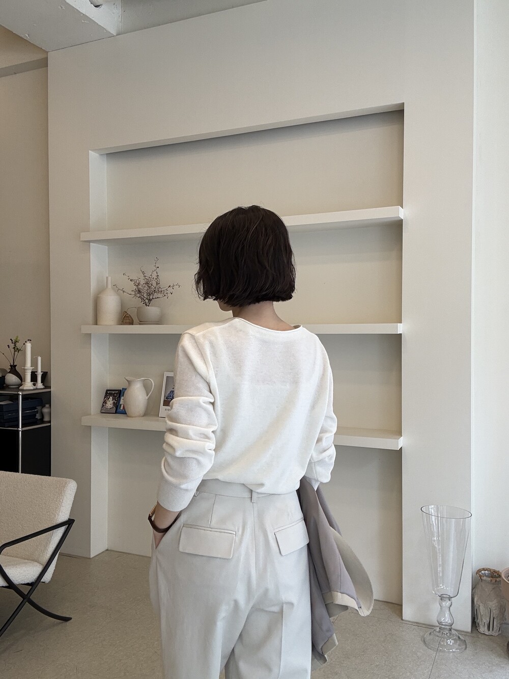 그레이스제이는 키에 비해 팔길이가 짧은 편으로 옷의 소매길이가 다소 길어보입니다.