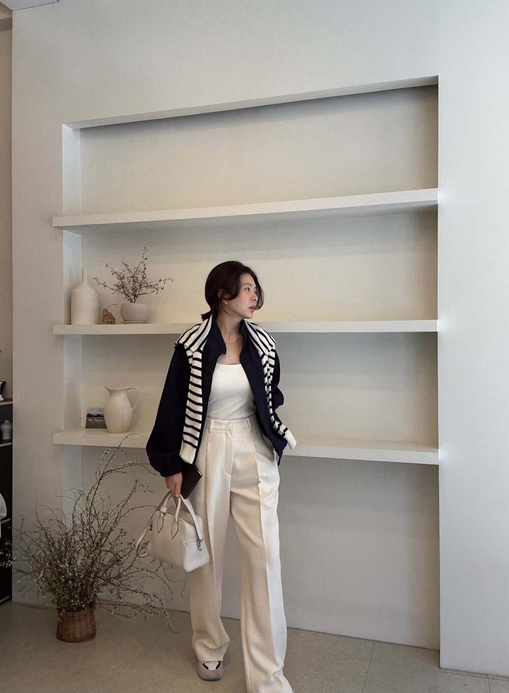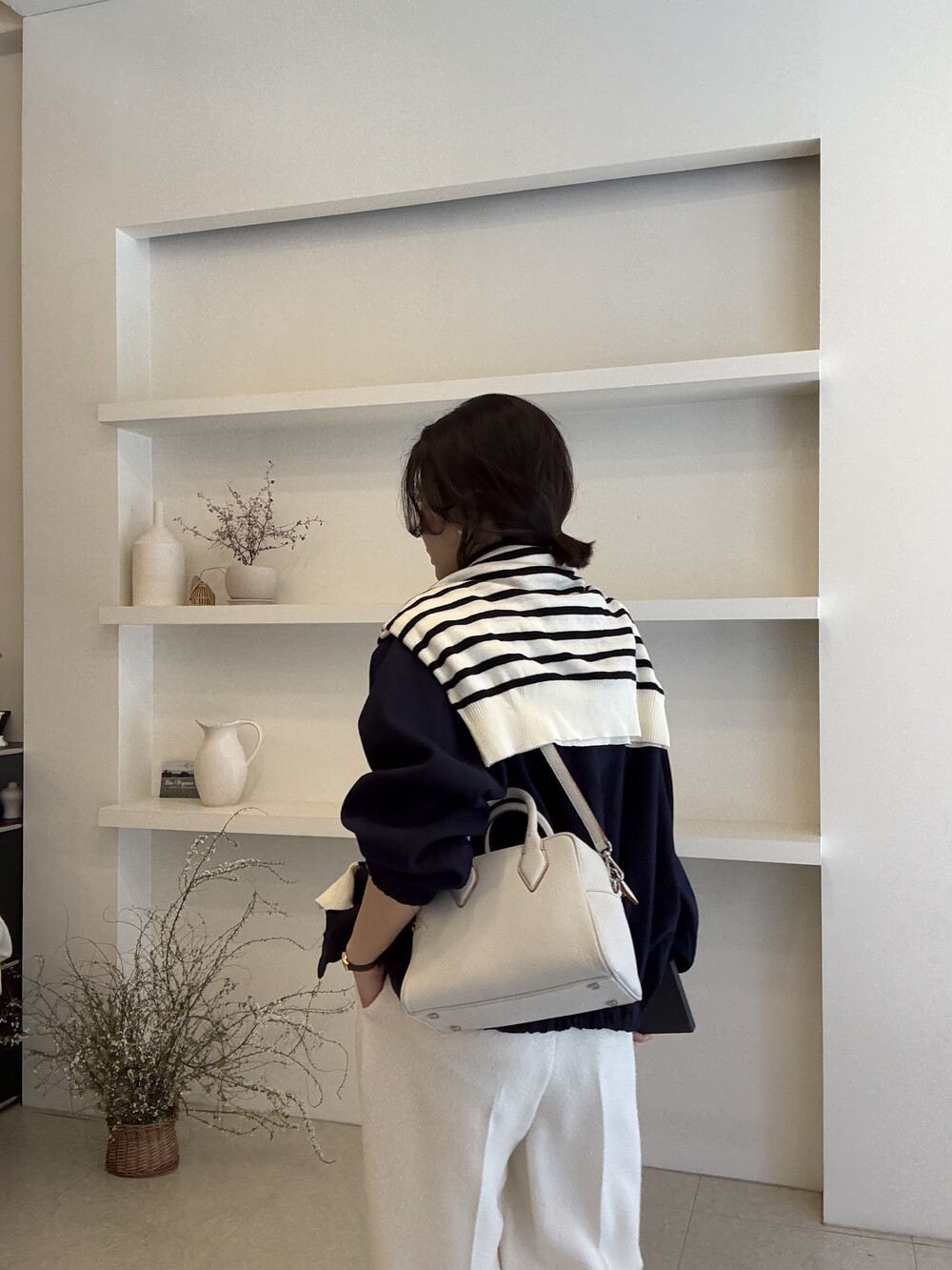 그런데 이번 26ss에서는 수입소재를 모티브로한 국내 개발 소재도 이따금씩 소개될 예정에 있어요. 이 또한 틈틈이 보내주시는 고객분들의 의견들로 만들어진 프로젝트라서 같은 마음으로 기다려 주셨던 분들은 즐겁게 즐겨주세요. 이번 크림컬러로 선보이는 소재는 독특한 외관을 가지고 있는 이태리 Casentino 소재를 모티브로 국내에서 개발된 소재입니다. 부클처럼 은은한 느낌이 어떻게 보면 보풀처럼 보이기도 하죠. 그 외관이 시그니처인 소재를 아시는 분들께는 더 반갑게 느껴지실거에요.