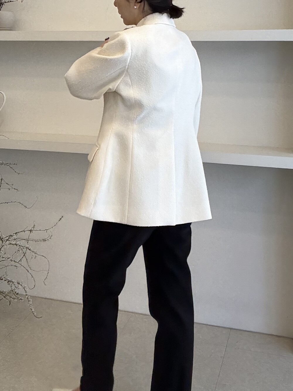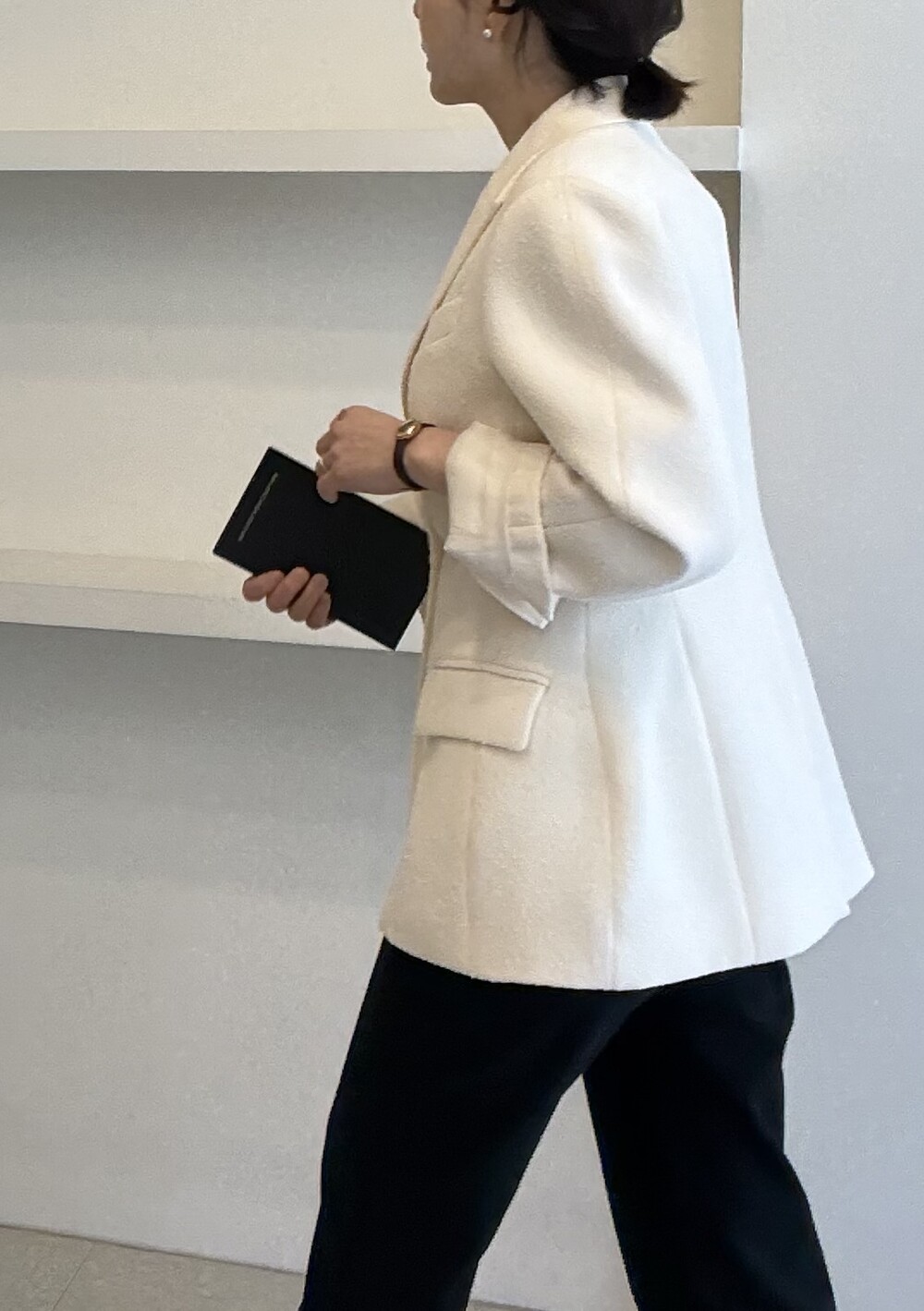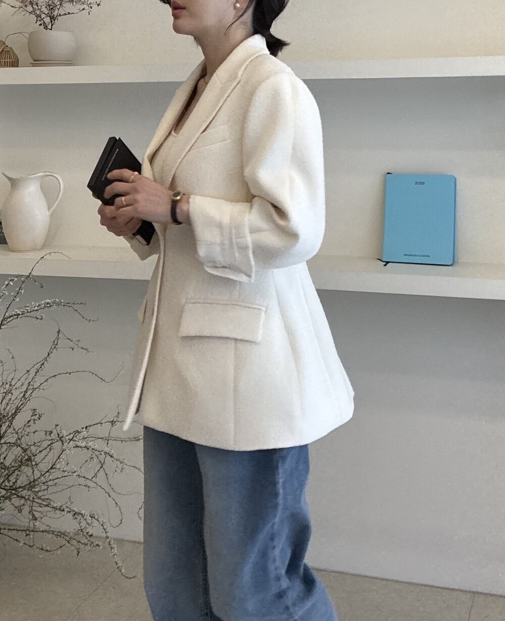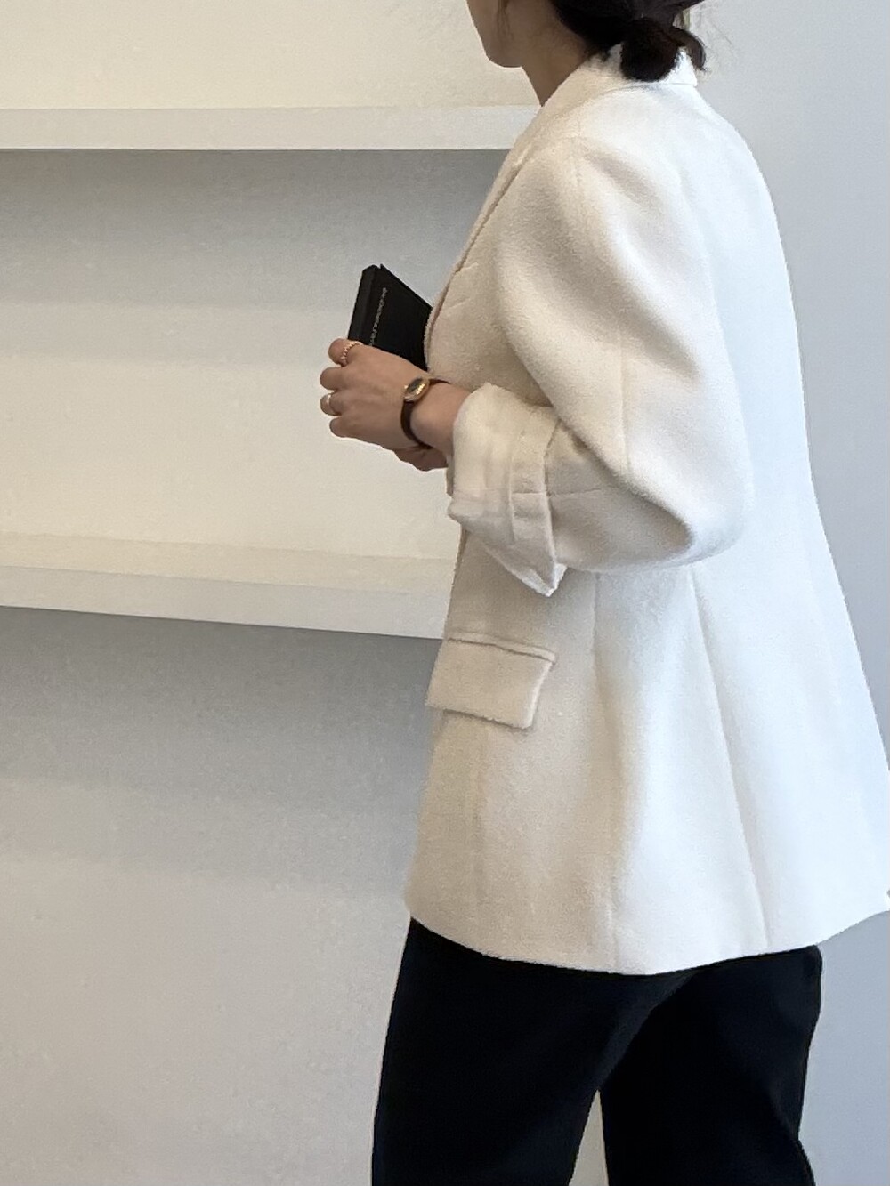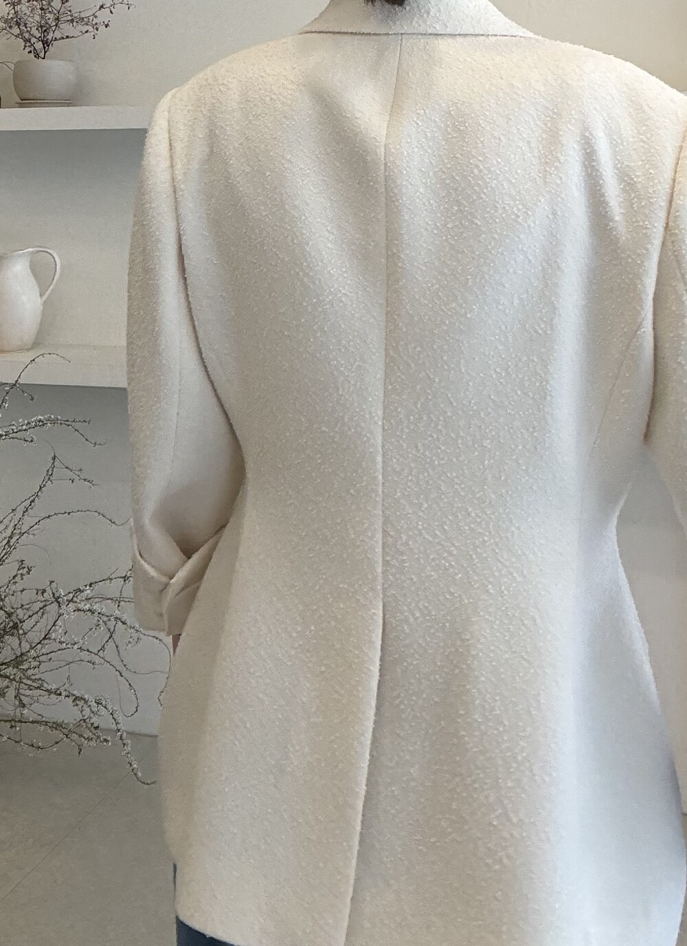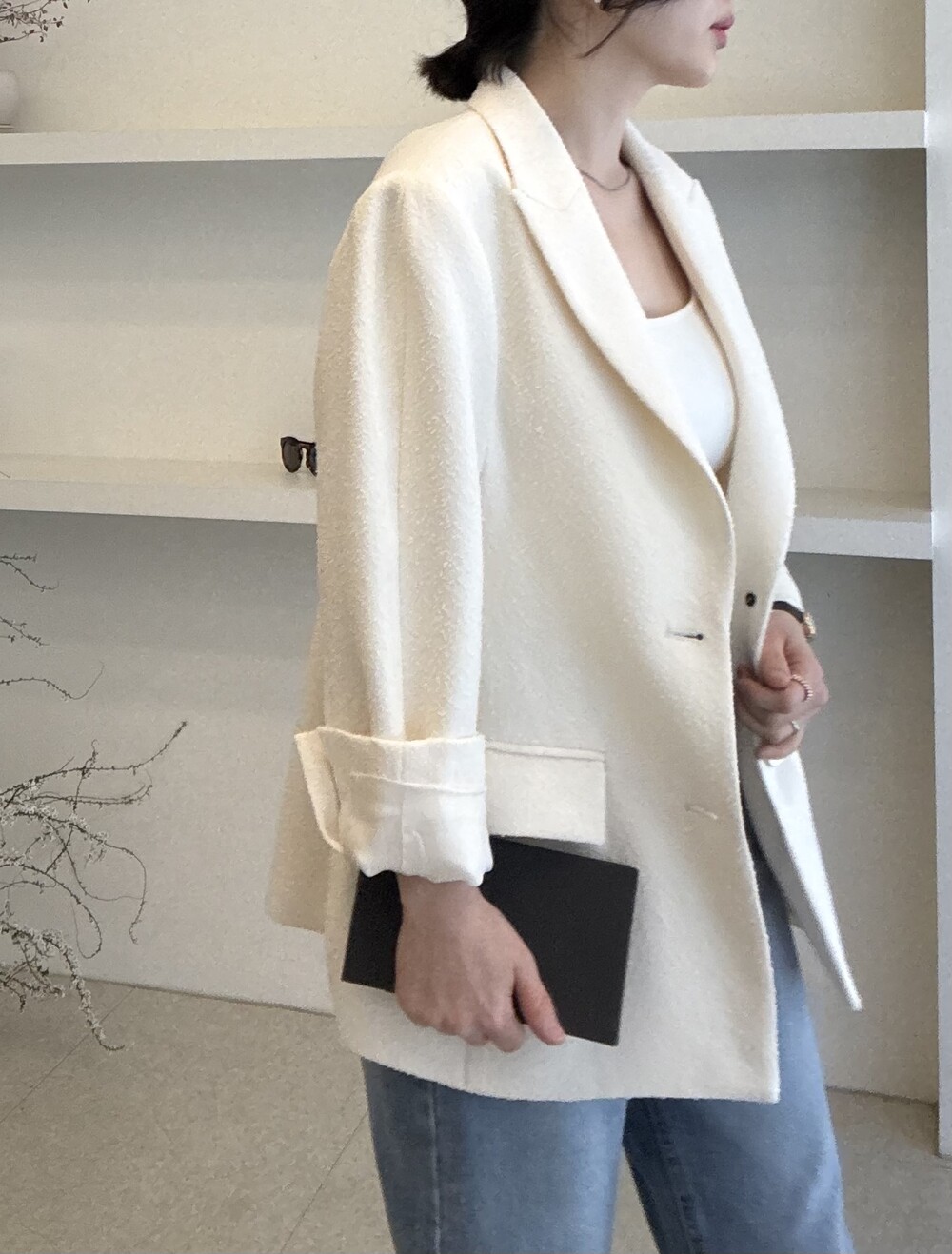 그런데 이번 26ss에서는 수입소재를 모티브로한 국내 개발 소재도 이따금씩 소개될 예정에 있어요. 이 또한 틈틈이 보내주시는 고객분들의 의견들로 만들어진 프로젝트라서 같은 마음으로 기다려 주셨던 분들은 즐겁게 즐겨주세요. 이번 크림컬러로 선보이는 소재는 독특한 외관을 가지고 있는 이태리 Casentino 소재를 모티브로 국내에서 개발된 소재입니다. 부클처럼 은은한 느낌이 어떻게 보면 보풀처럼 보이기도 하죠. 그 외관이 시그니처인 소재를 아시는 분들께는 더 반갑게 느껴지실거에요.