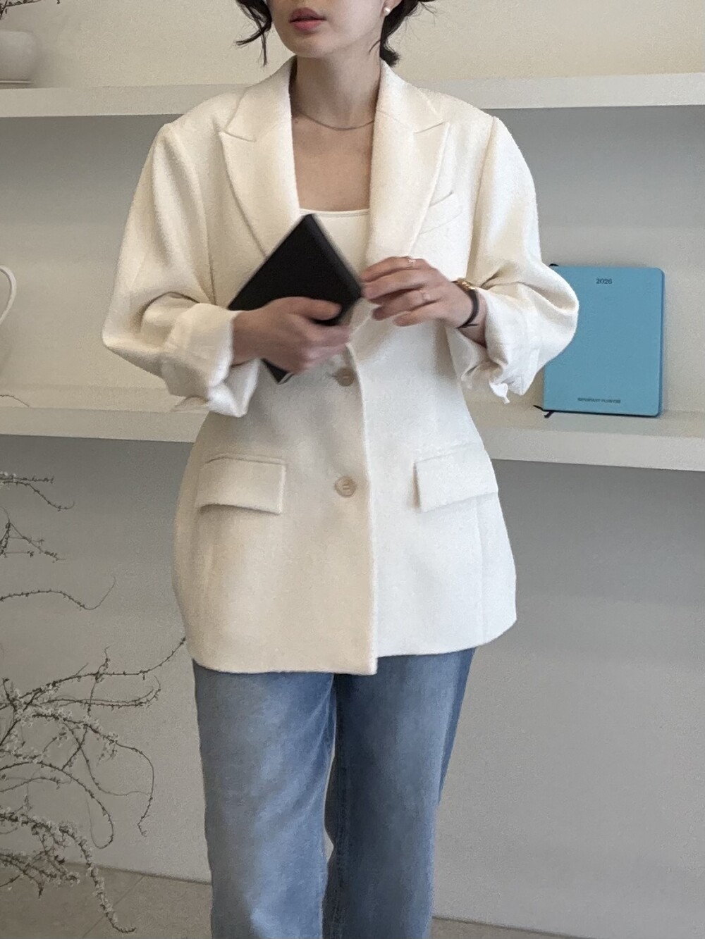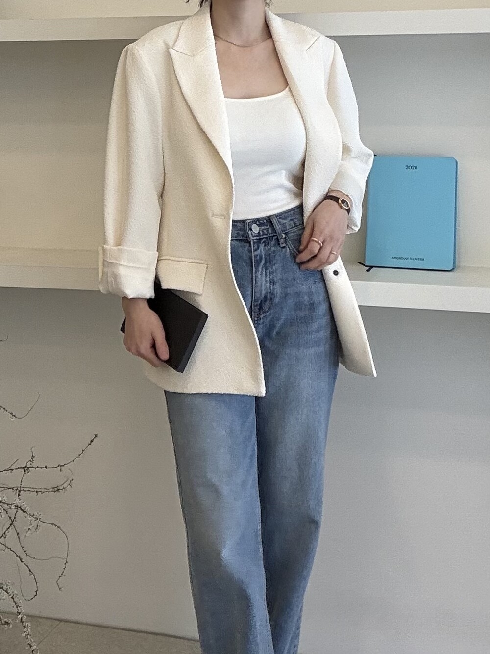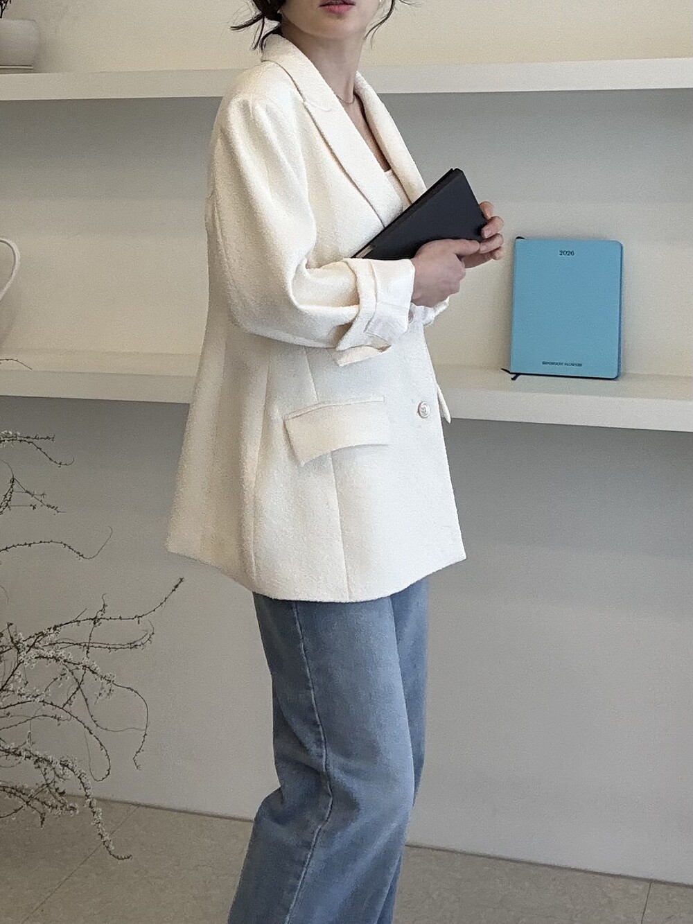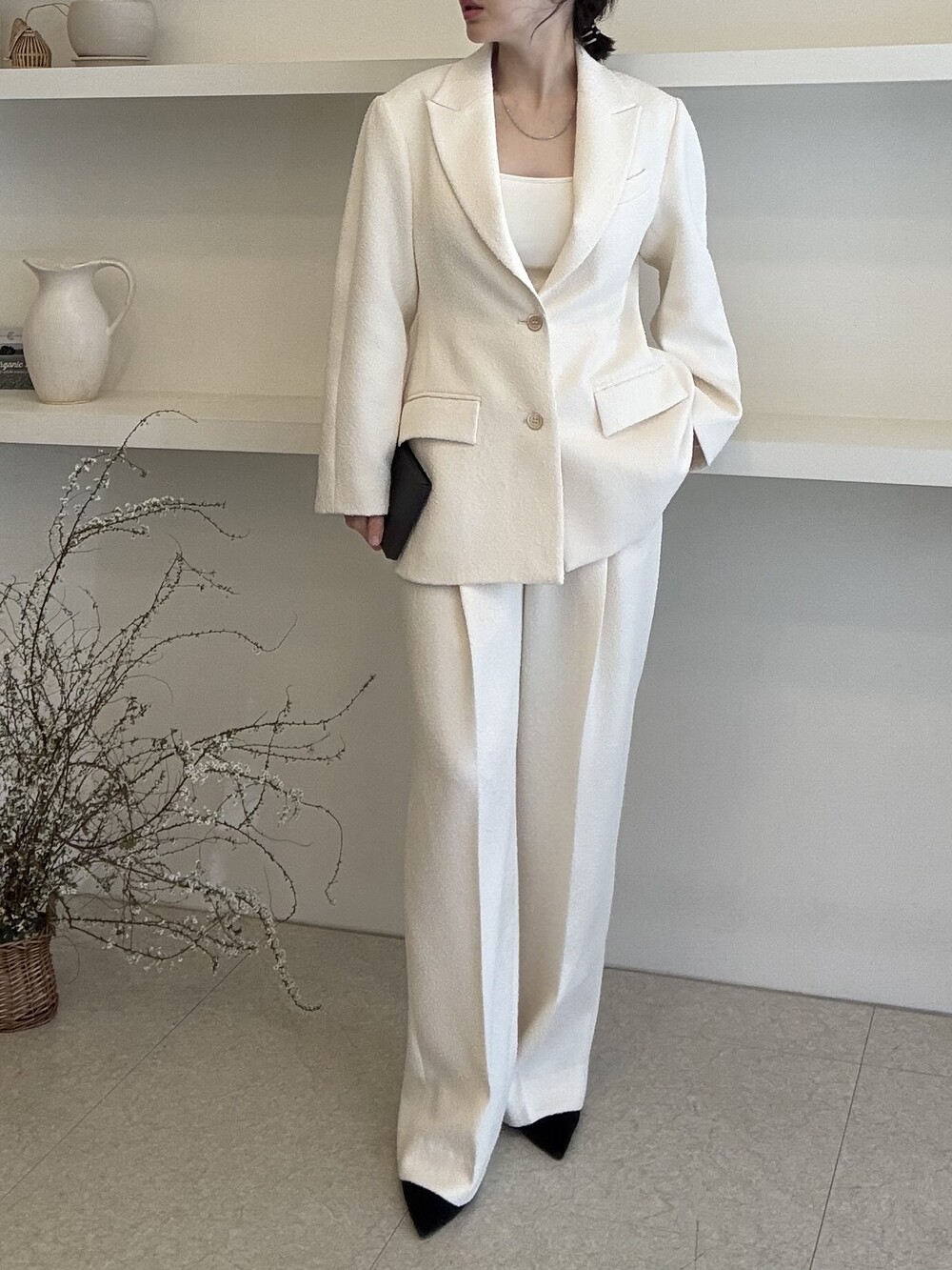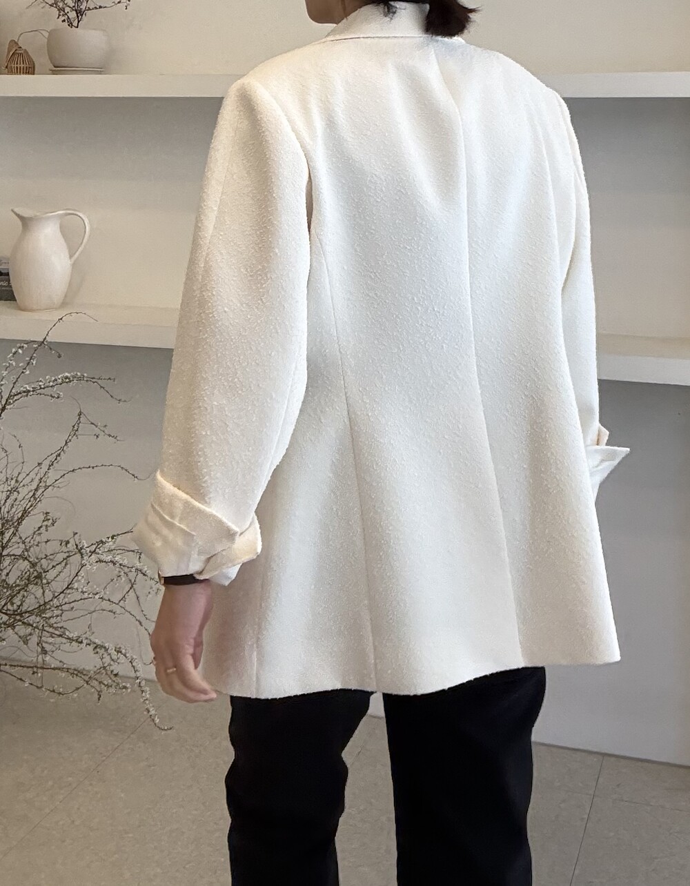 그런데 이번 26ss에서는 수입소재를 모티브로한 국내 개발 소재도 이따금씩 소개될 예정에 있어요. 이 또한 틈틈이 보내주시는 고객분들의 의견들로 만들어진 프로젝트라서 같은 마음으로 기다려 주셨던 분들은 즐겁게 즐겨주세요. 이번 크림컬러로 선보이는 소재는 독특한 외관을 가지고 있는 이태리 Casentino 소재를 모티브로 국내에서 개발된 소재입니다. 부클처럼 은은한 느낌이 어떻게 보면 보풀처럼 보이기도 하죠. 그 외관이 시그니처인 소재를 아시는 분들께는 더 반갑게 느껴지실거에요.