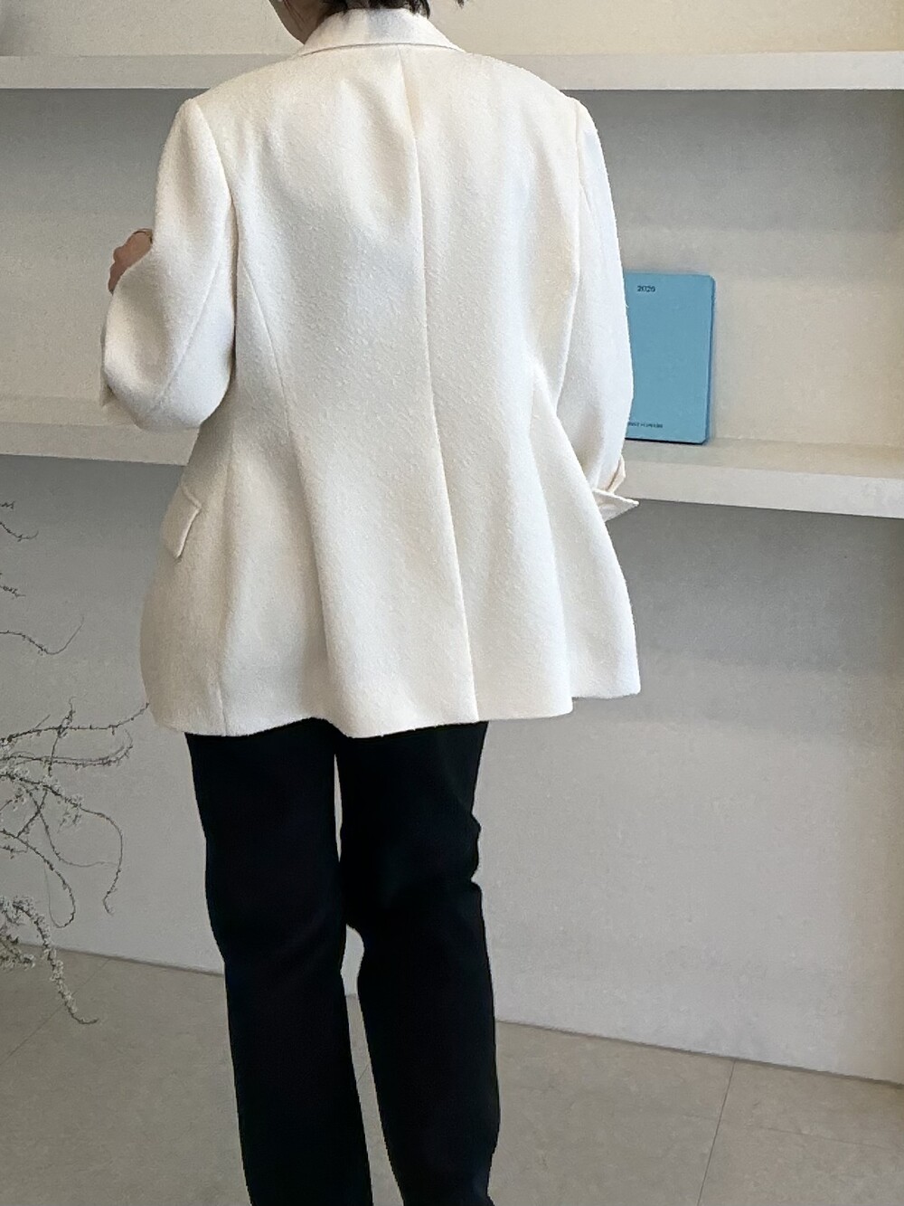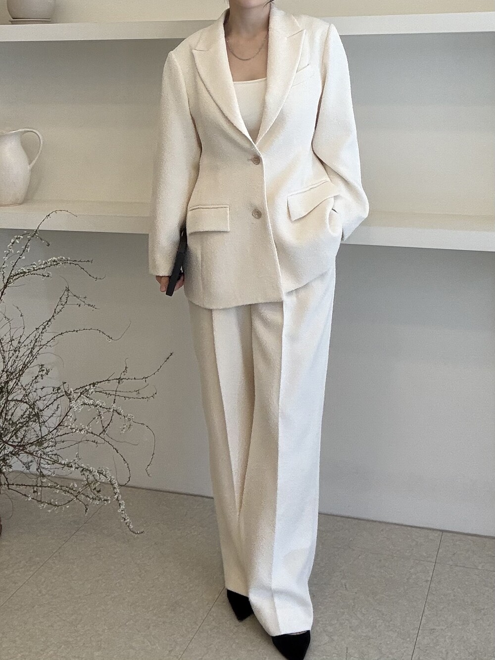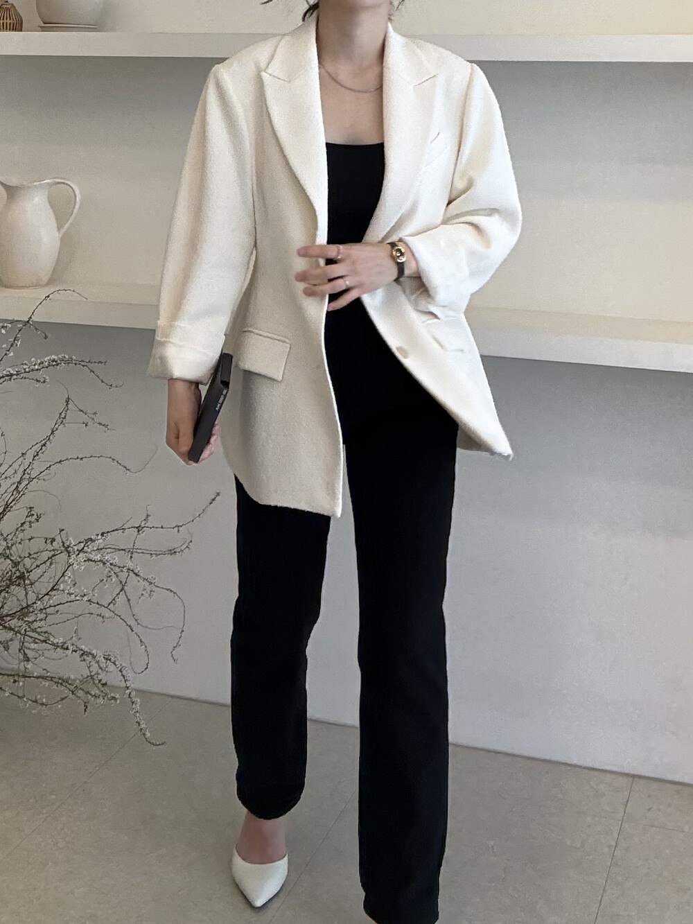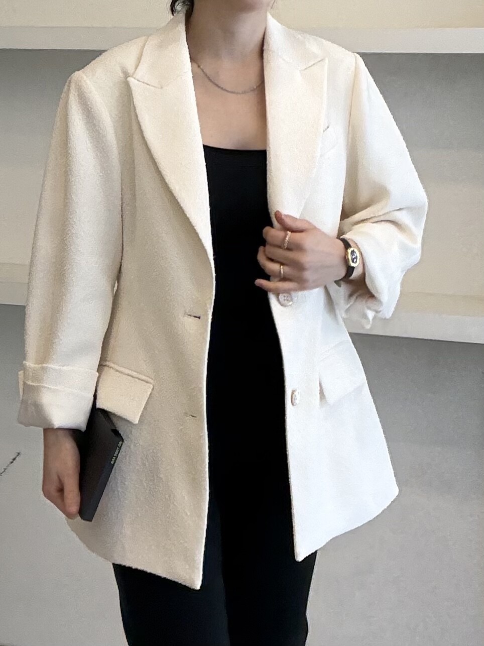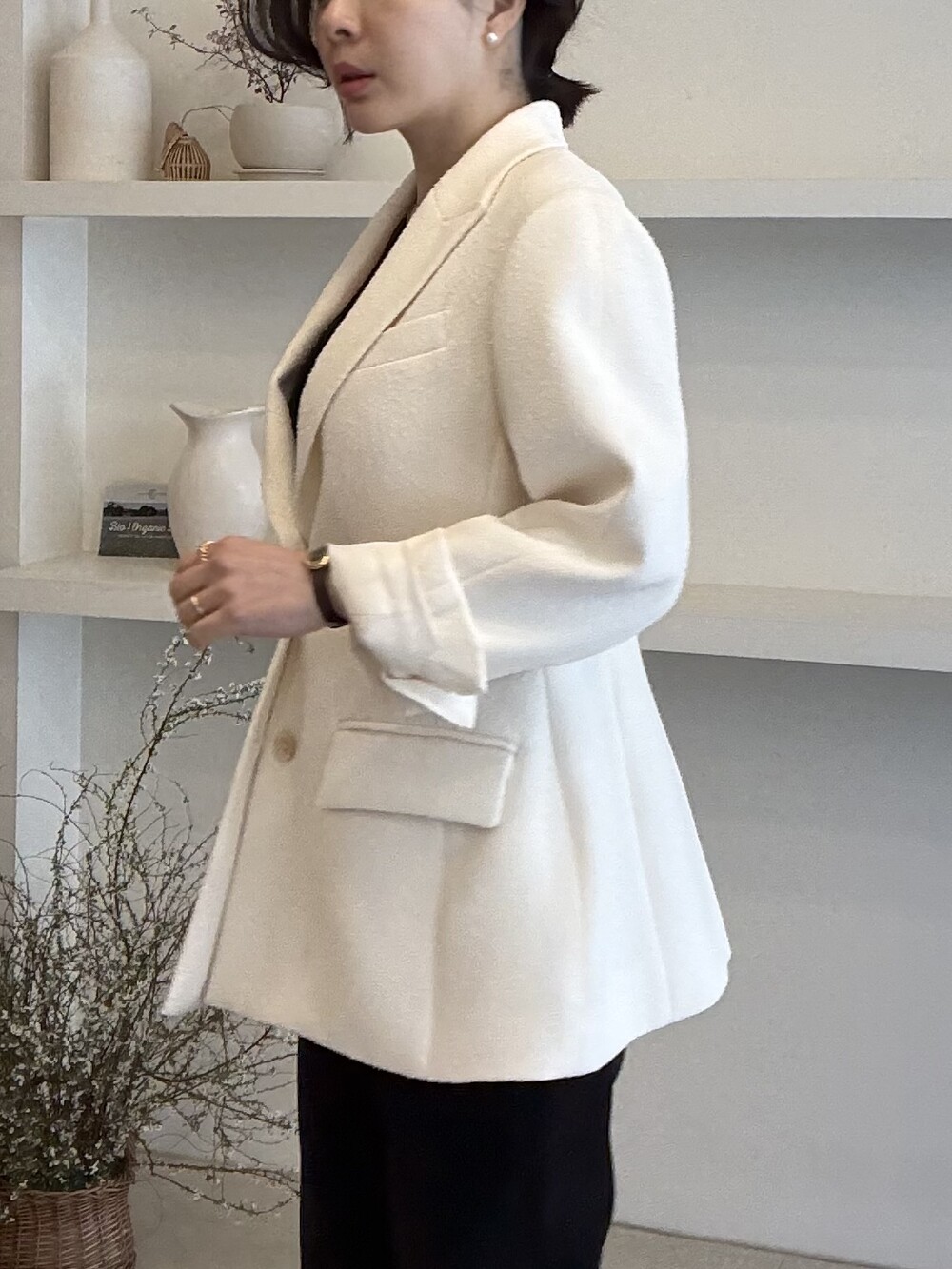 그런데 이번 26ss에서는 수입소재를 모티브로한 국내 개발 소재도 이따금씩 소개될 예정에 있어요. 이 또한 틈틈이 보내주시는 고객분들의 의견들로 만들어진 프로젝트라서 같은 마음으로 기다려 주셨던 분들은 즐겁게 즐겨주세요. 이번 크림컬러로 선보이는 소재는 독특한 외관을 가지고 있는 이태리 Casentino 소재를 모티브로 국내에서 개발된 소재입니다. 부클처럼 은은한 느낌이 어떻게 보면 보풀처럼 보이기도 하죠. 그 외관이 시그니처인 소재를 아시는 분들께는 더 반갑게 느껴지실거에요.