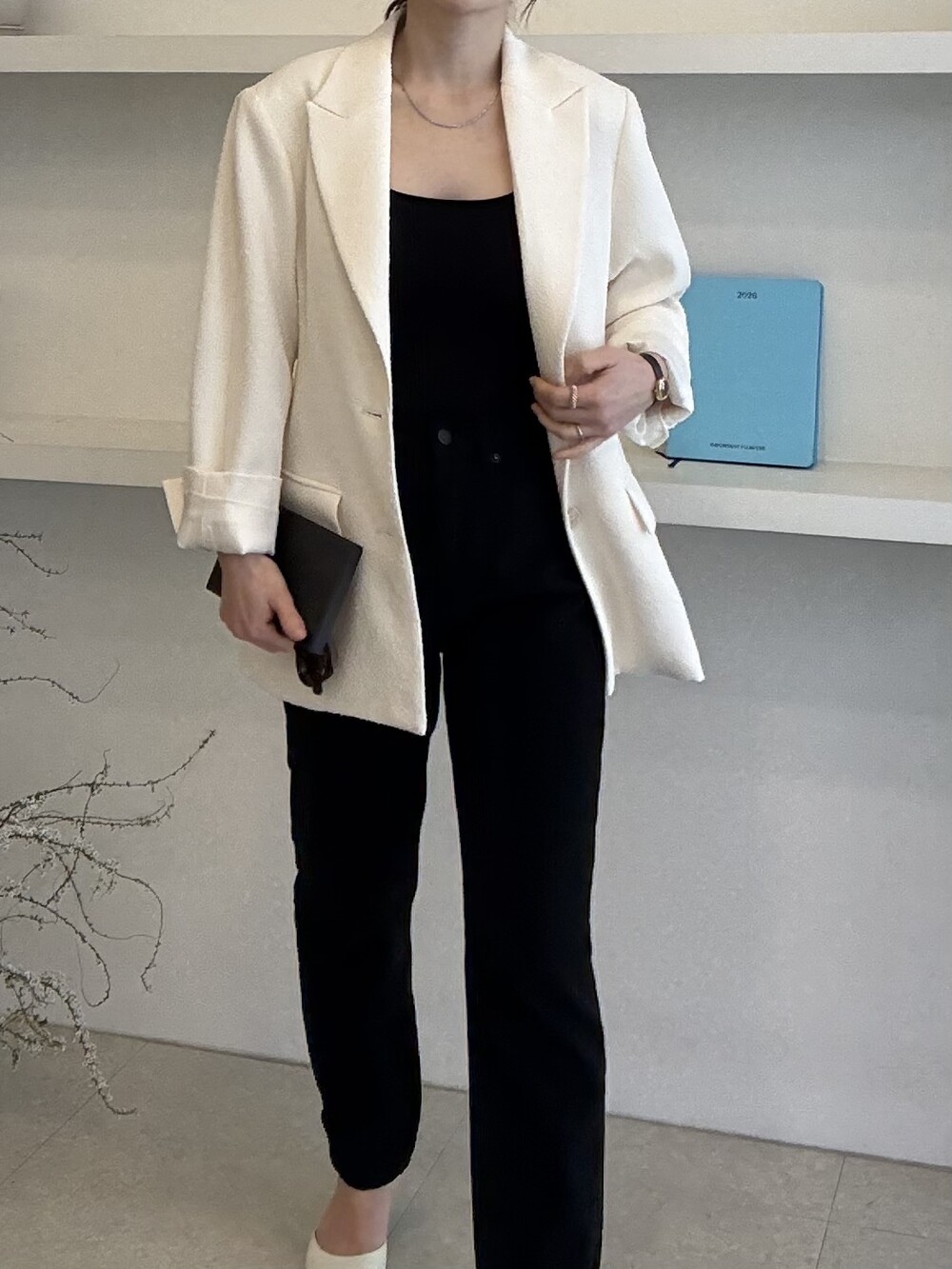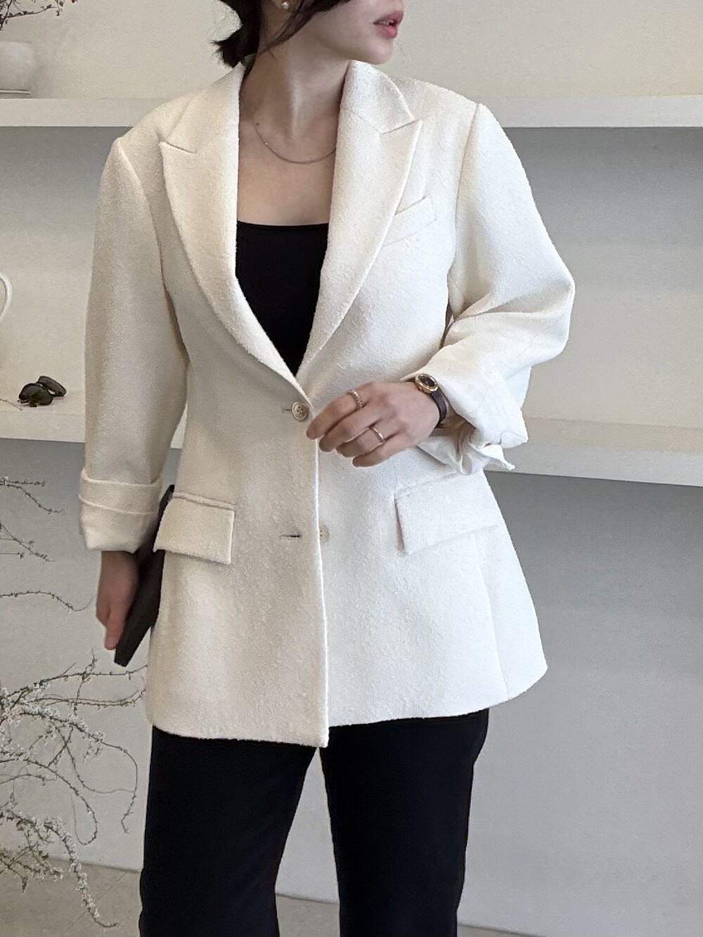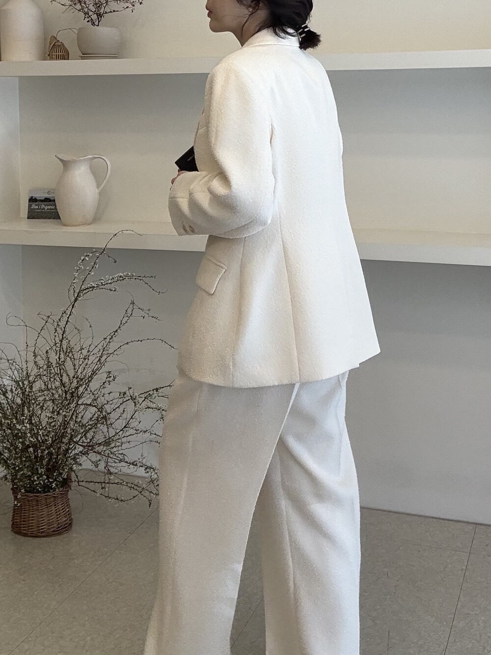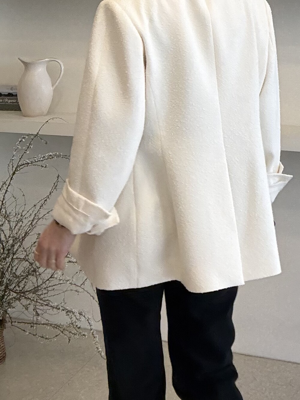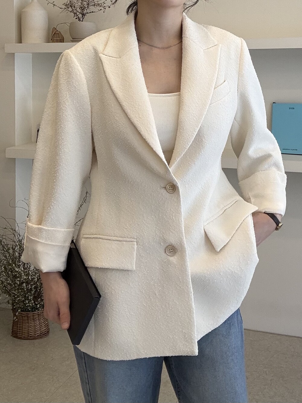 그런데 이번 26ss에서는 수입소재를 모티브로한 국내 개발 소재도 이따금씩 소개될 예정에 있어요. 이 또한 틈틈이 보내주시는 고객분들의 의견들로 만들어진 프로젝트라서 같은 마음으로 기다려 주셨던 분들은 즐겁게 즐겨주세요. 이번 크림컬러로 선보이는 소재는 독특한 외관을 가지고 있는 이태리 Casentino 소재를 모티브로 국내에서 개발된 소재입니다. 부클처럼 은은한 느낌이 어떻게 보면 보풀처럼 보이기도 하죠. 그 외관이 시그니처인 소재를 아시는 분들께는 더 반갑게 느껴지실거에요.