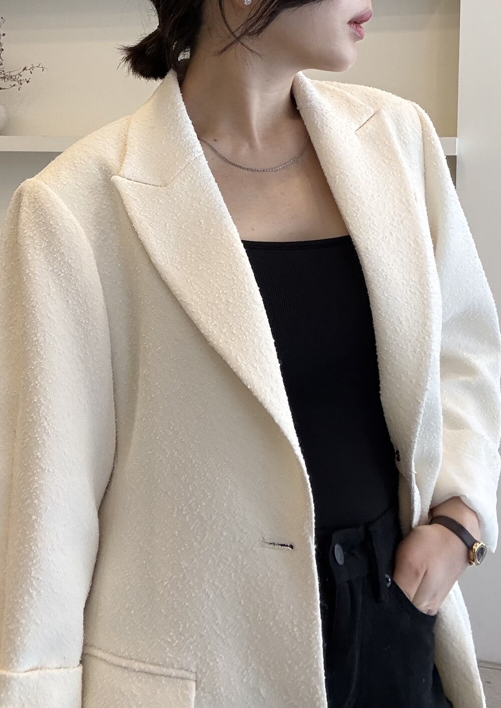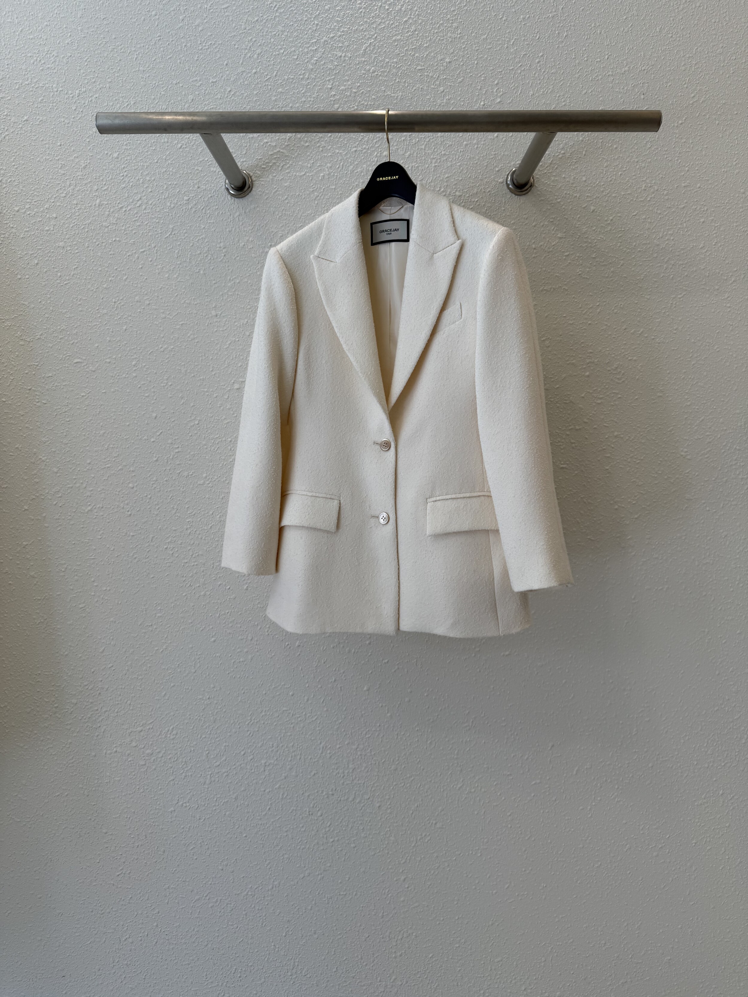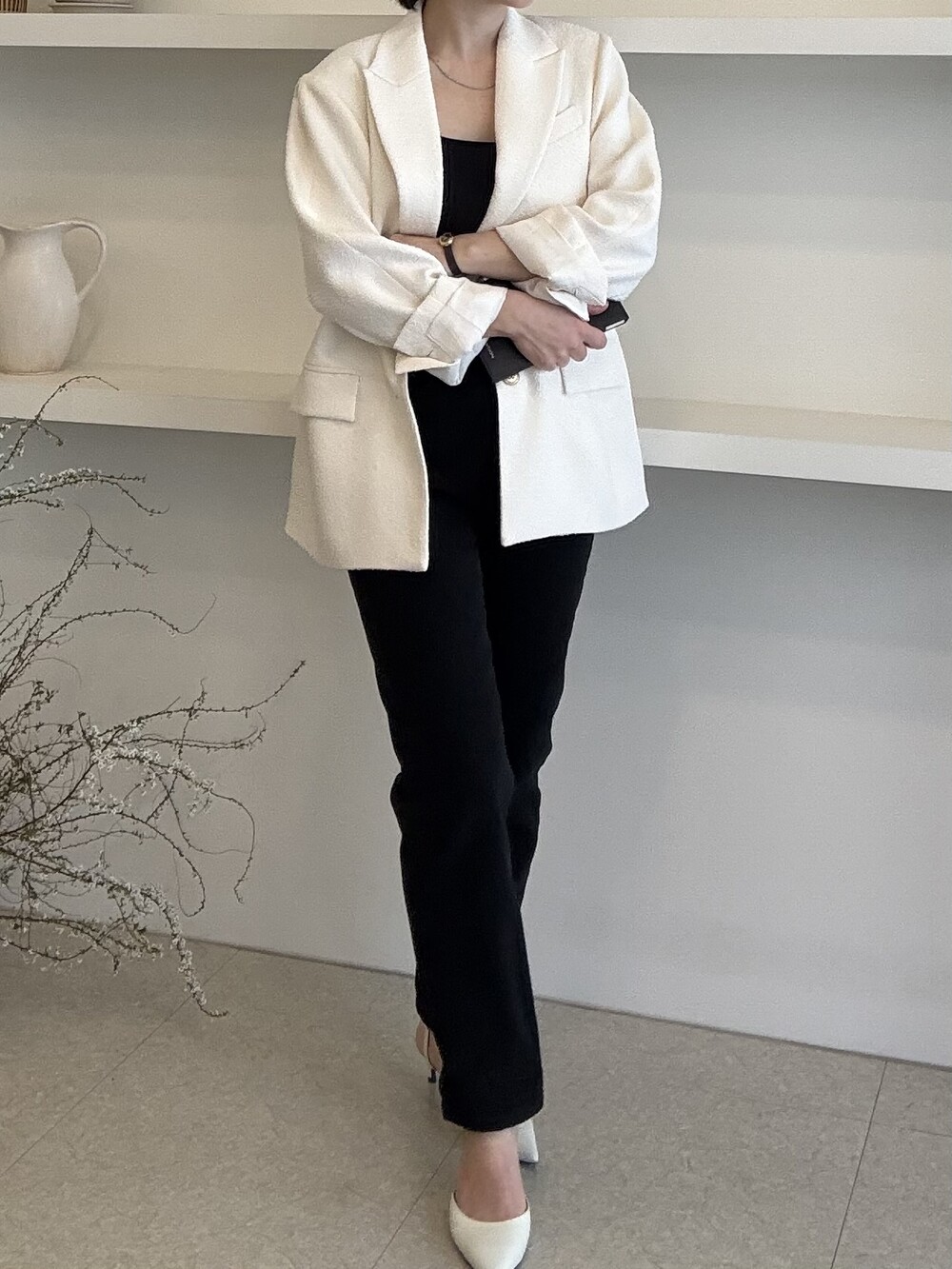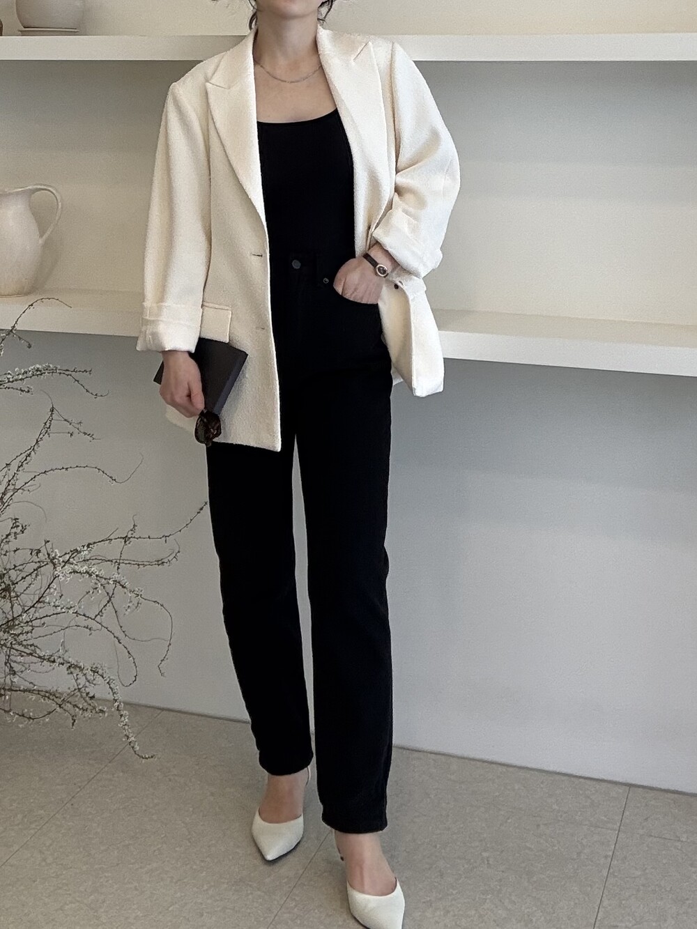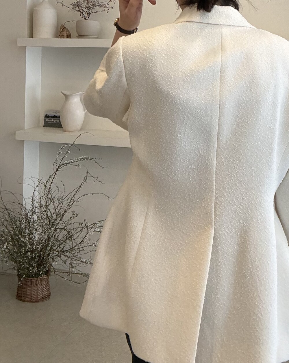 그런데 이번 26ss에서는 수입소재를 모티브로한 국내 개발 소재도 이따금씩 소개될 예정에 있어요. 이 또한 틈틈이 보내주시는 고객분들의 의견들로 만들어진 프로젝트라서 같은 마음으로 기다려 주셨던 분들은 즐겁게 즐겨주세요. 이번 크림컬러로 선보이는 소재는 독특한 외관을 가지고 있는 이태리 Casentino 소재를 모티브로 국내에서 개발된 소재입니다. 부클처럼 은은한 느낌이 어떻게 보면 보풀처럼 보이기도 하죠. 그 외관이 시그니처인 소재를 아시는 분들께는 더 반갑게 느껴지실거에요.